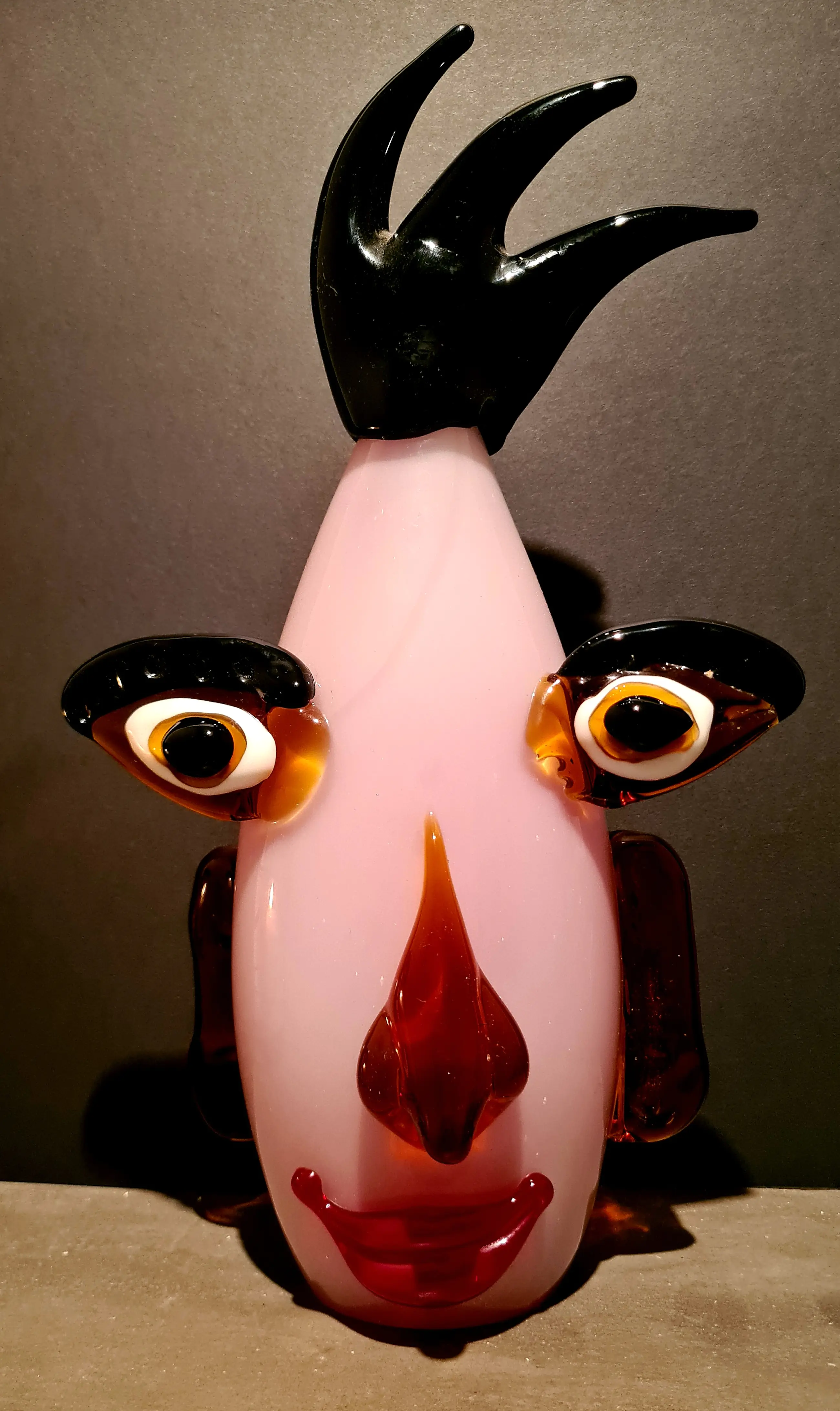 Vrolijk stuk moderne glaskunst, komt oorspronkelijk uit Italie waar het gekocht is in de jaren 90. In een goede staat, altijd netjes voor gezorgd. Geen idee wie de maker is.