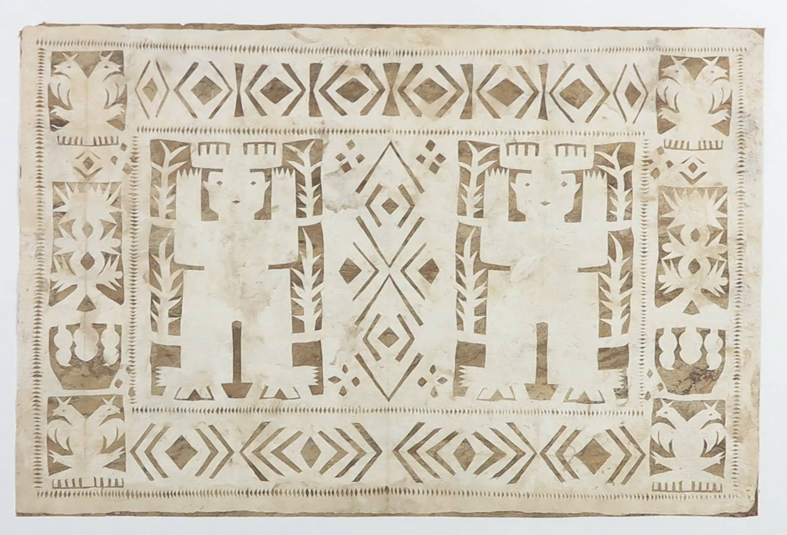Onbekend - Knipsel geplakt op boomschors (Soudan) - Ingelijst - Verkocht