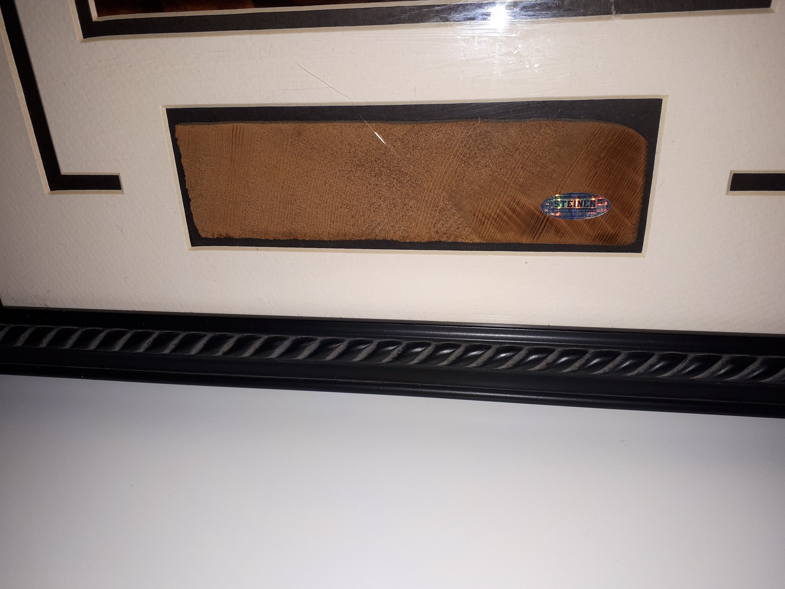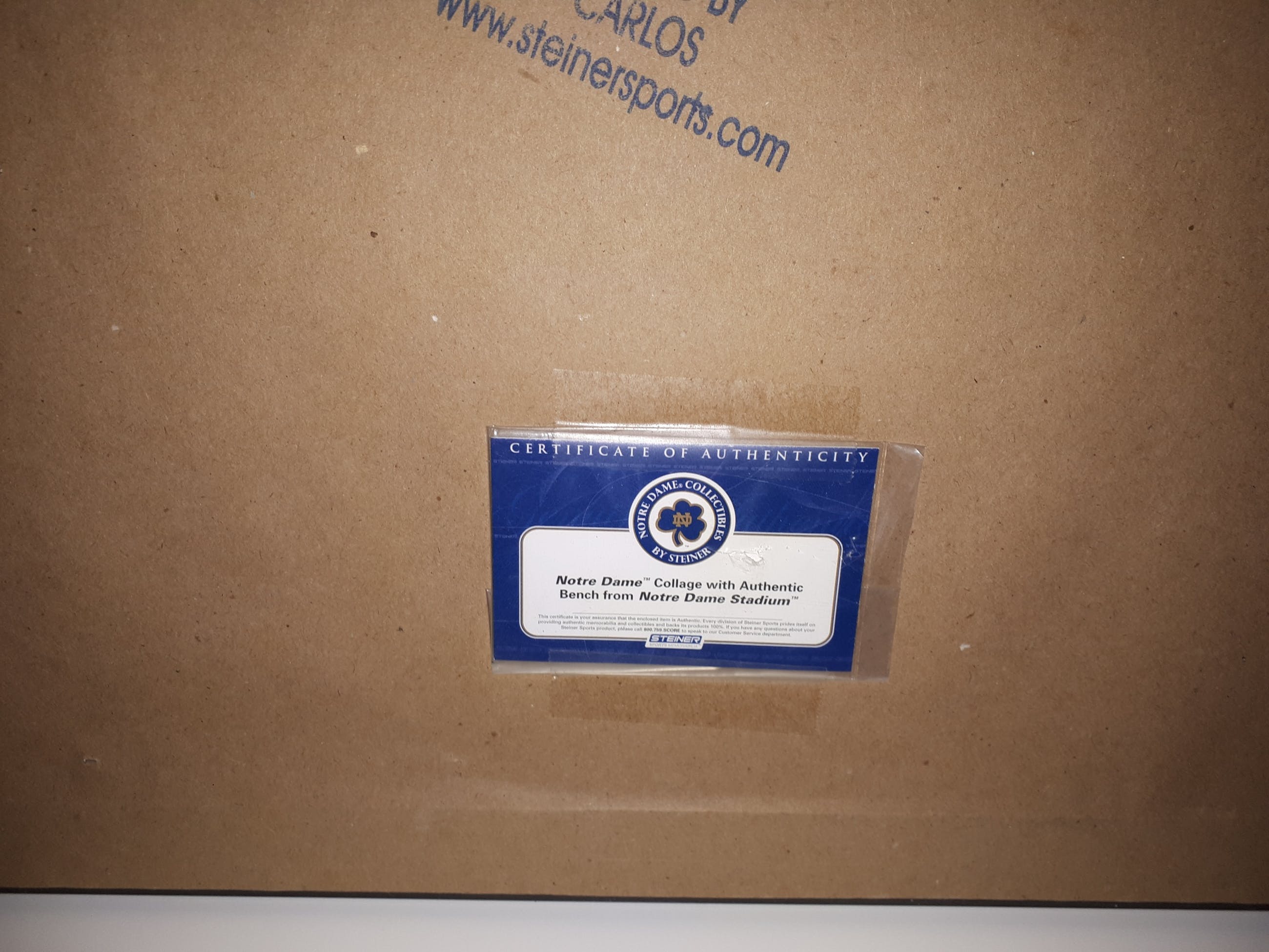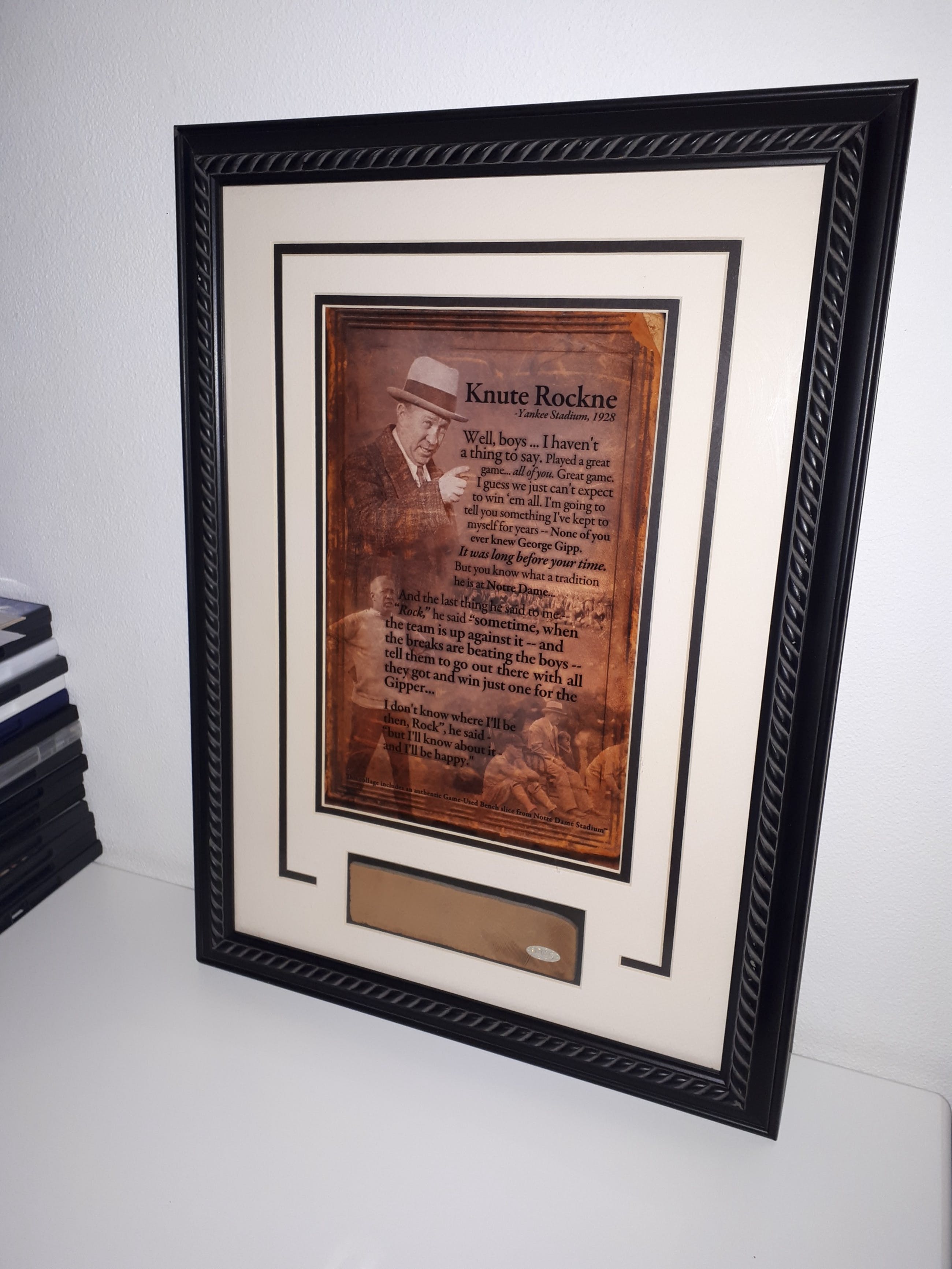 Houten fragment van het oude Yankee Stadium met foto van Knut Rockne