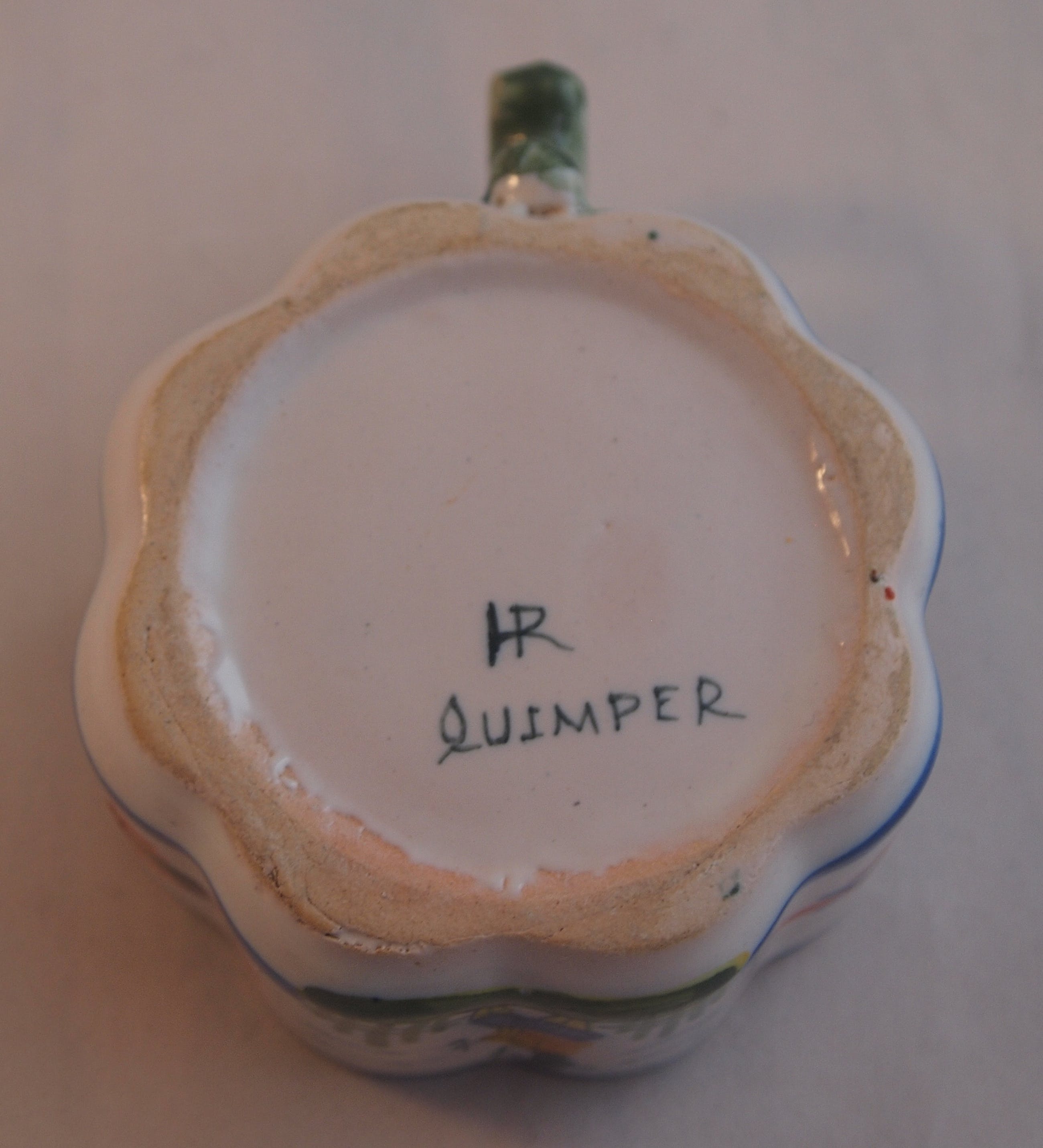 Kop en schotel Quimper en sierbord Atelier A. Baratta a Moustier. Beiden hand beschilderde stujes Franse Faience. In onbeschadigde conditie en beiden met de hand gemerkt.
