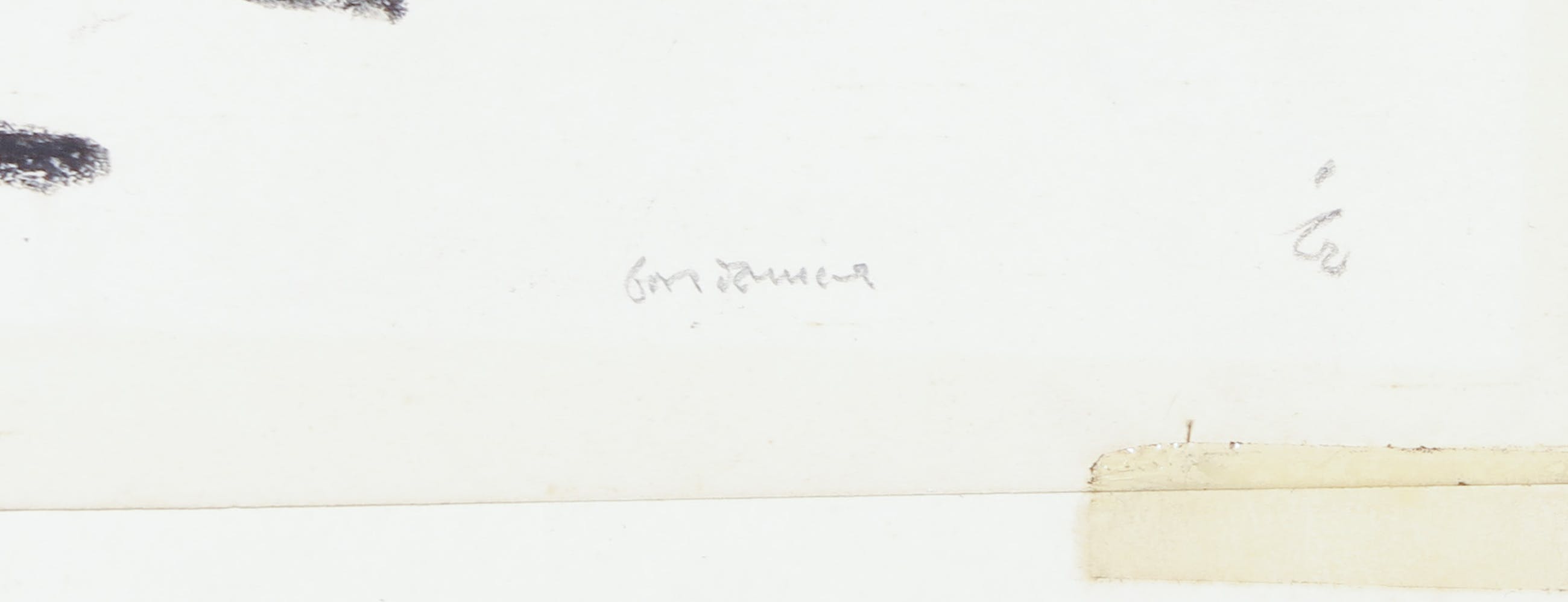 | De tekening bevat lichte oxidatievlekjes en verkleuring (met name zichtbaar langs rand. Passepartout is verkleurd en bevat vlekken. | |||||||||||