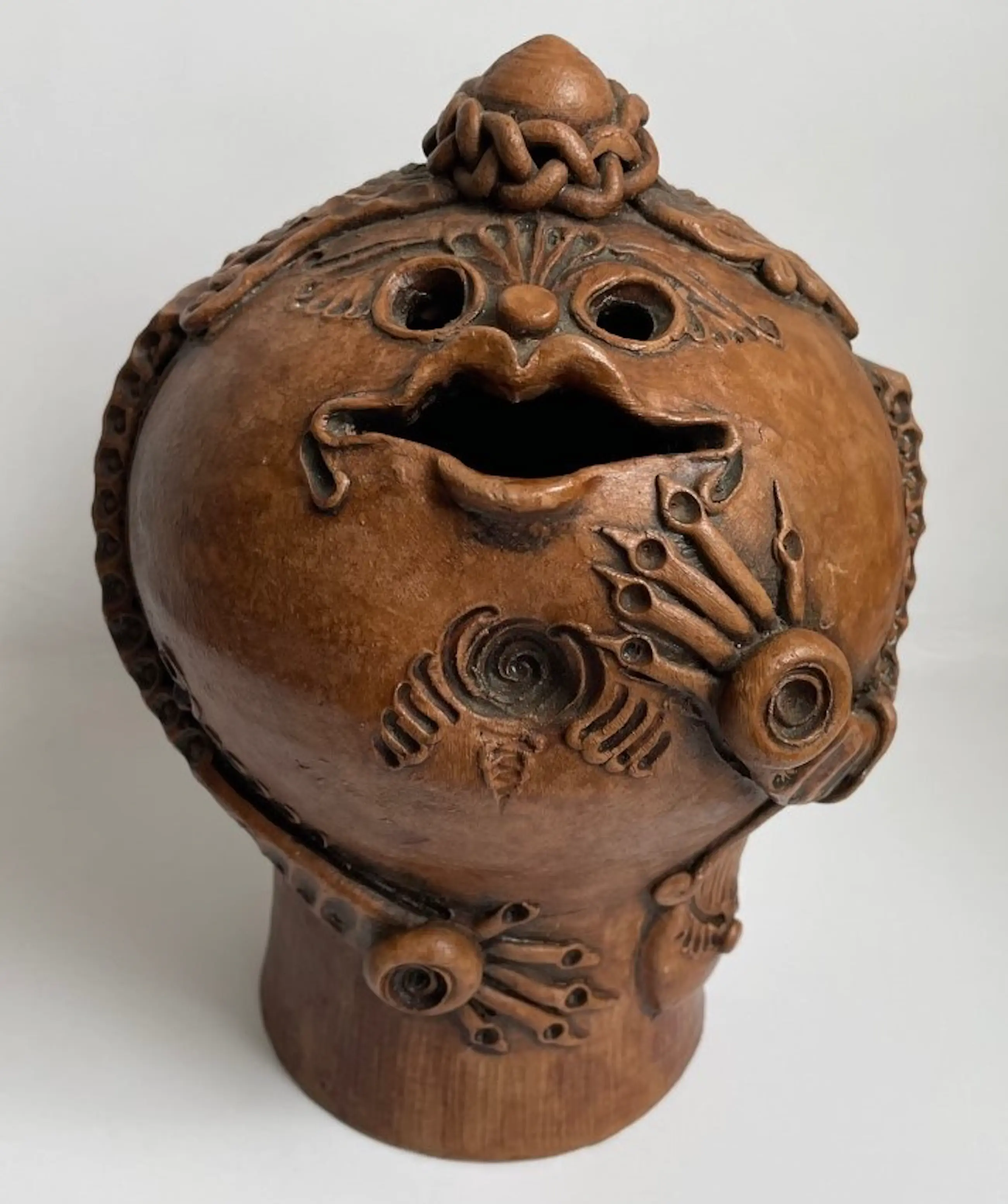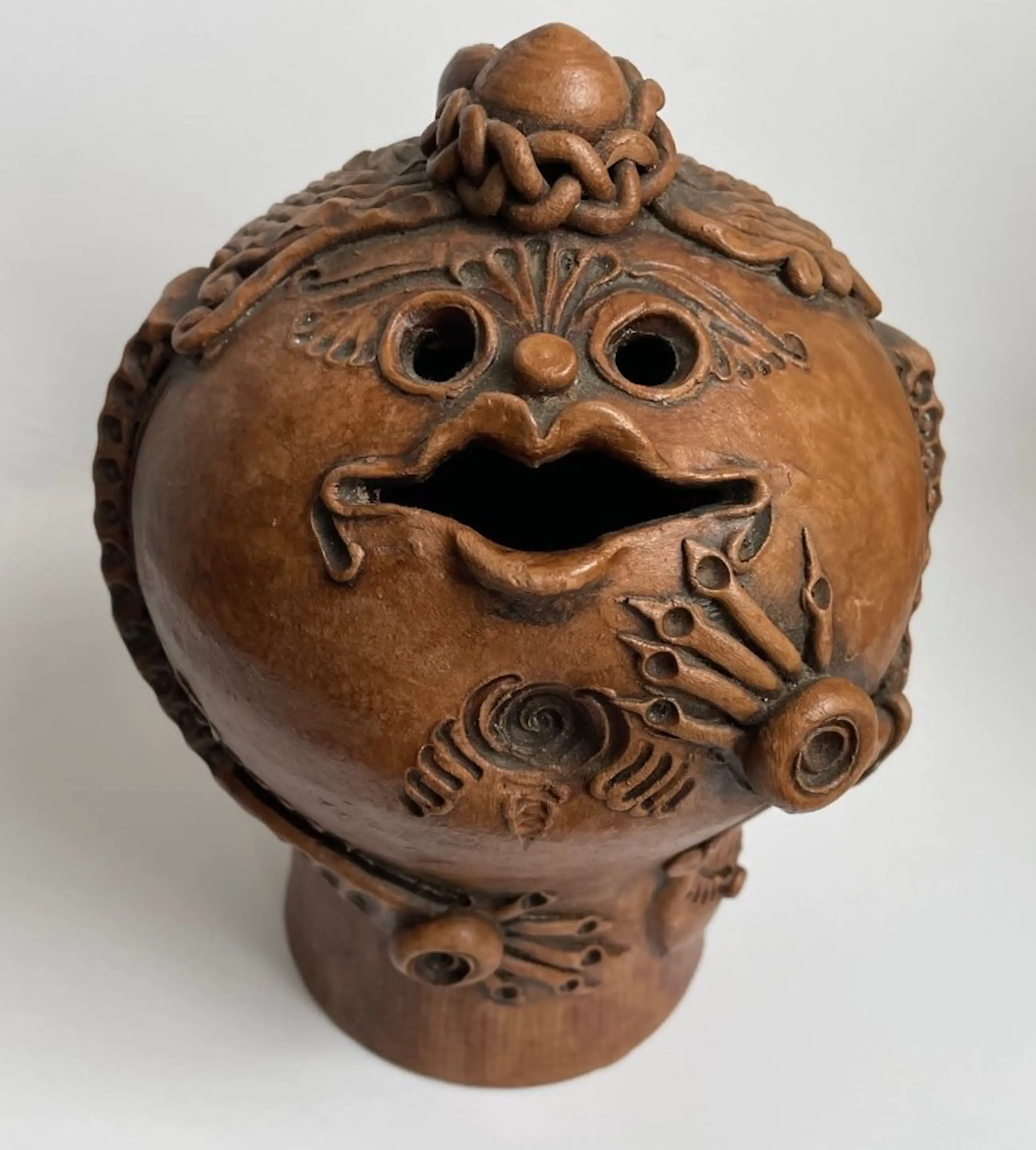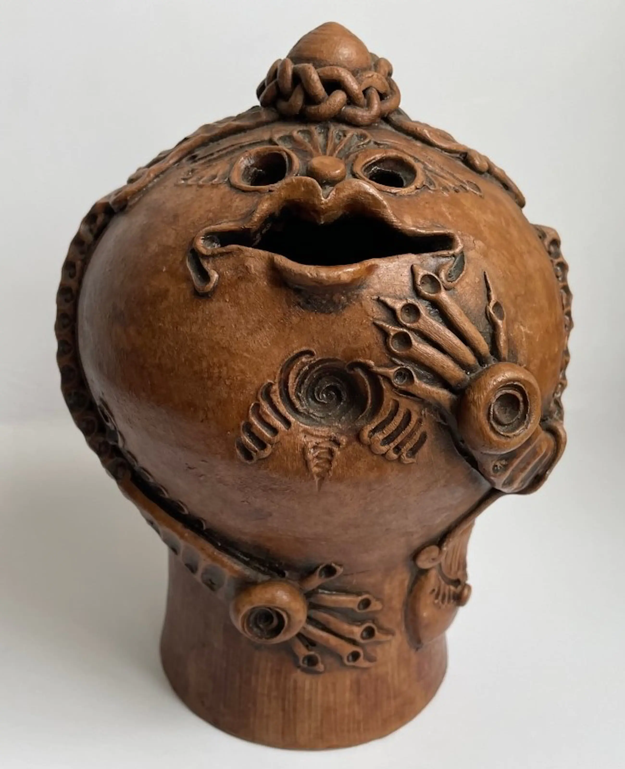 Kunst aardewerken fantasie figuur gemaakt in de jaren'60-'70 in Roemenie door Arta Harghitei. Voorzien van papieren label aan de onderzijde. Op de lip zit een klein chipje verder onbeschadigd.