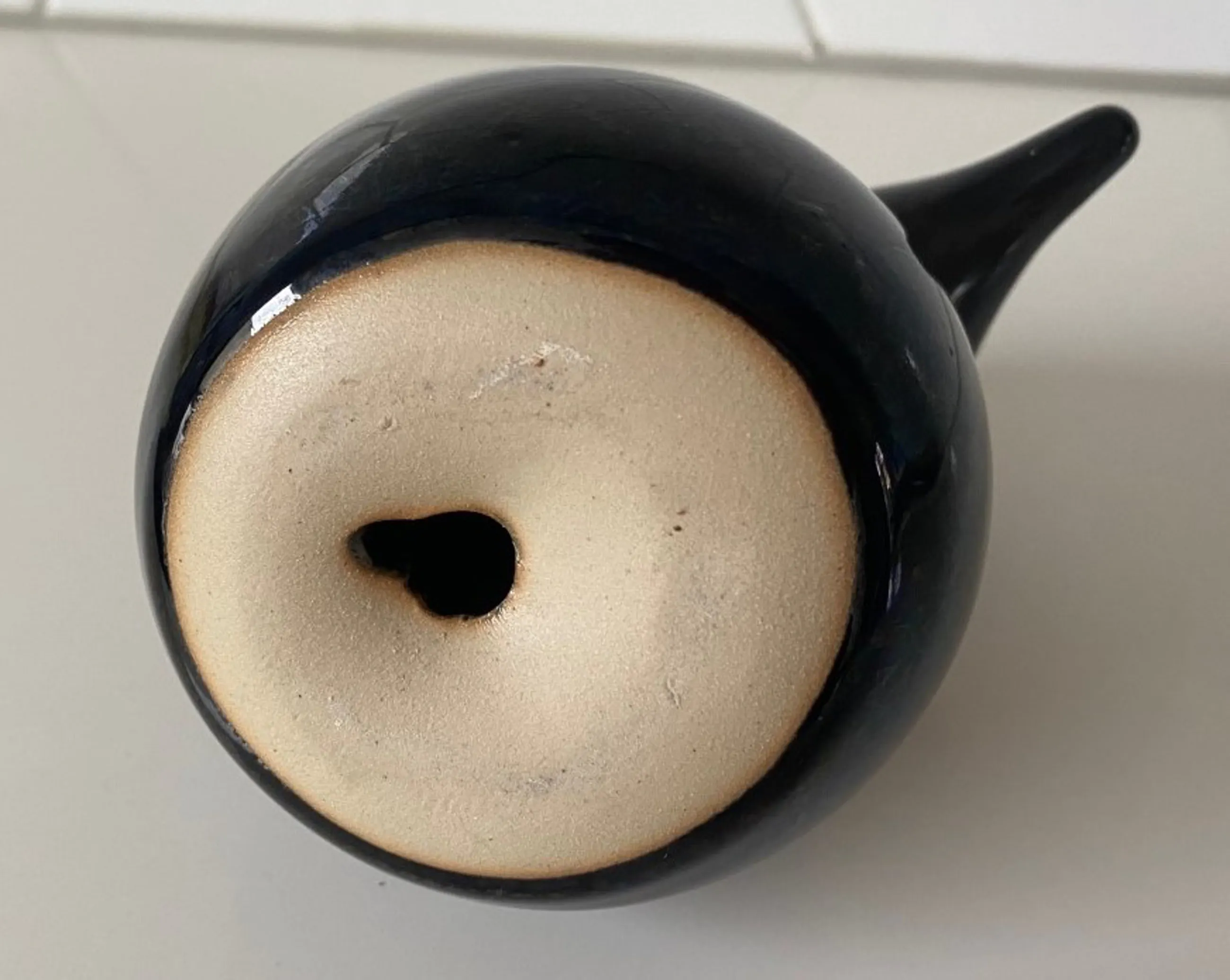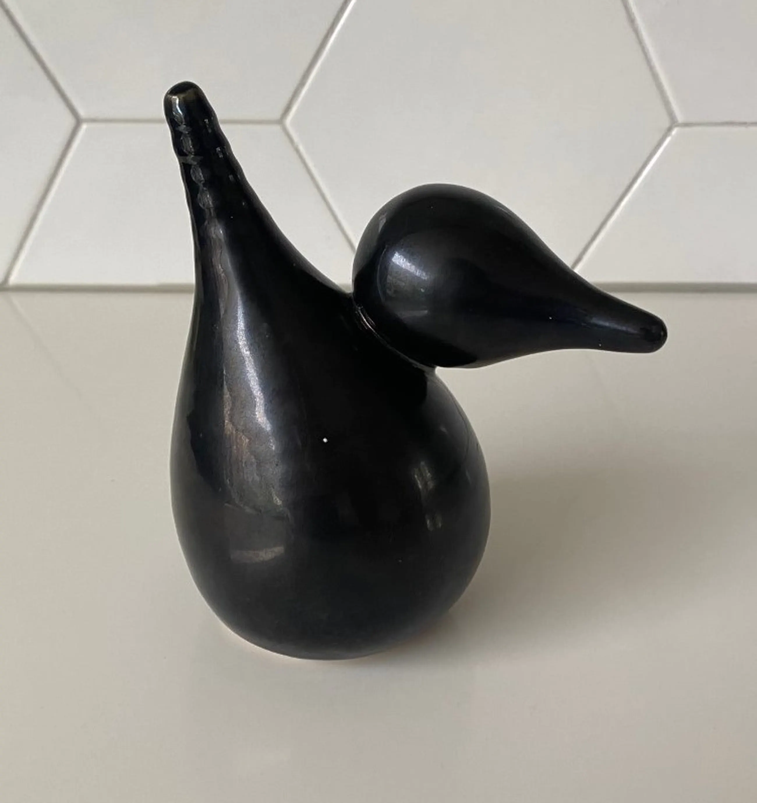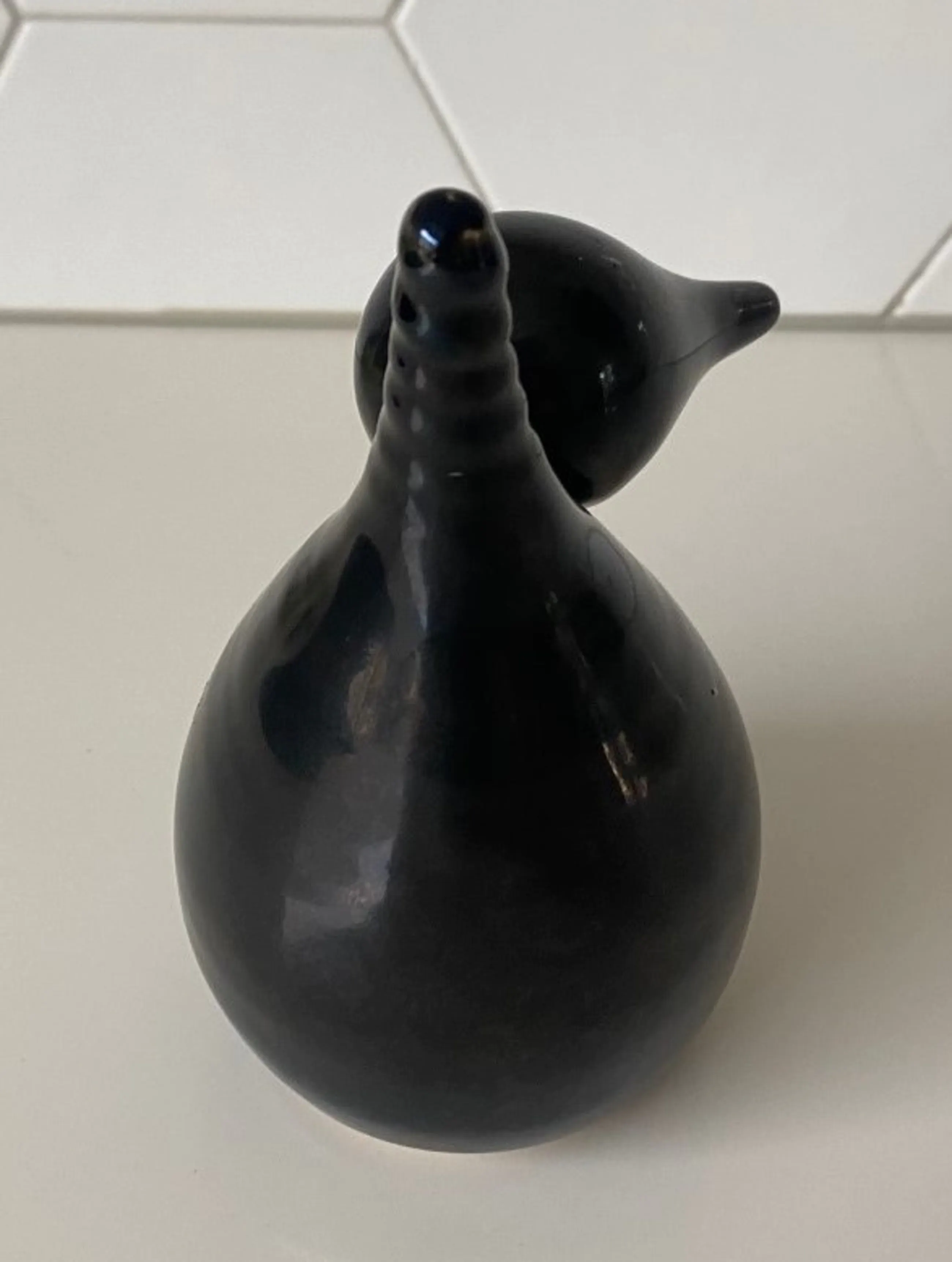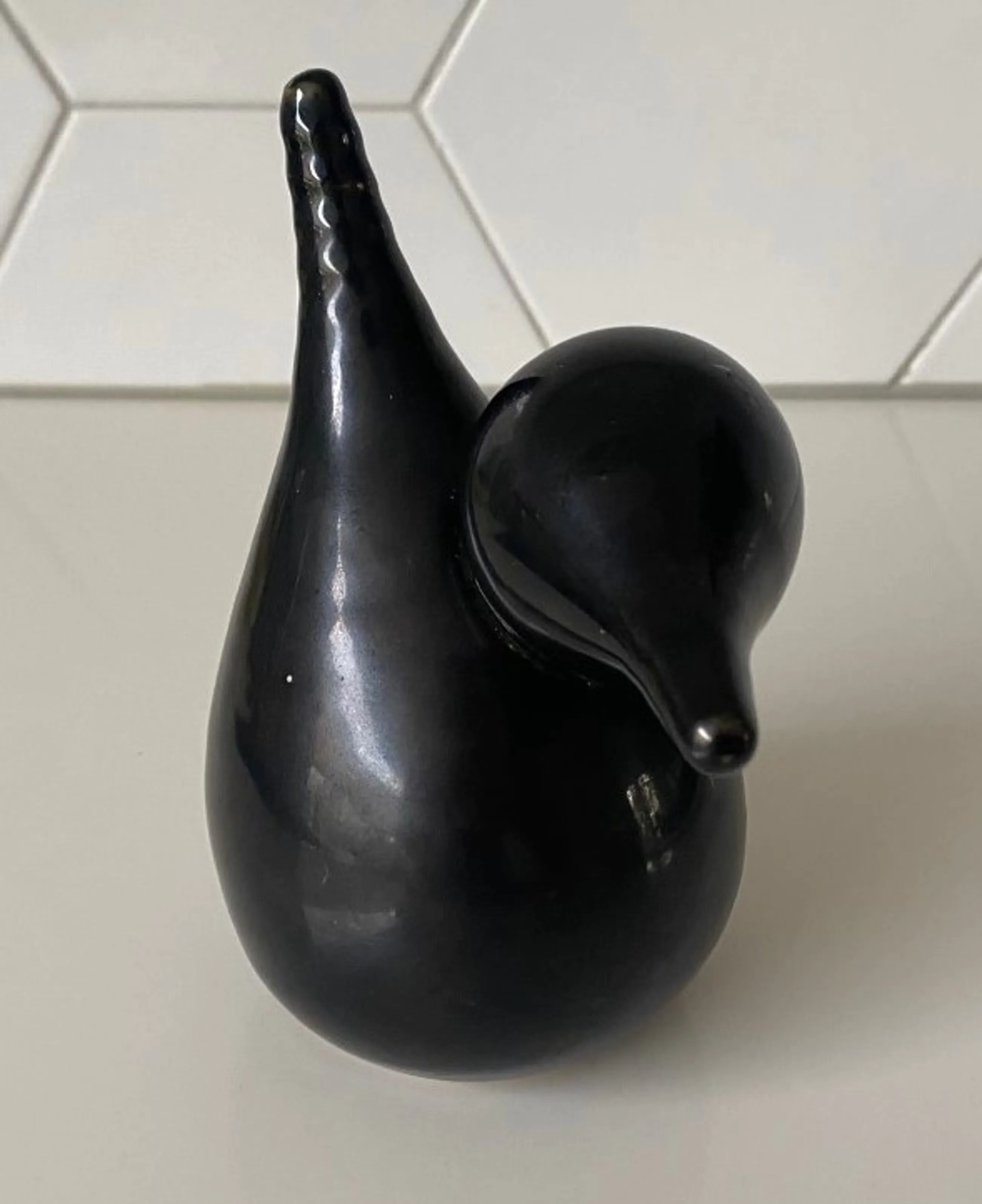 Kunst keramische figuur van een eend uitgevoerd in steengoed en voorzien van antraciet glazuur. Niet gemerkt.