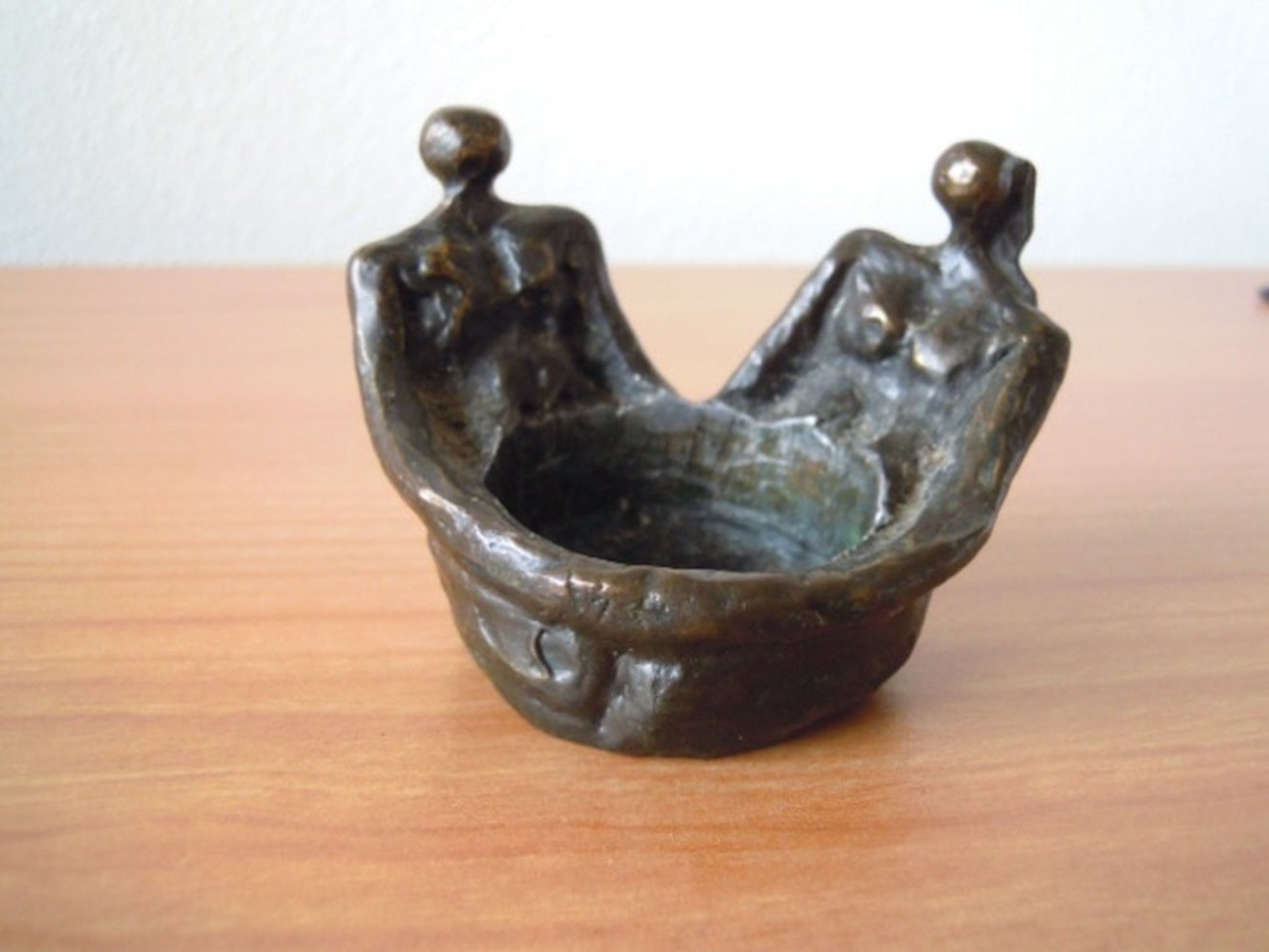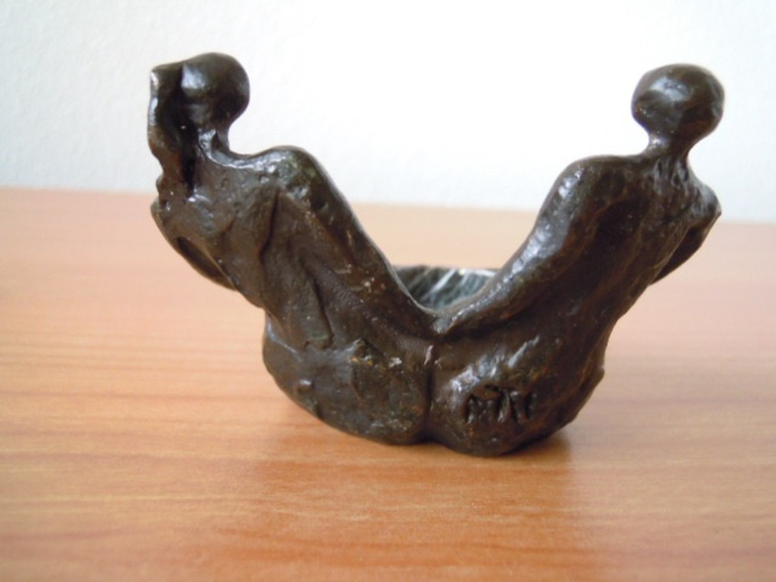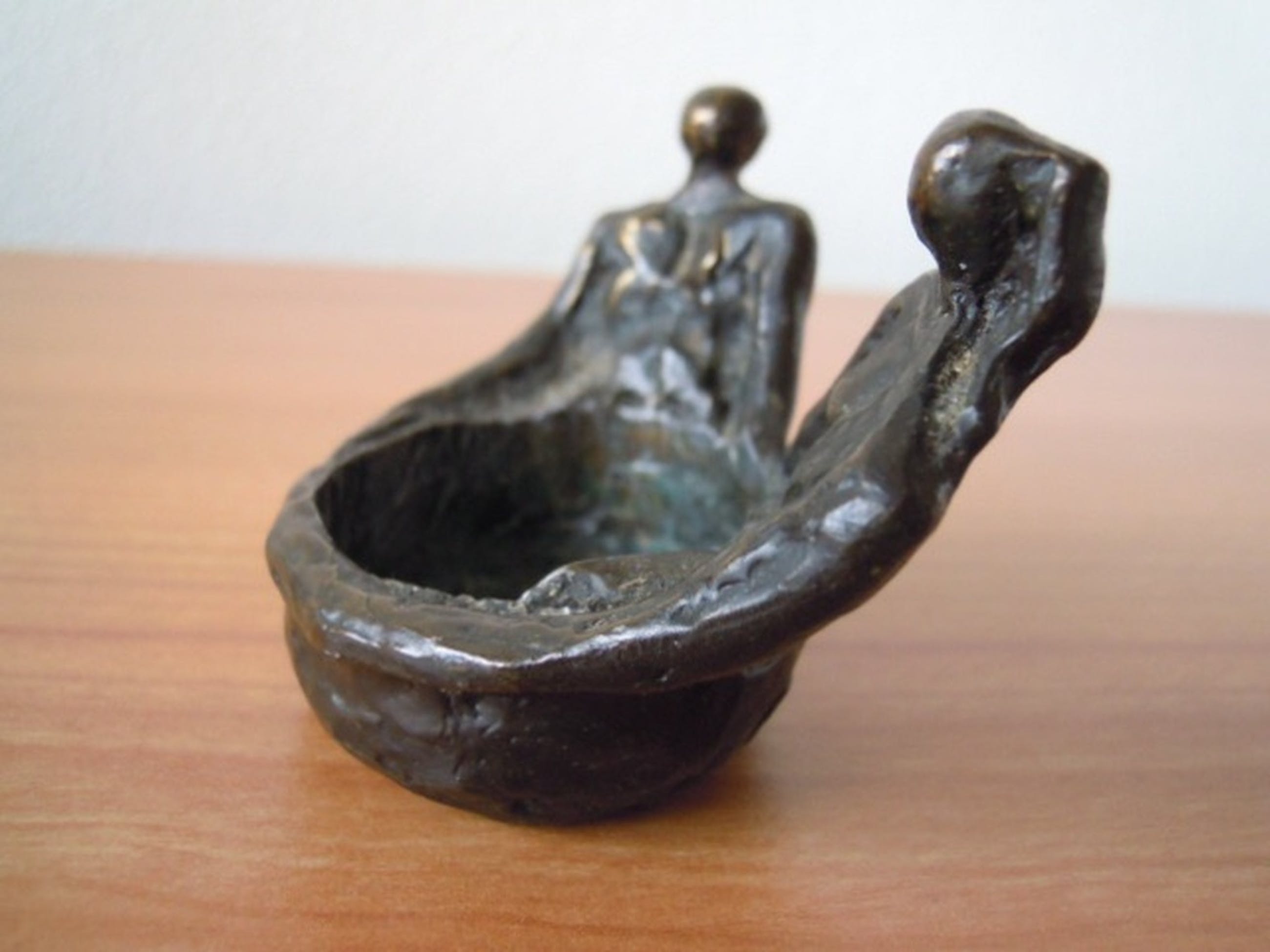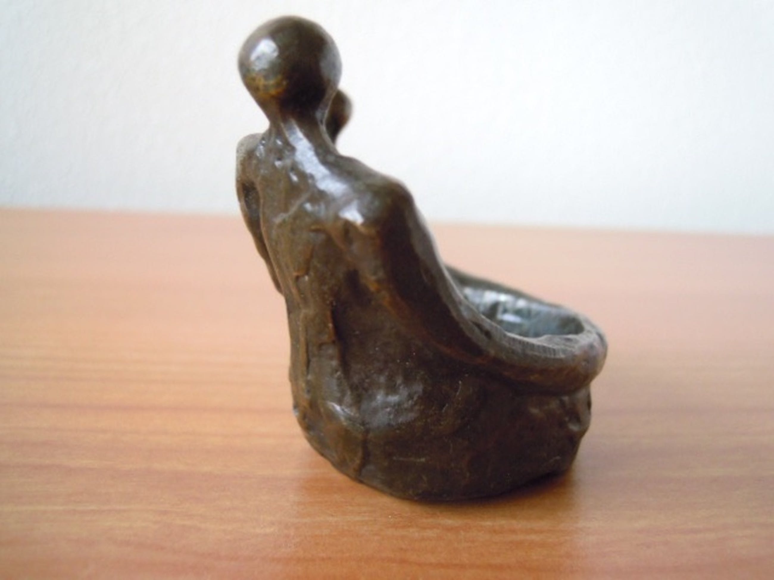 Kunstenaar onbekend- zwaar massief beeldje/theelichthouder -gesigneerd.