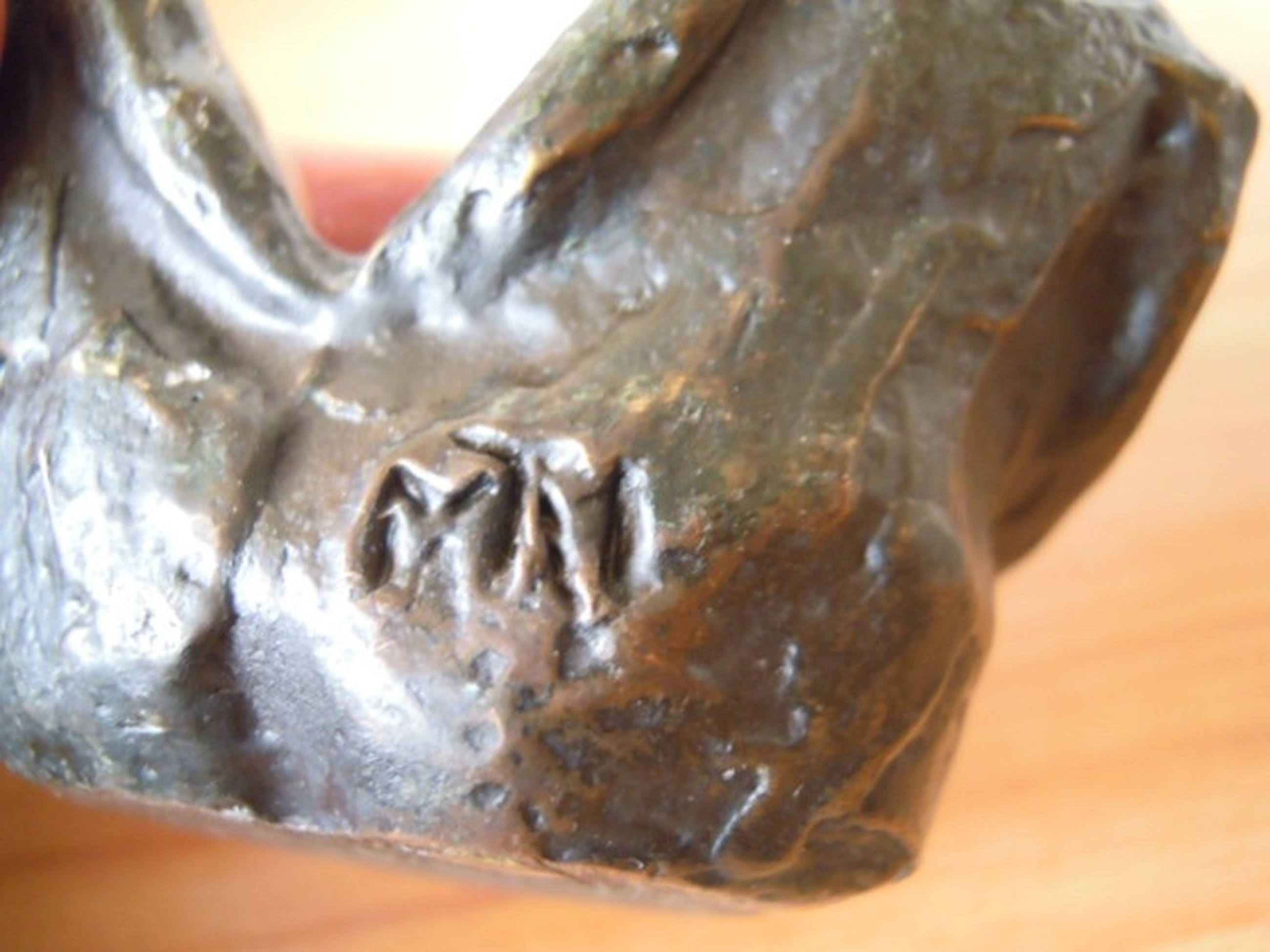 Het beeldje is gesigneerd - maar helaas is mij niet duidelijk wie de kunstenaart is.