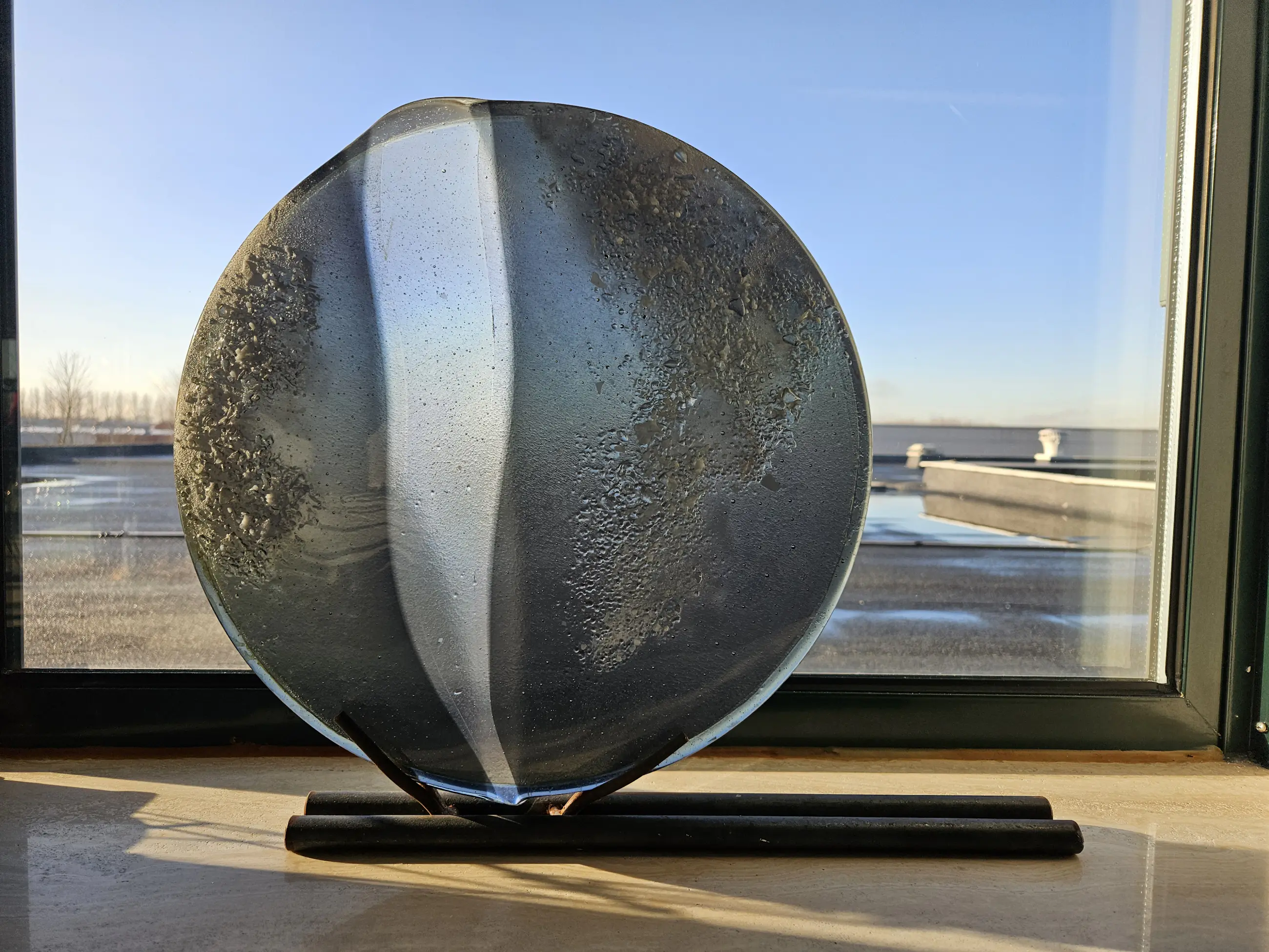 Onbekend - Kunststukje van glas met een gelaste stalen voet. kopen? Bied vanaf 150!