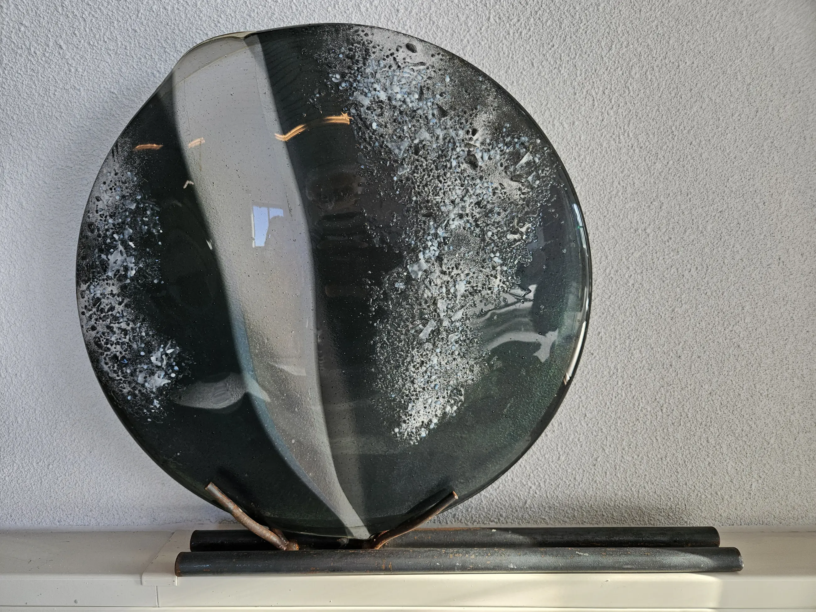 Onbekend - Kunststukje van glas met een gelaste stalen voet.