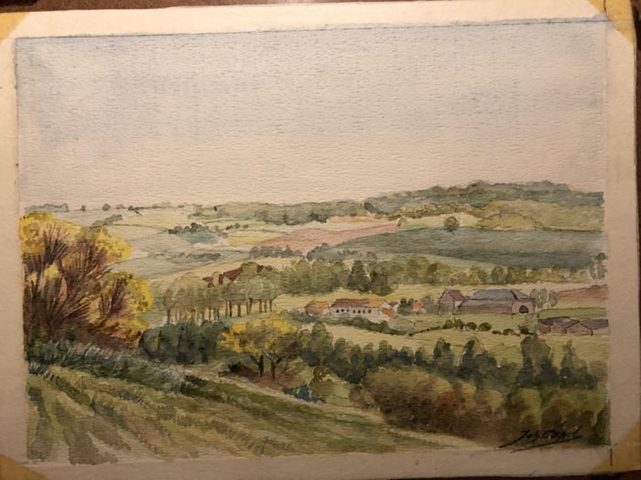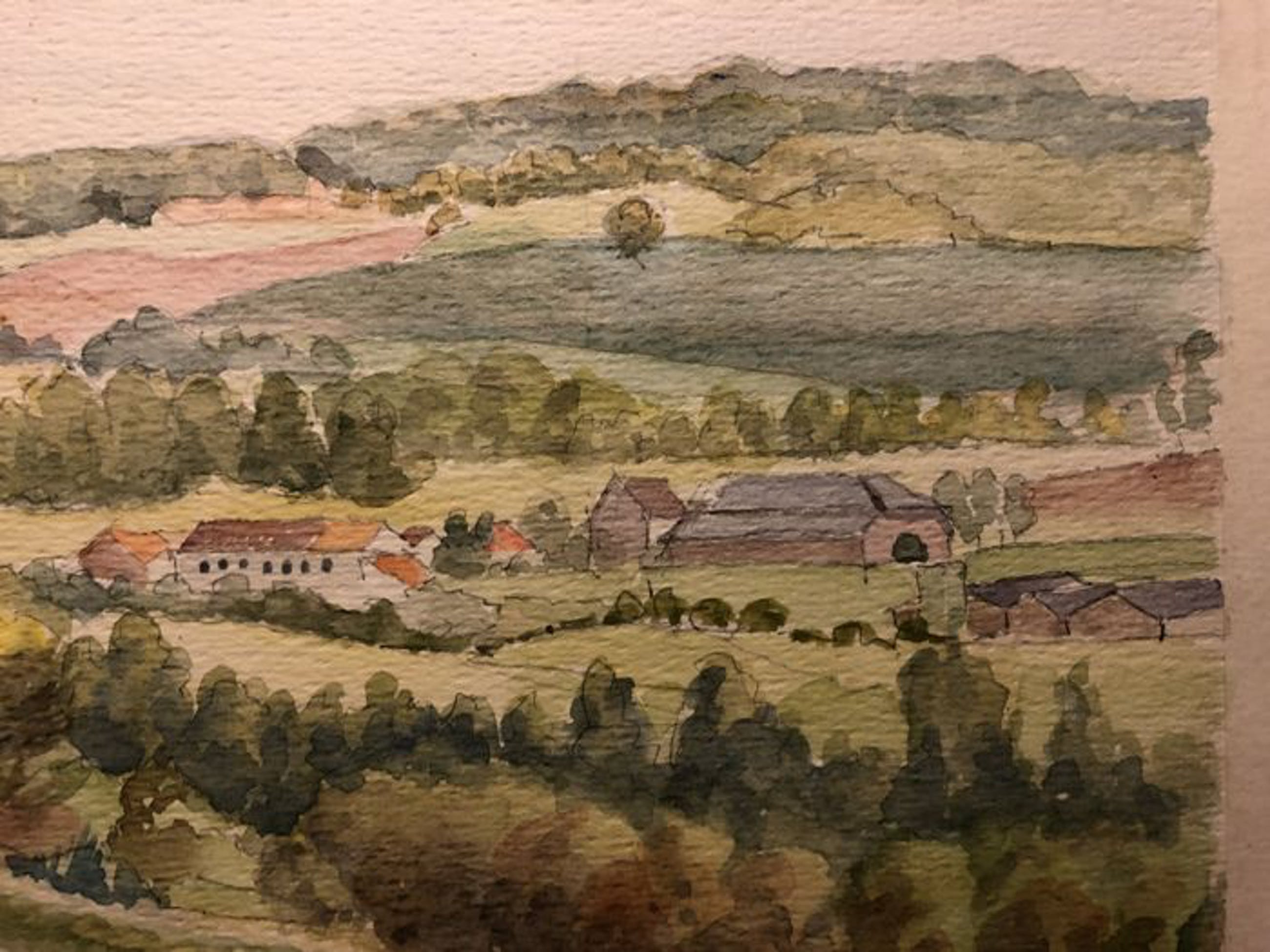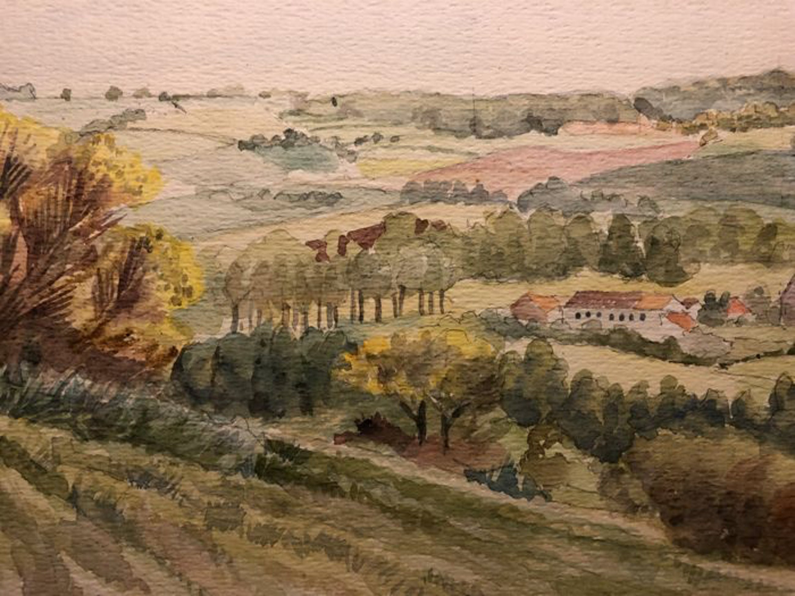 Prachtige aquarel van een landelijk vergezicht. Ik vermoed ergens in Frankrijk.