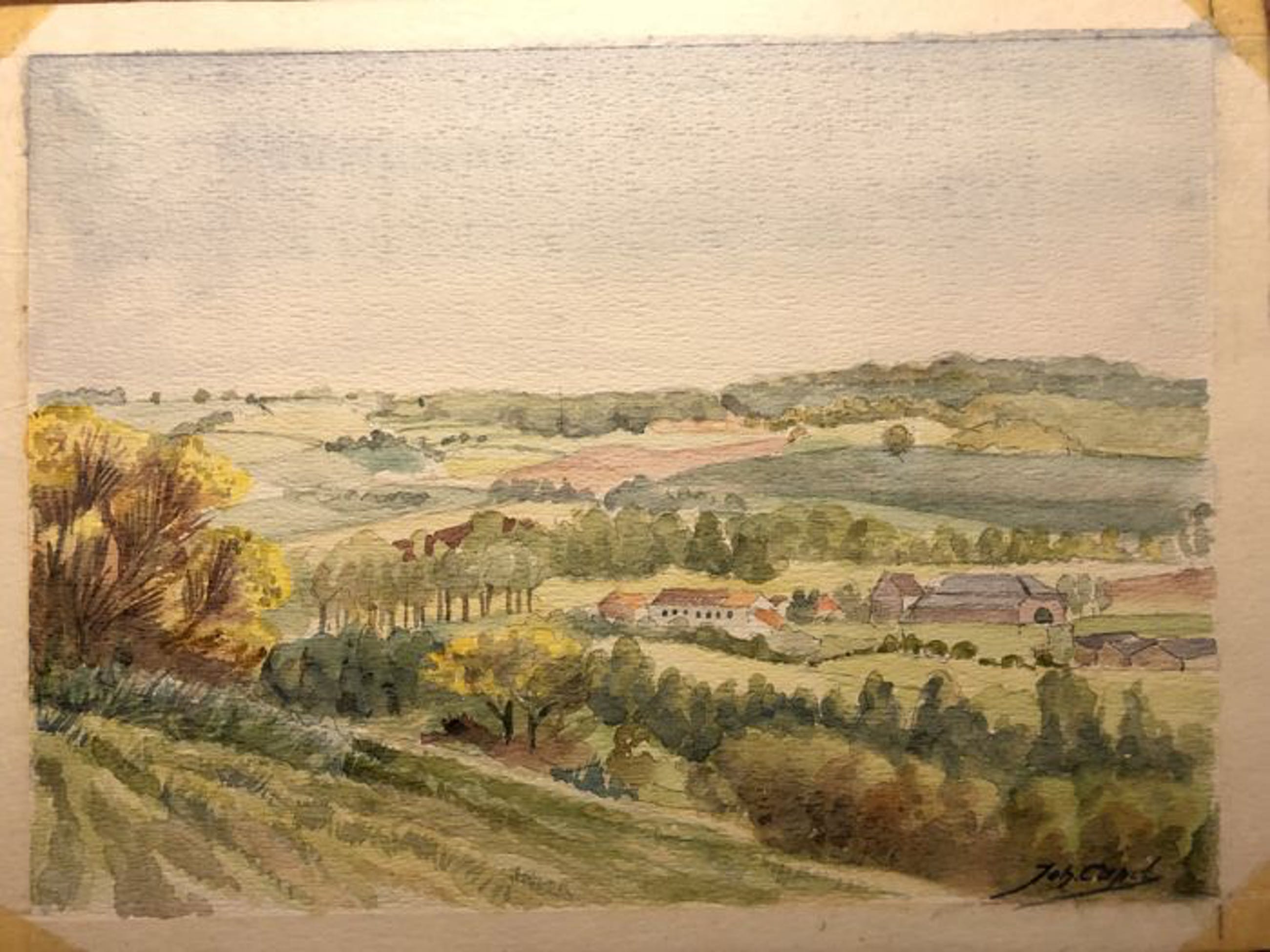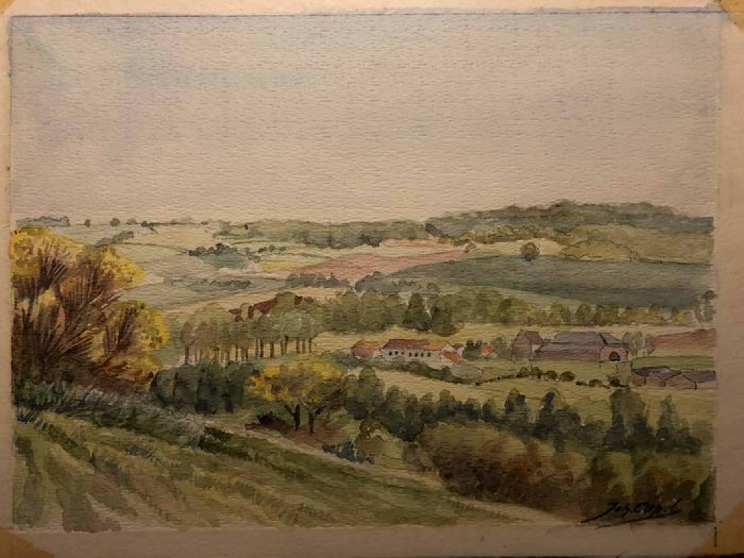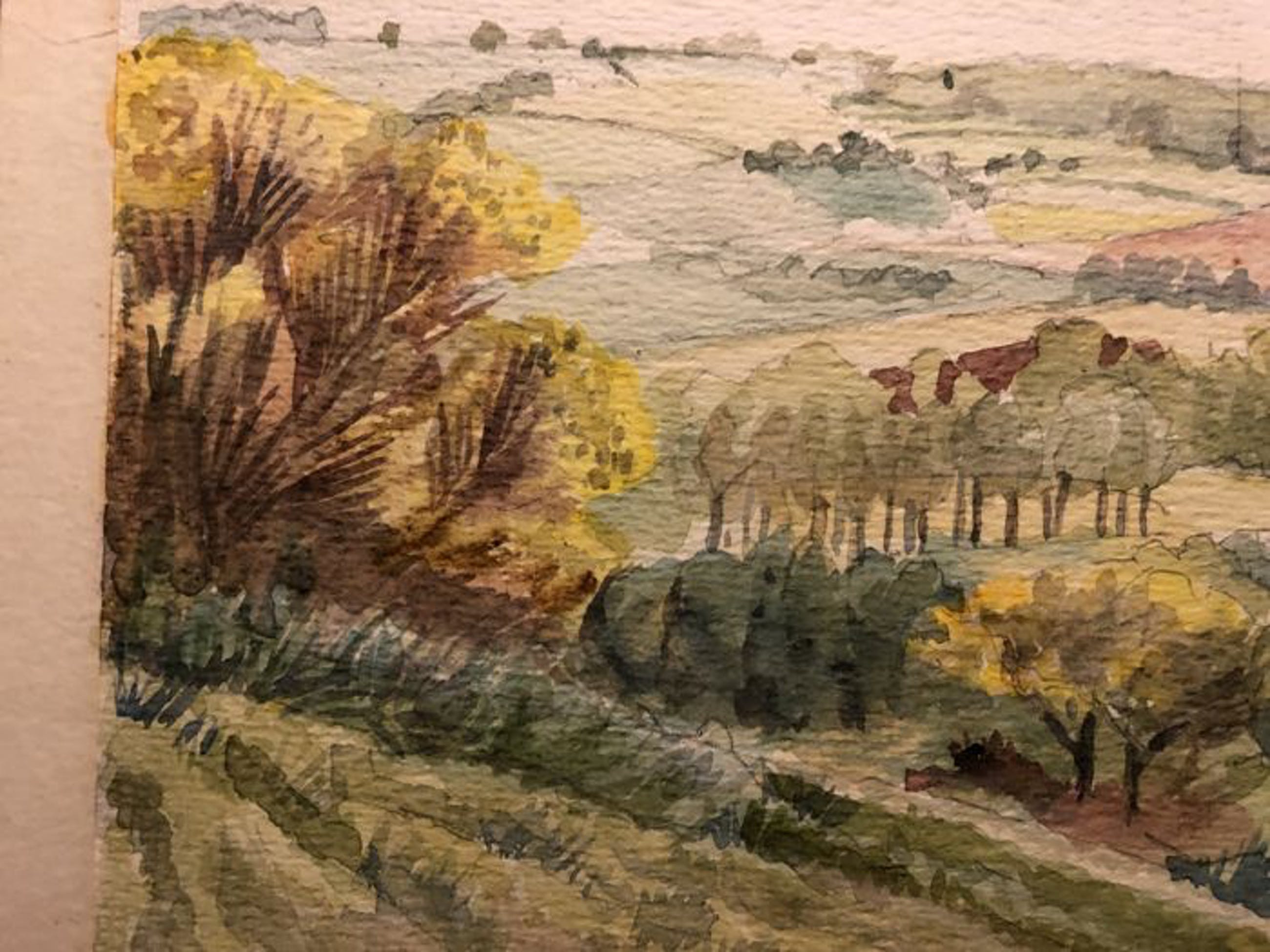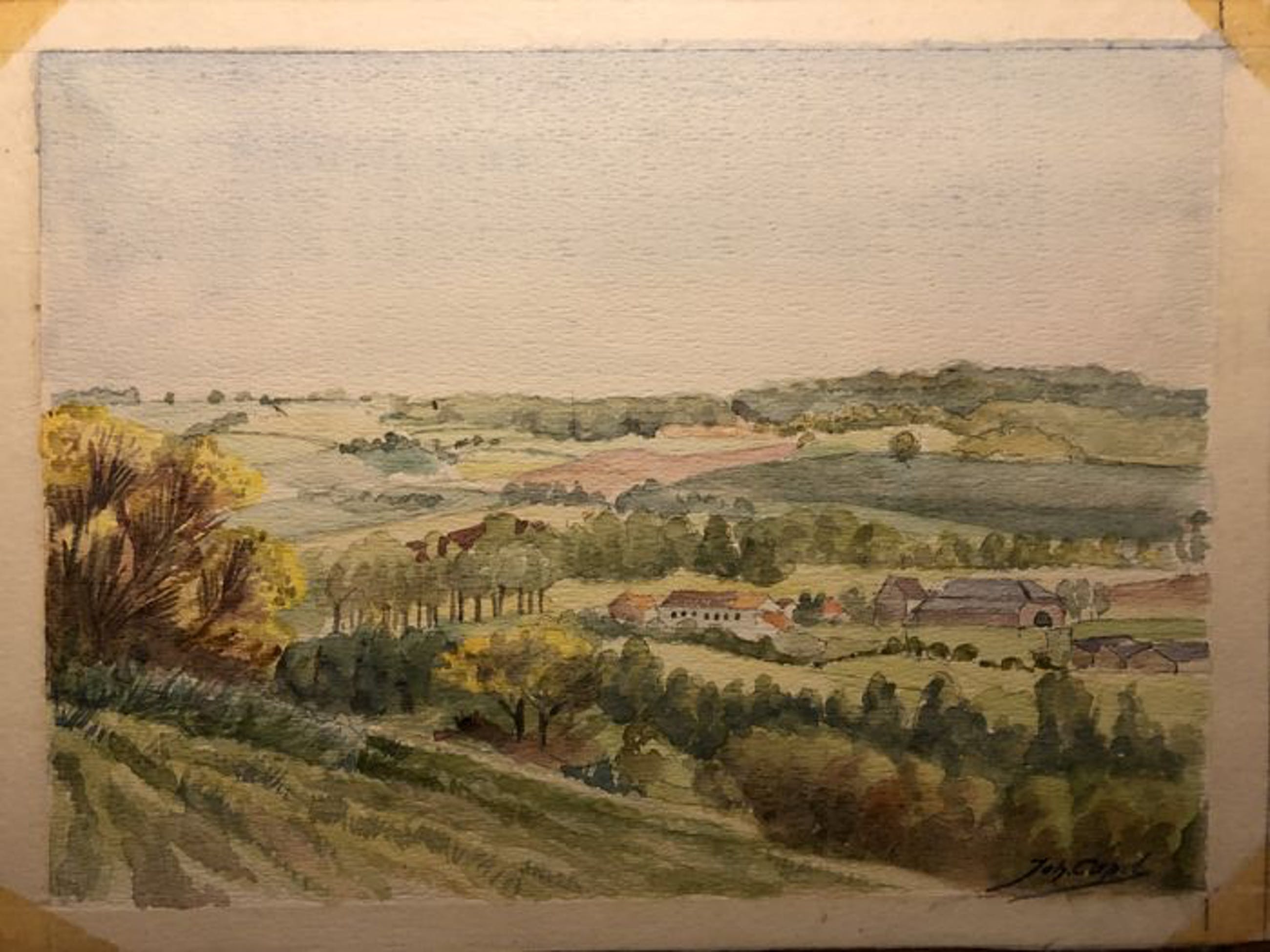 Prachtige aquarel van een landelijk vergezicht. Ik vermoed ergens in Frankrijk.