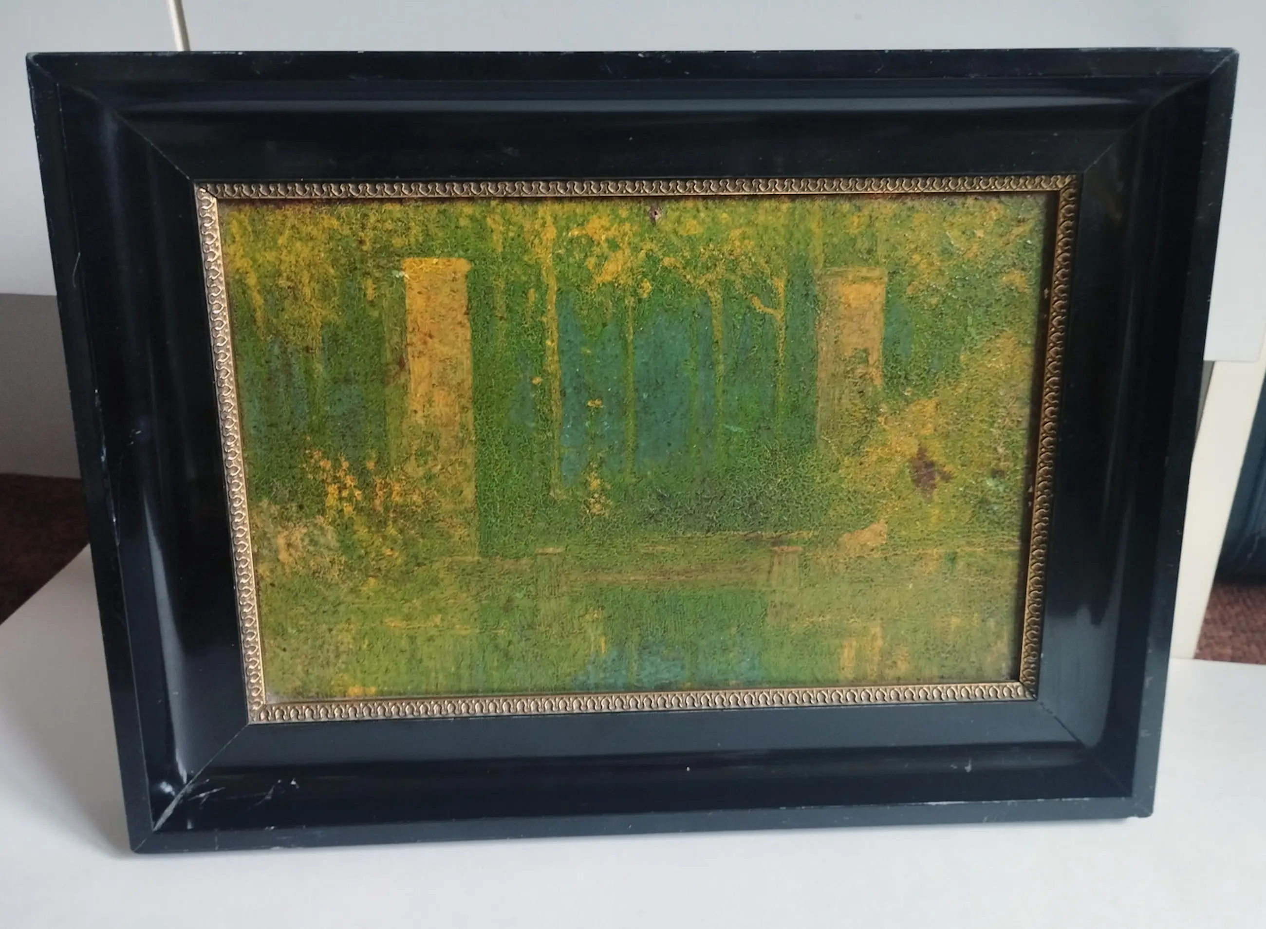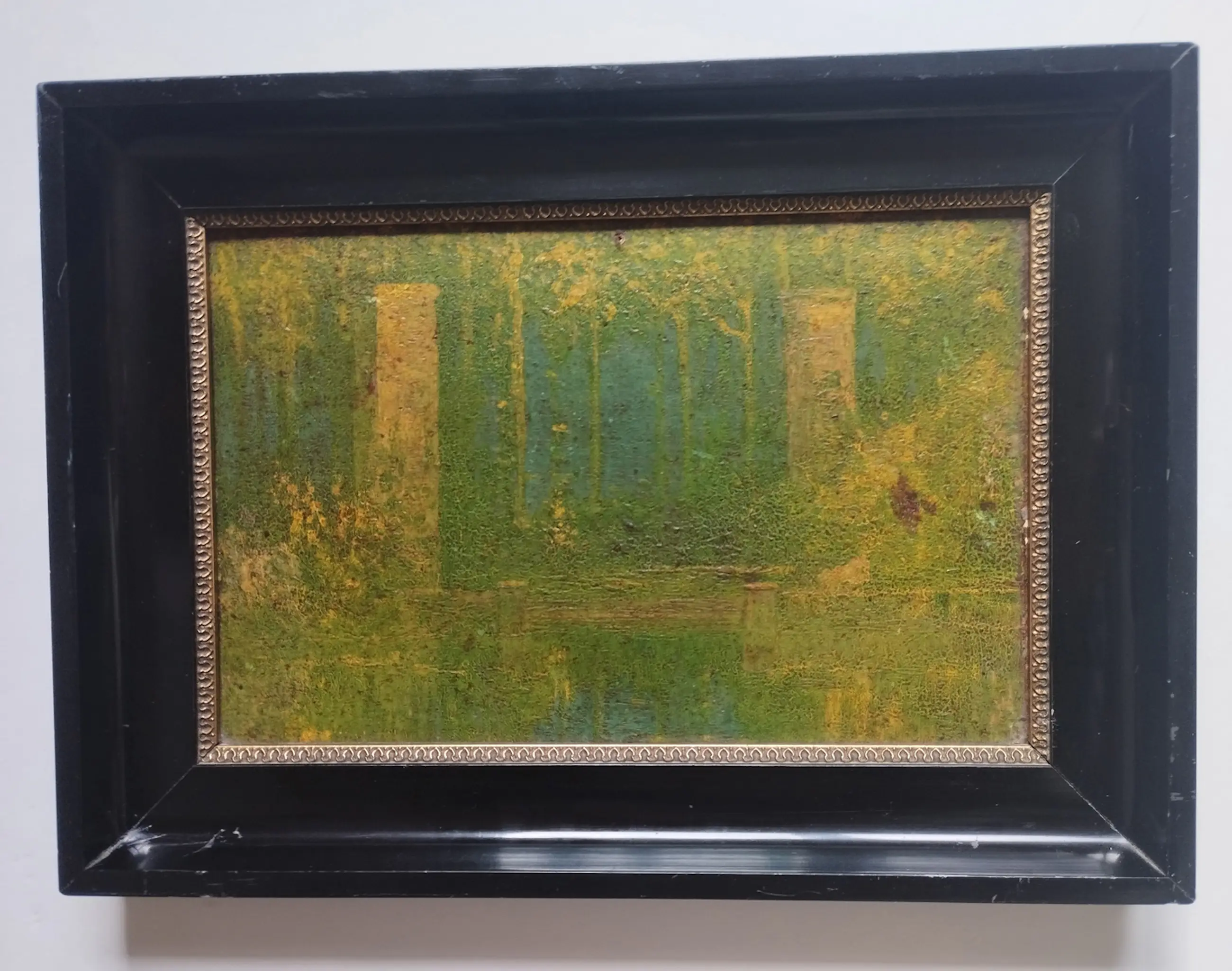 Curieus schilderijtje toegeschreven aan de destijds 17-jarige Karel Appel. In goede staat en in originele lijst.