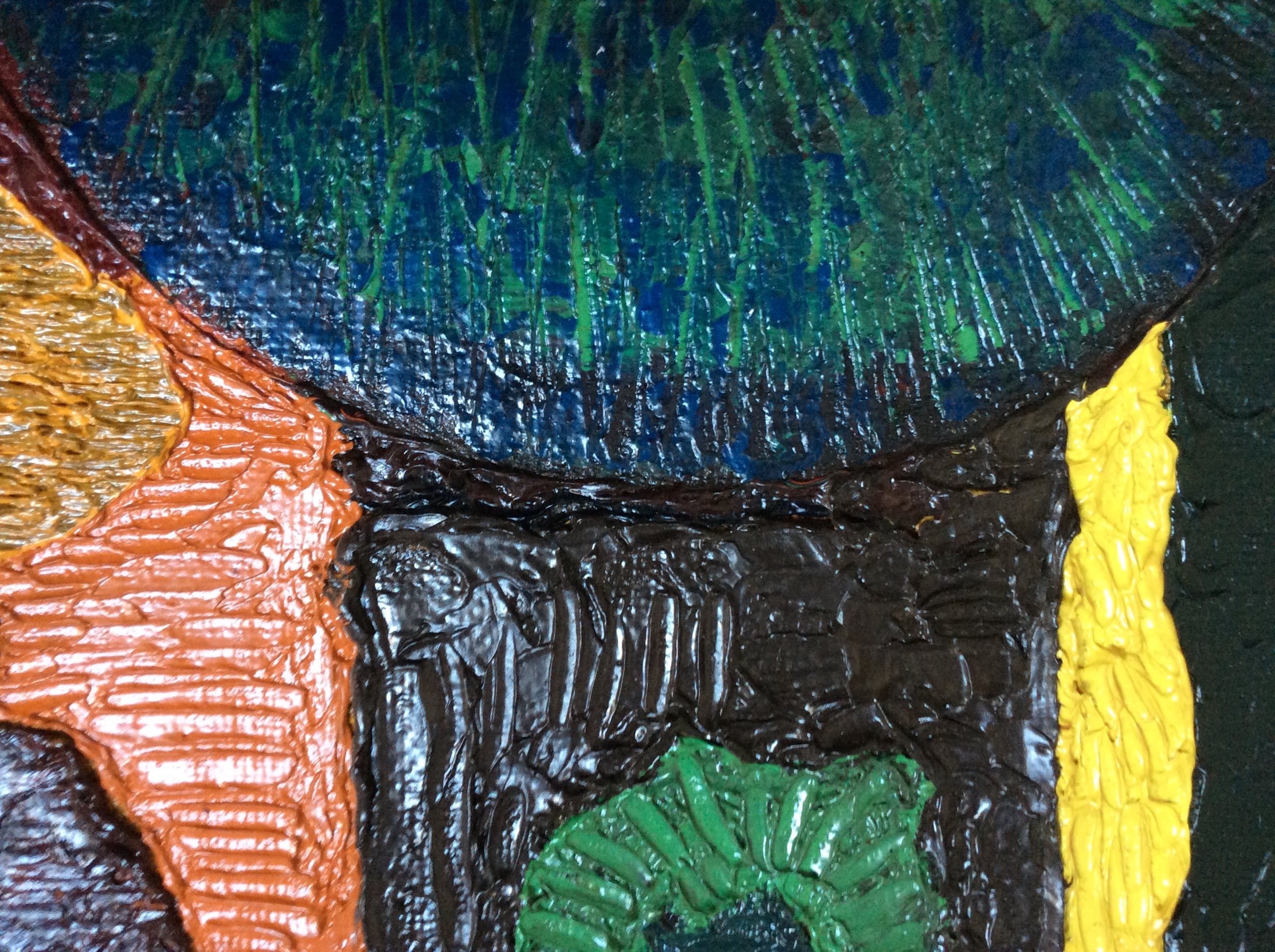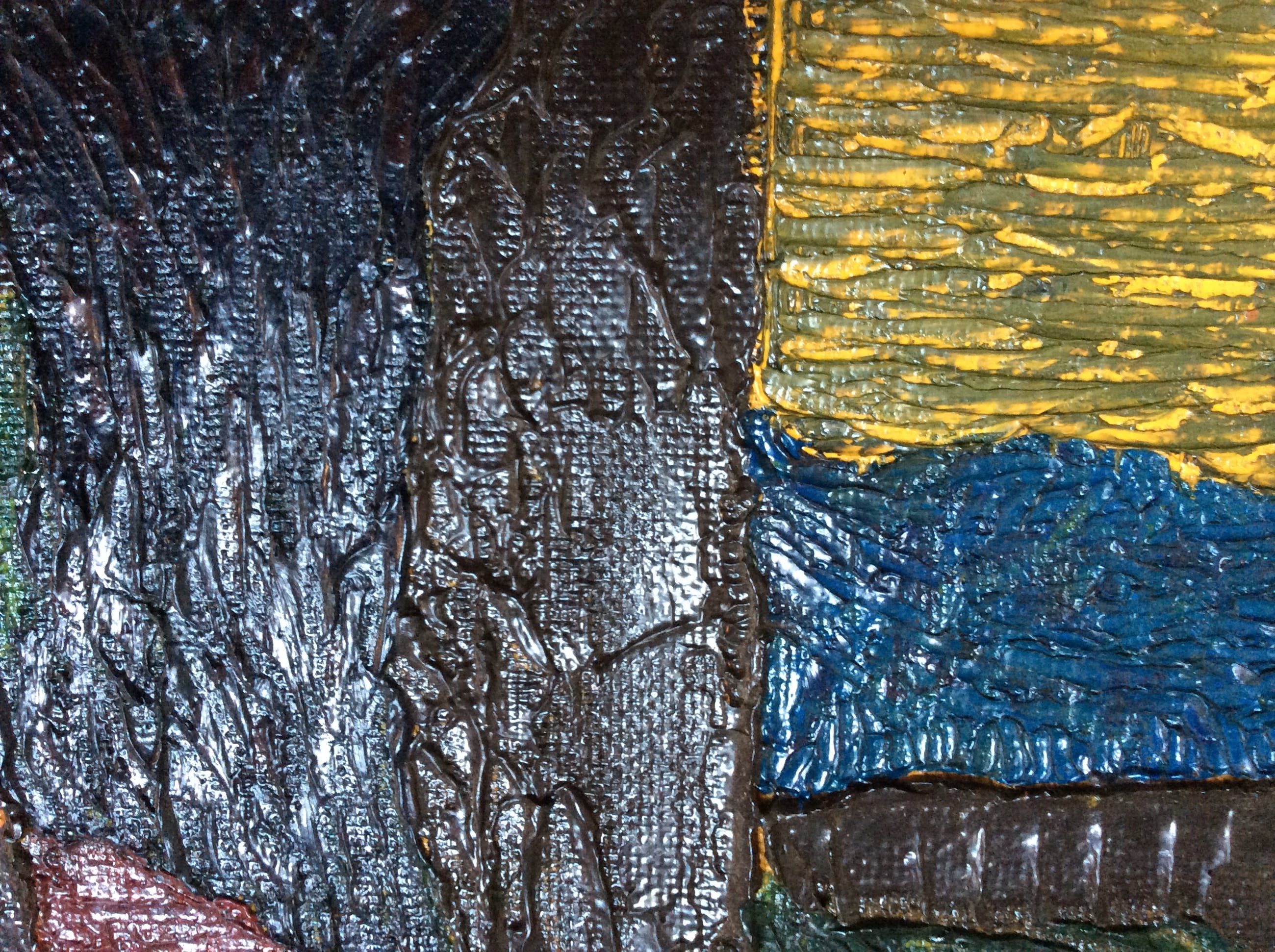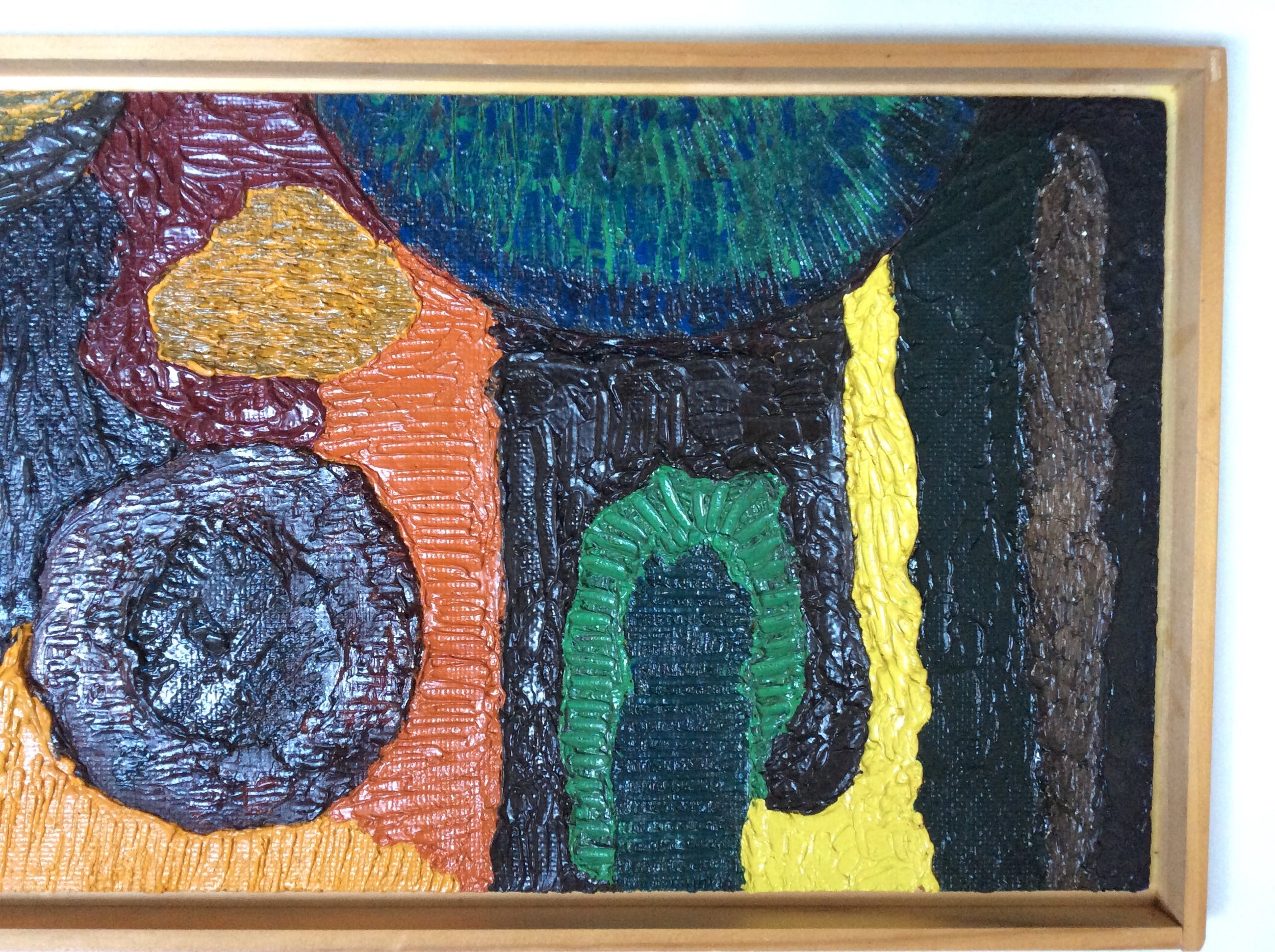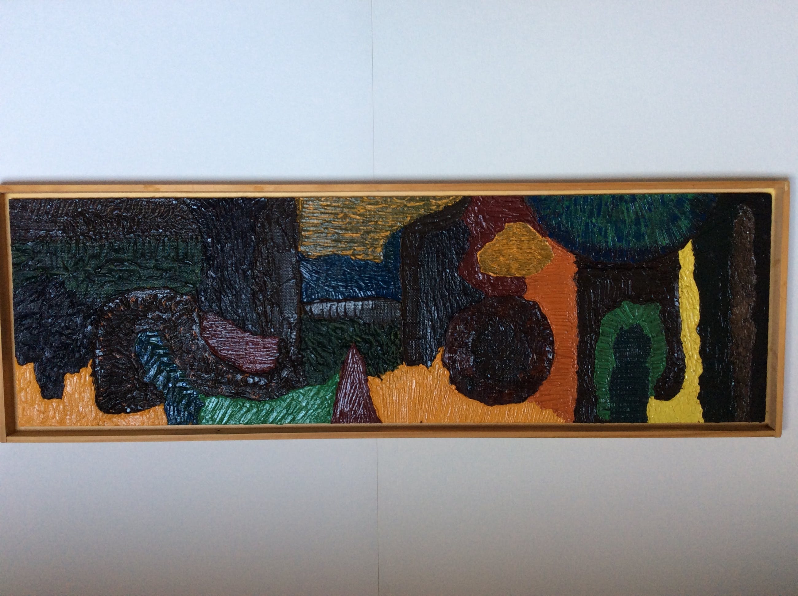 Van onbekende kunstenaar - Landschap.Dik opgebrachte olieverf op houten paneel, in blank houten baklijst.Formaat incl. 82 x 26 cm.Niet (zichtbaar) gesigneerd, ca. 1970.