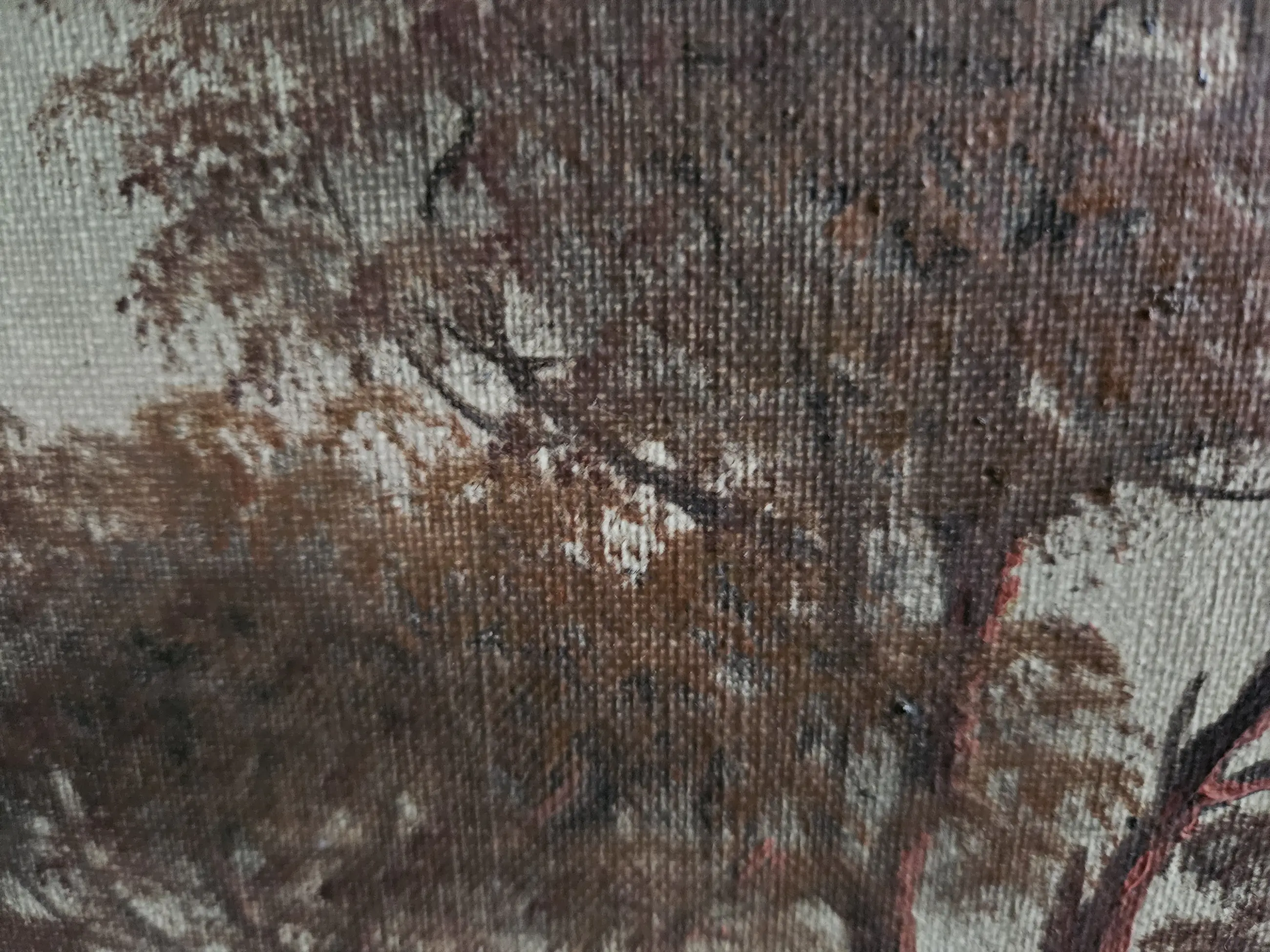 Redelijk tot goed. Zit goed in de verf, geen beschadigingen op het doek kunnen vinden. Maar ben geen kenner. Lijst wel beschadigd.