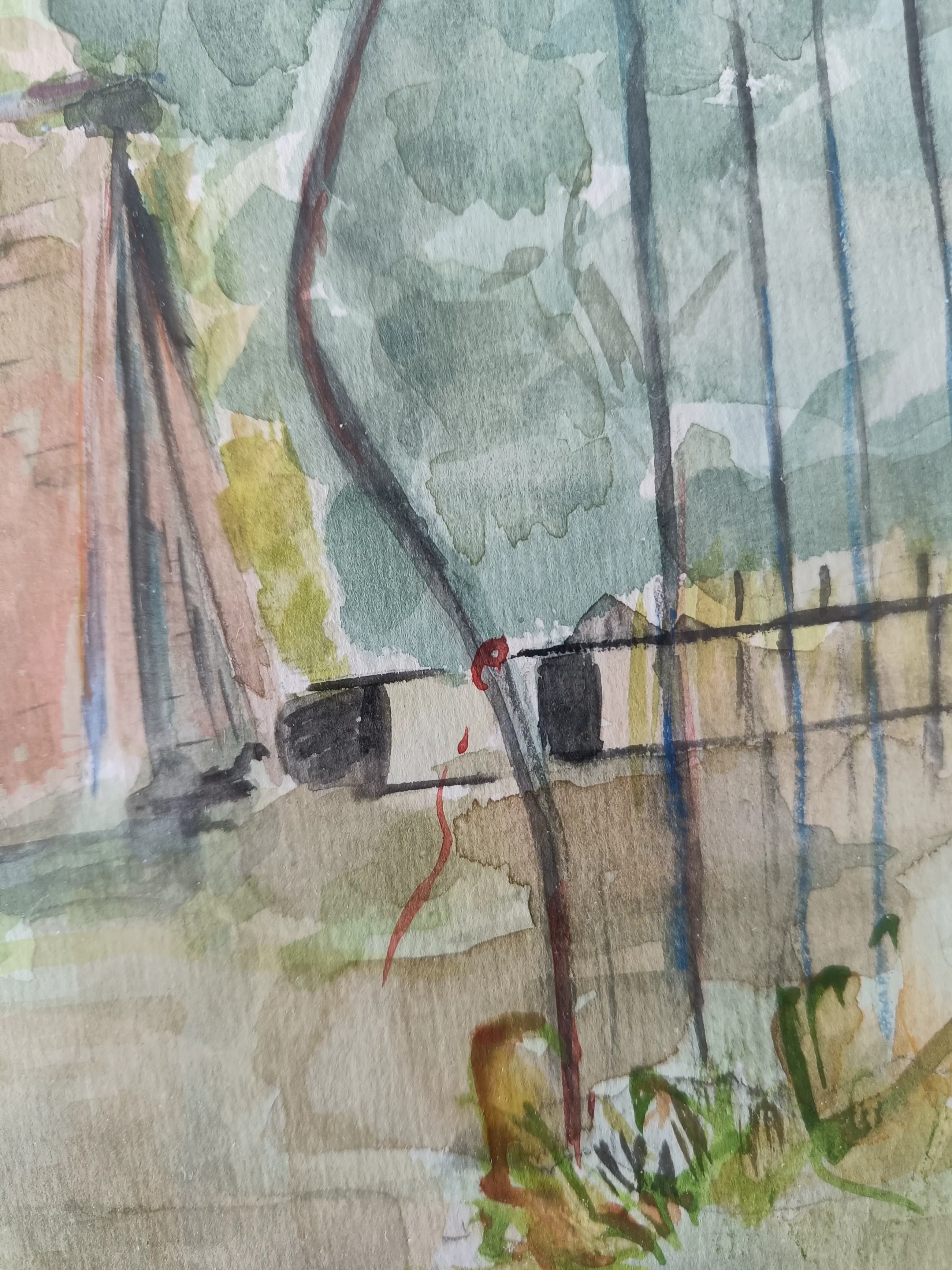 Aquarel met passe un partout. Afm. Aquarel: 39x29cm Afm. Passe partout: 49x41cm Afm. Lijst: 54x46cm