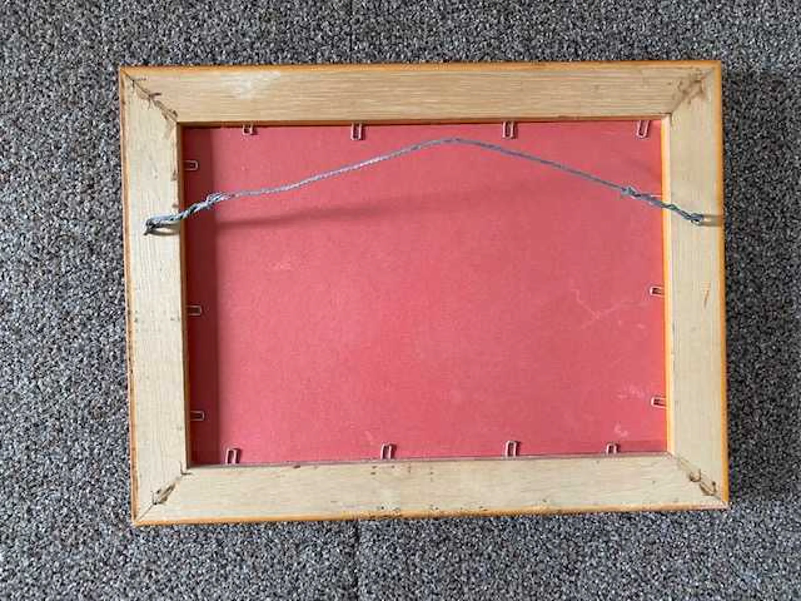 het schilderijtje is klassiek ingelijst en vertoont evenals deze lijst slechts beperkte sporen van gebruik en ouderdom