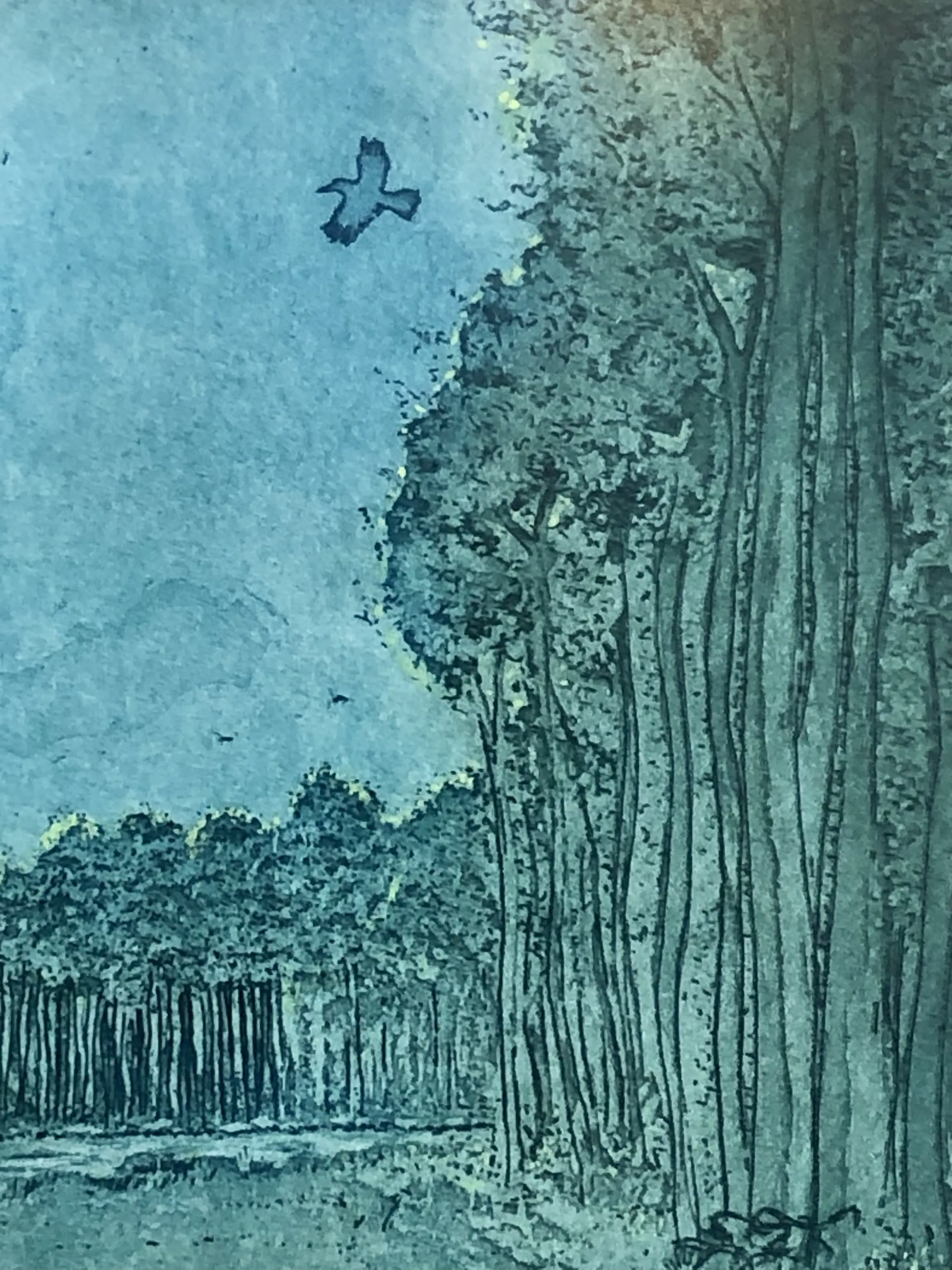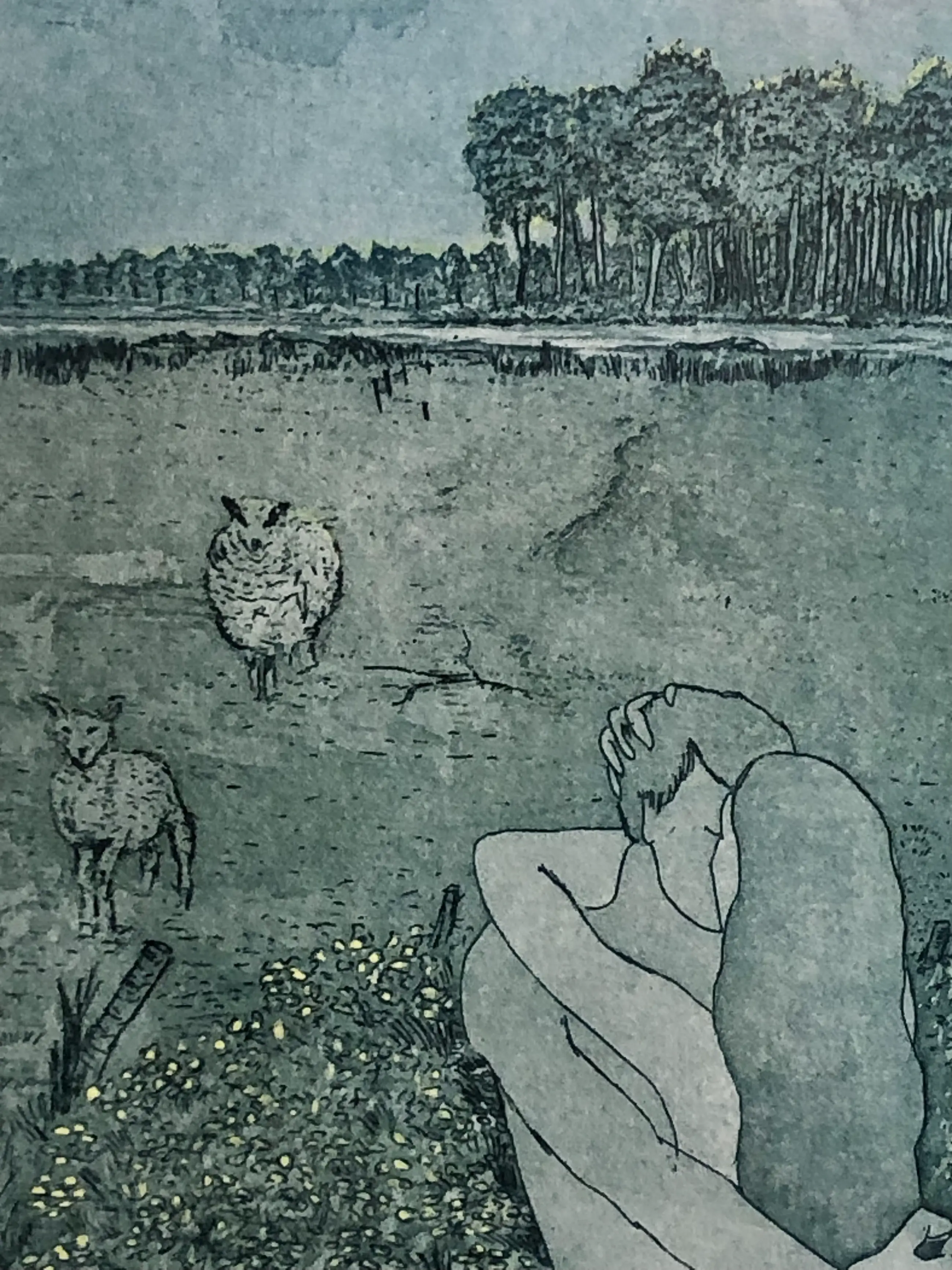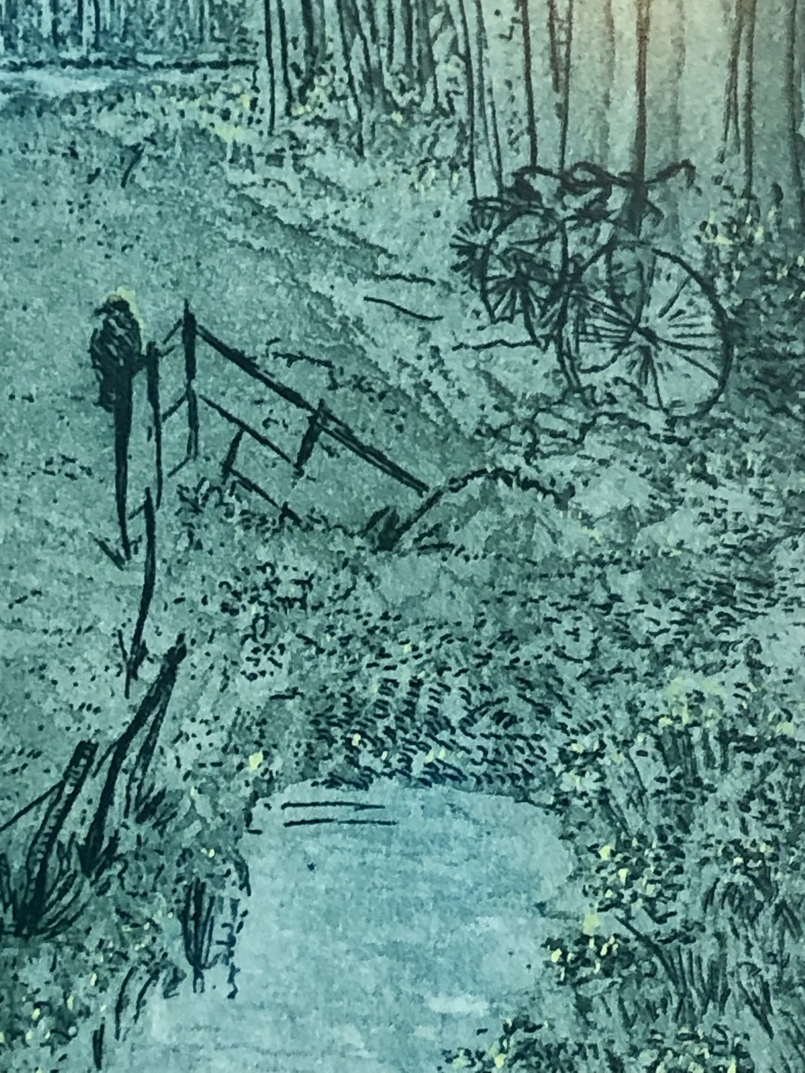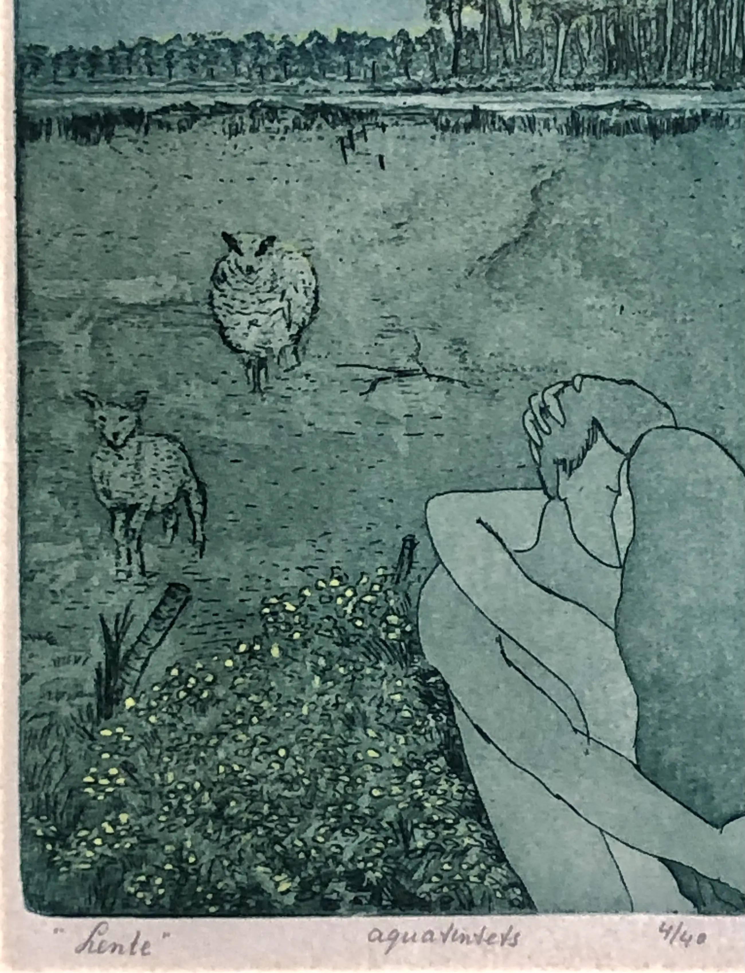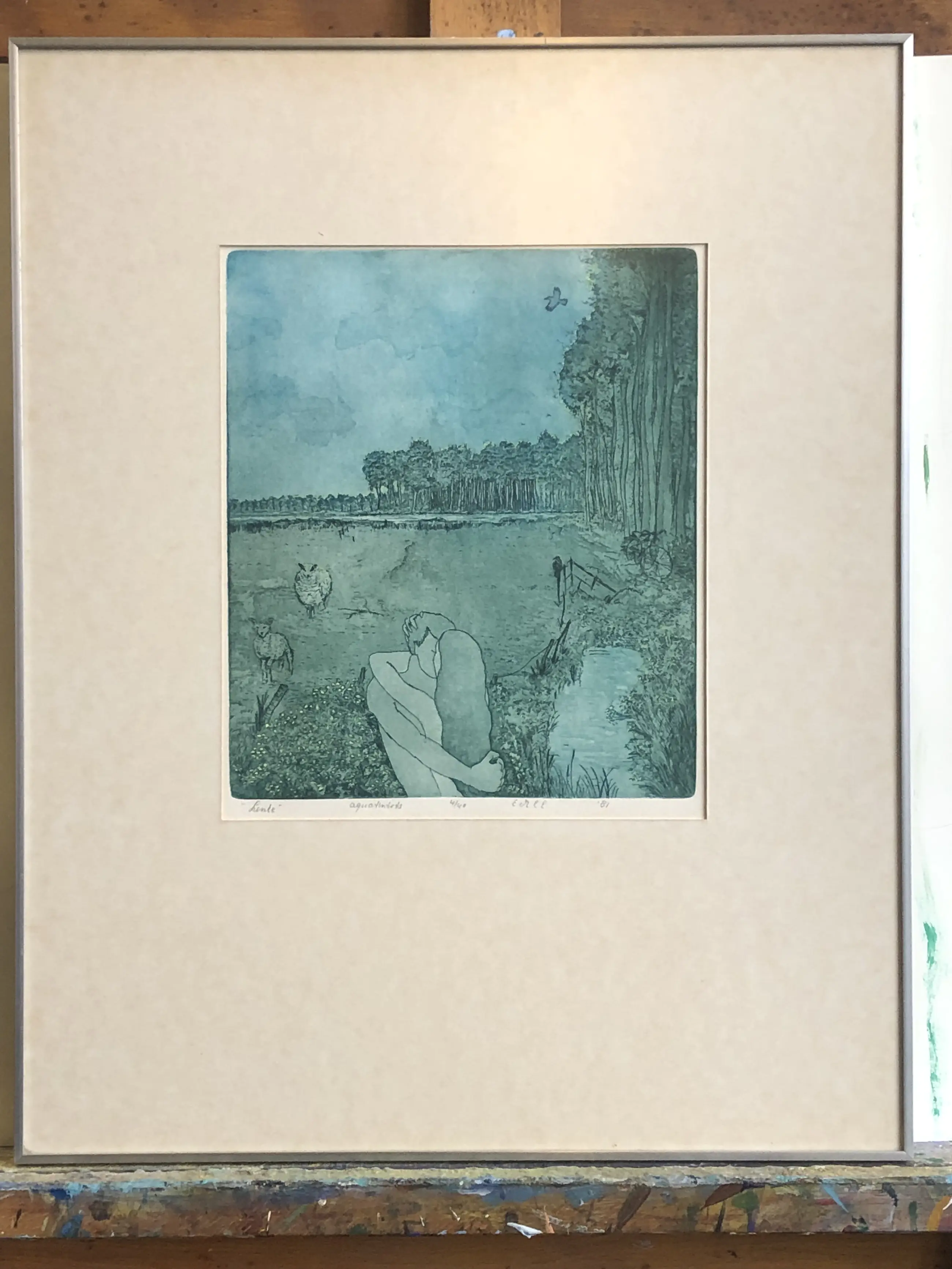 Lente! Prachtige aquatint van een ons onbekende meester. Gevat in een nette lijst, passe-partout iets verkleurd.