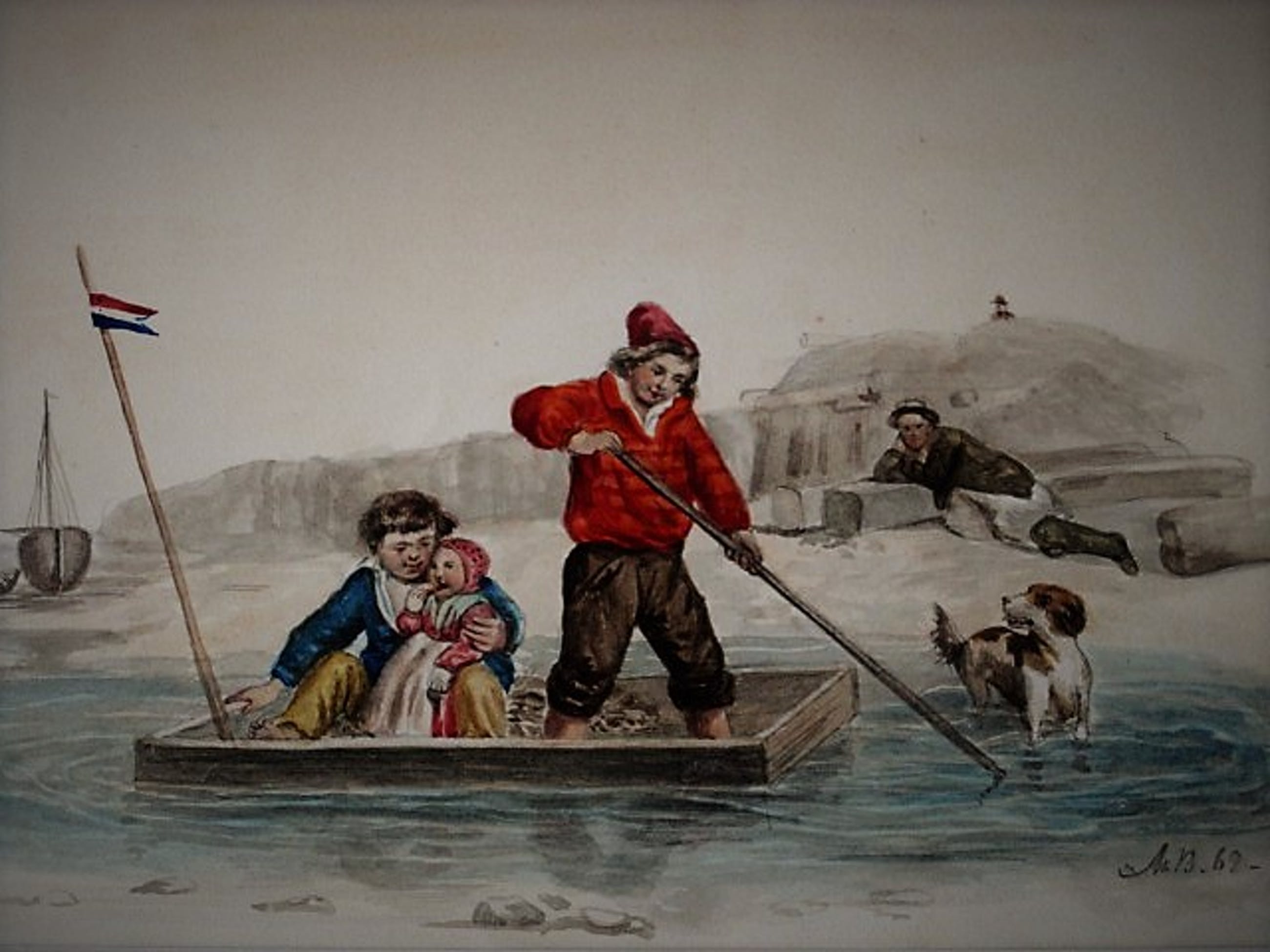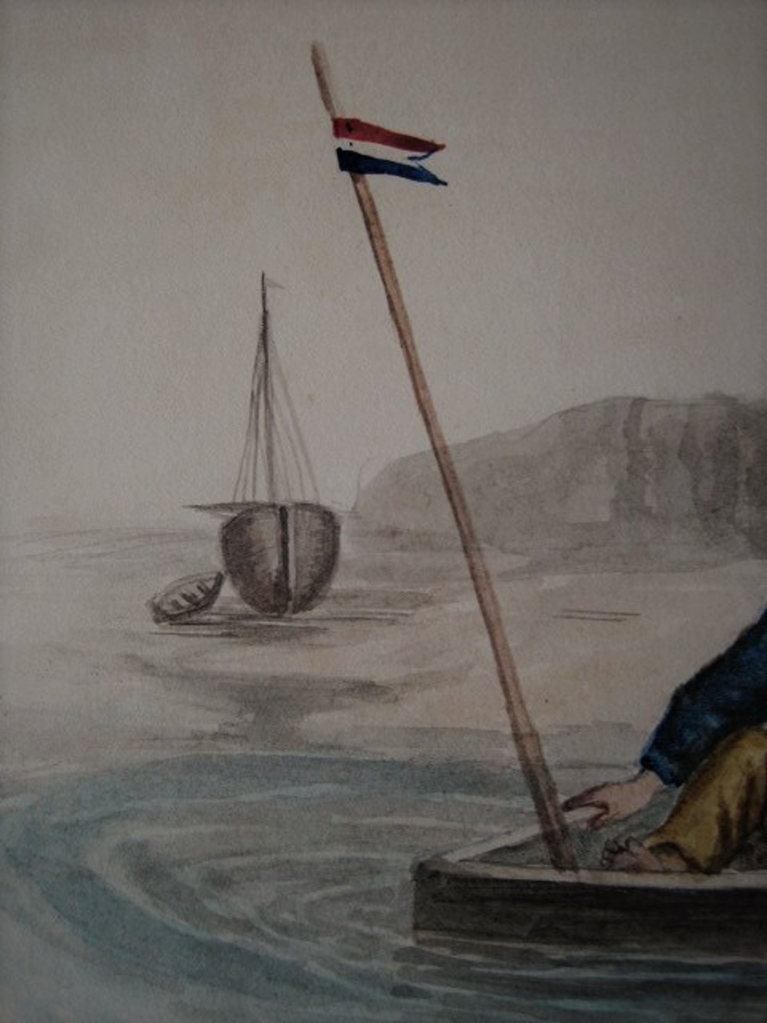 Goed geconserveerde 19e Eeuwse aquarel. Weinig zichtbare onregelmatigheden. Mooie frisse kleuren en recentelijk in nieuw passe partout geplaatst.