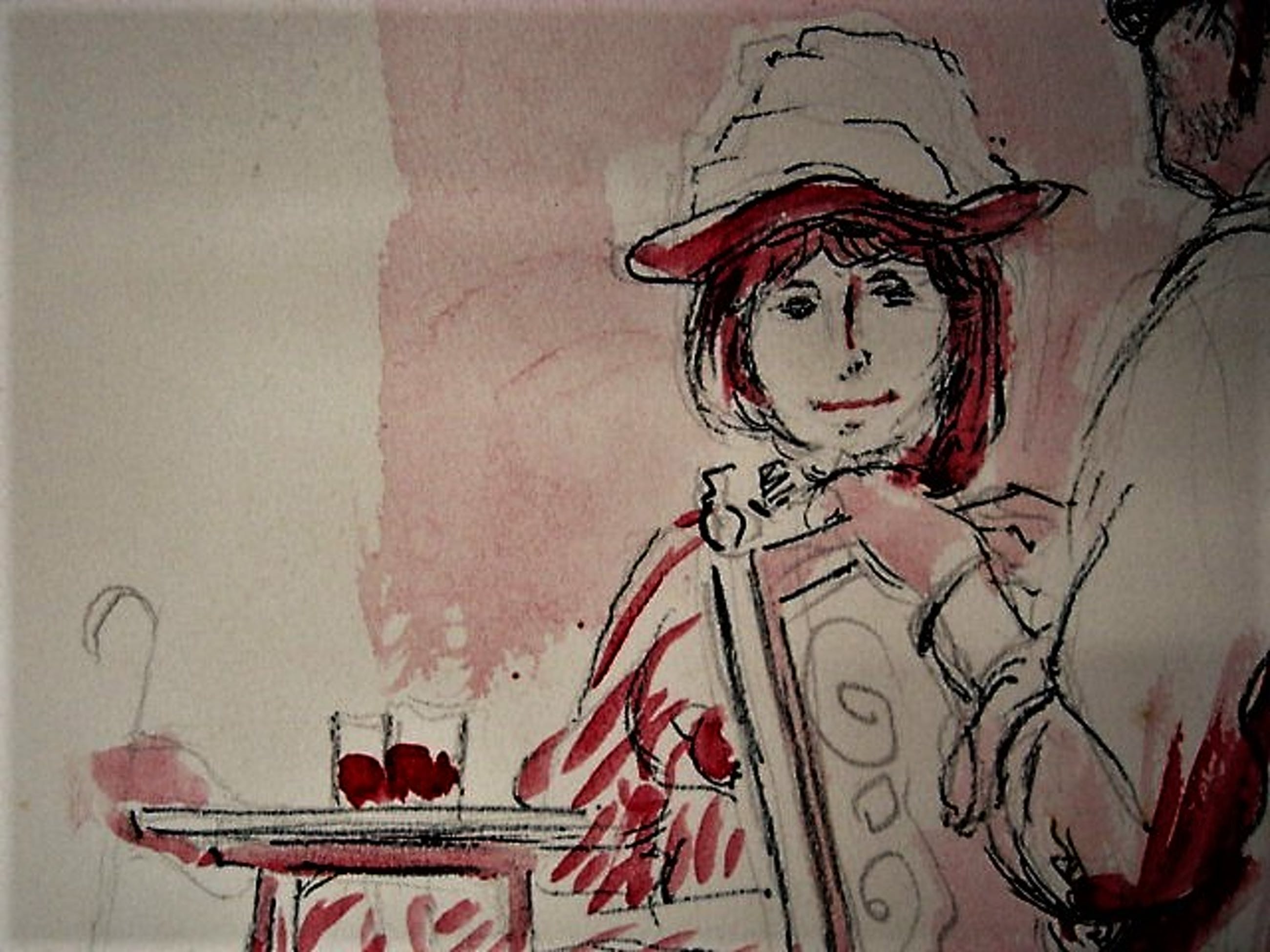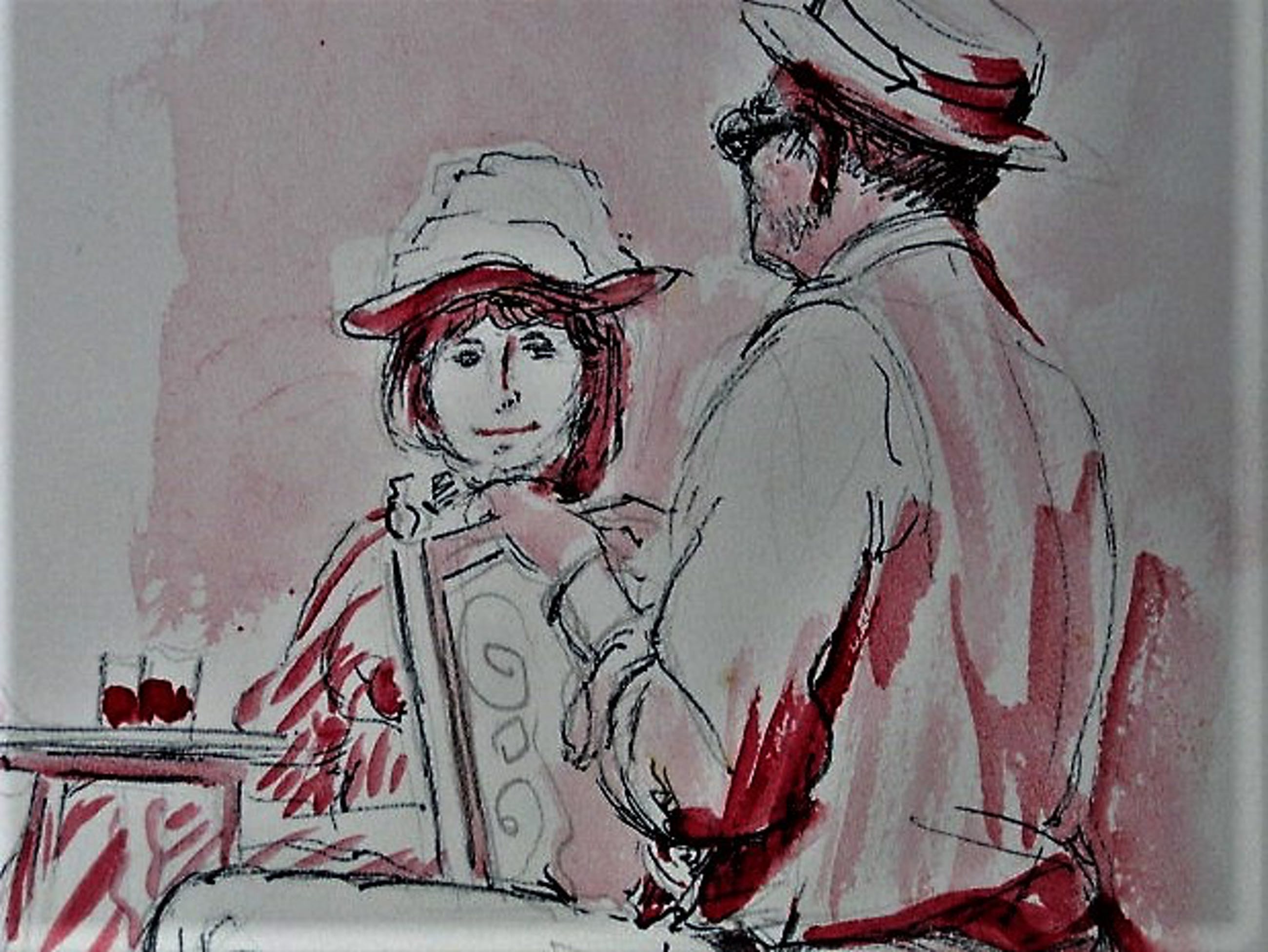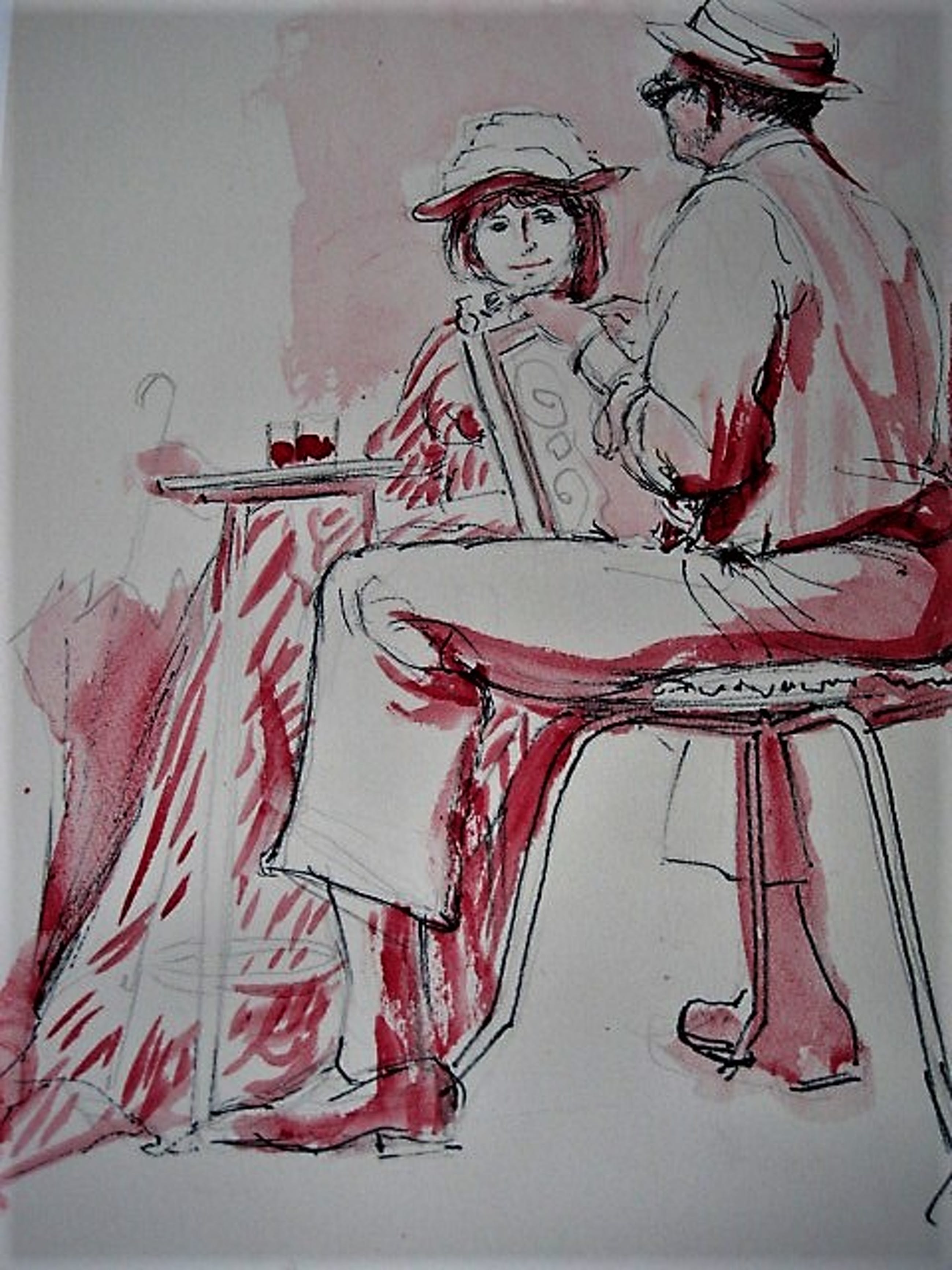 Niet of onleesbaar gesigneerd - Leuke met monogram "IL" gesigneerde Aquarel "op het terras" kopen? Bied vanaf 5!