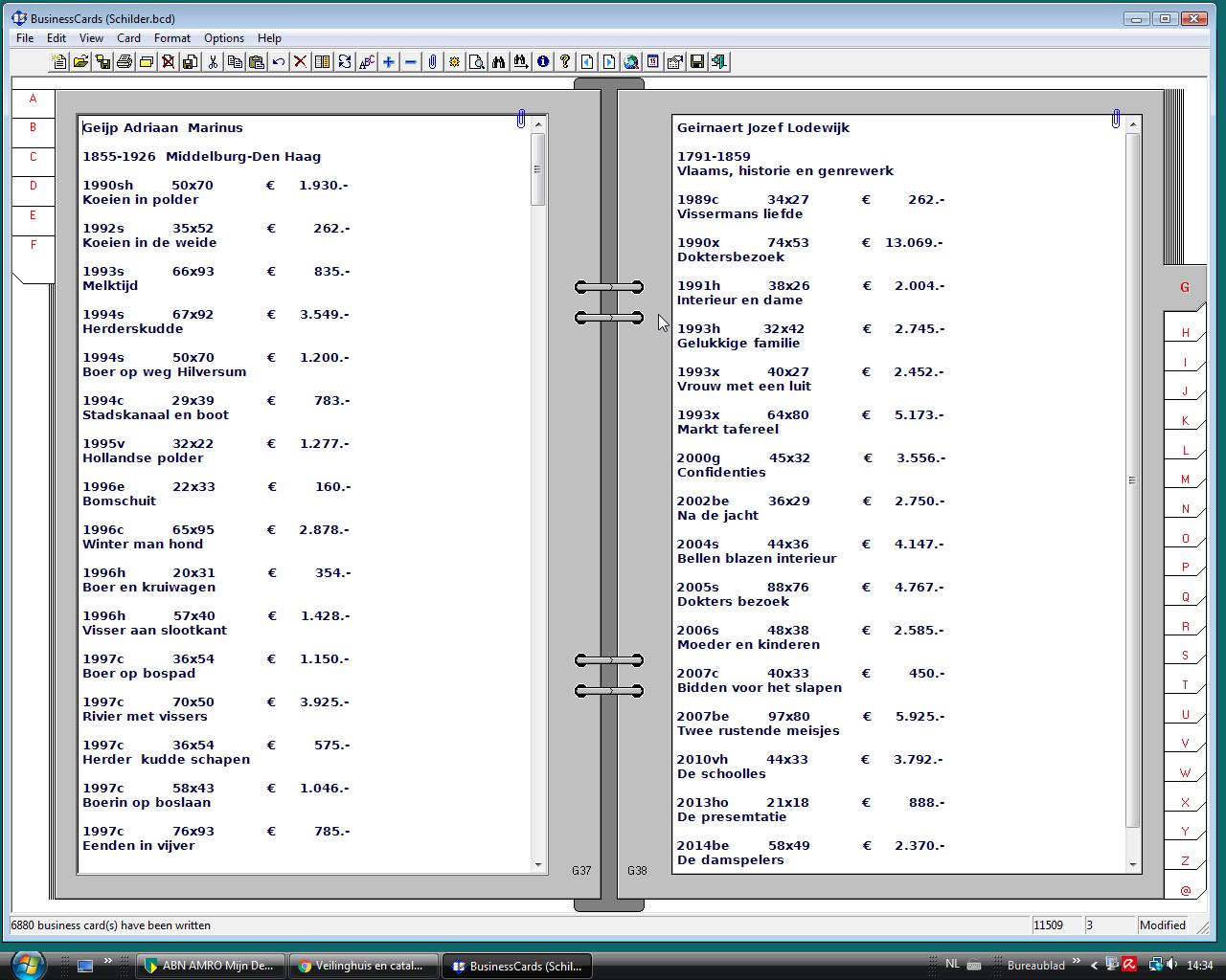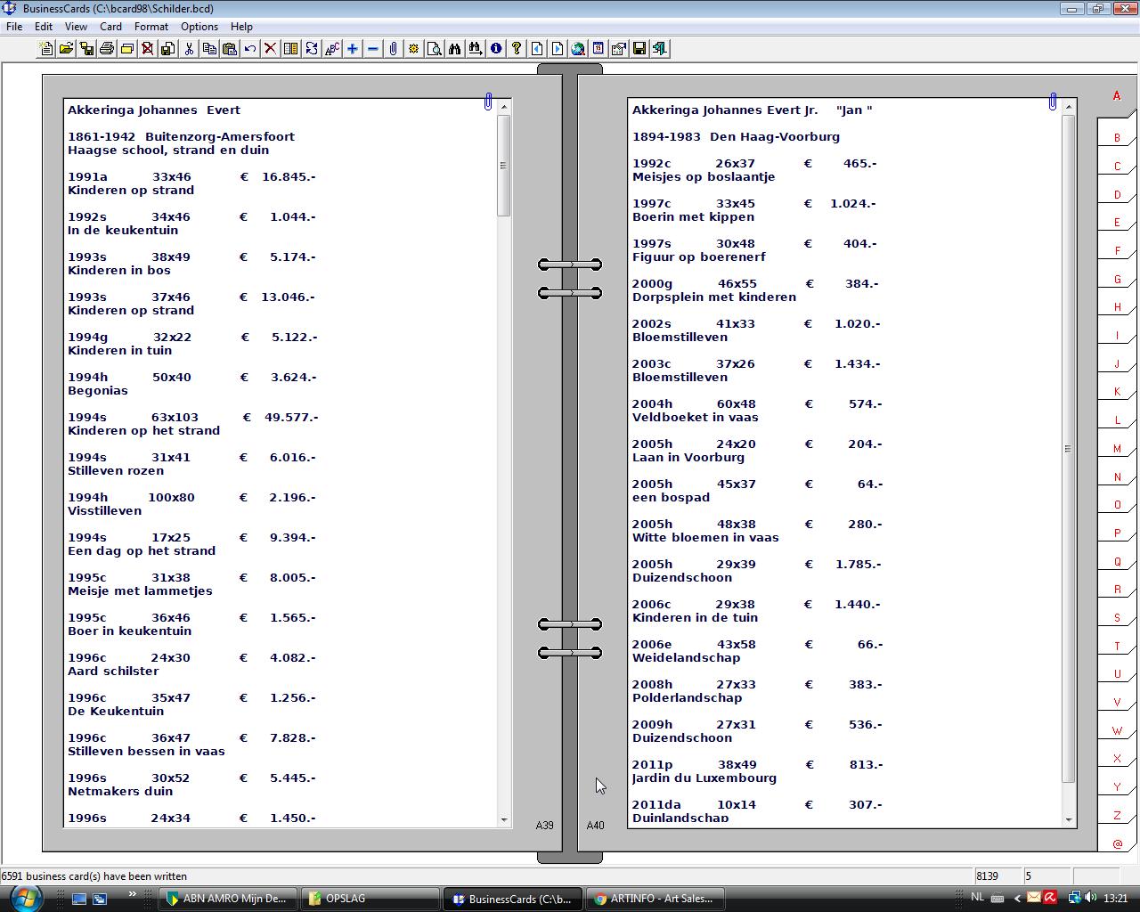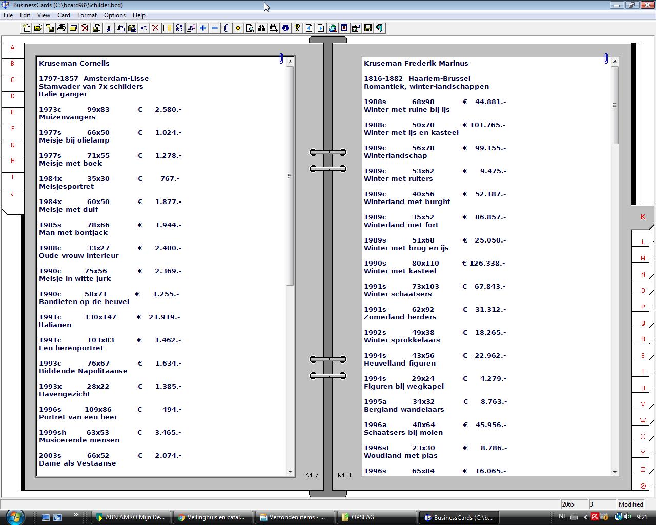 Informatie en WAARDE van alle Nederlandse schilders (19de, 20ste en 21ste  eeuw) met 25 jaar Veilingopbrengsten van 30 Veilinghuizen in Nederland. Op CD-rom of op USB-stick voor € 50.--