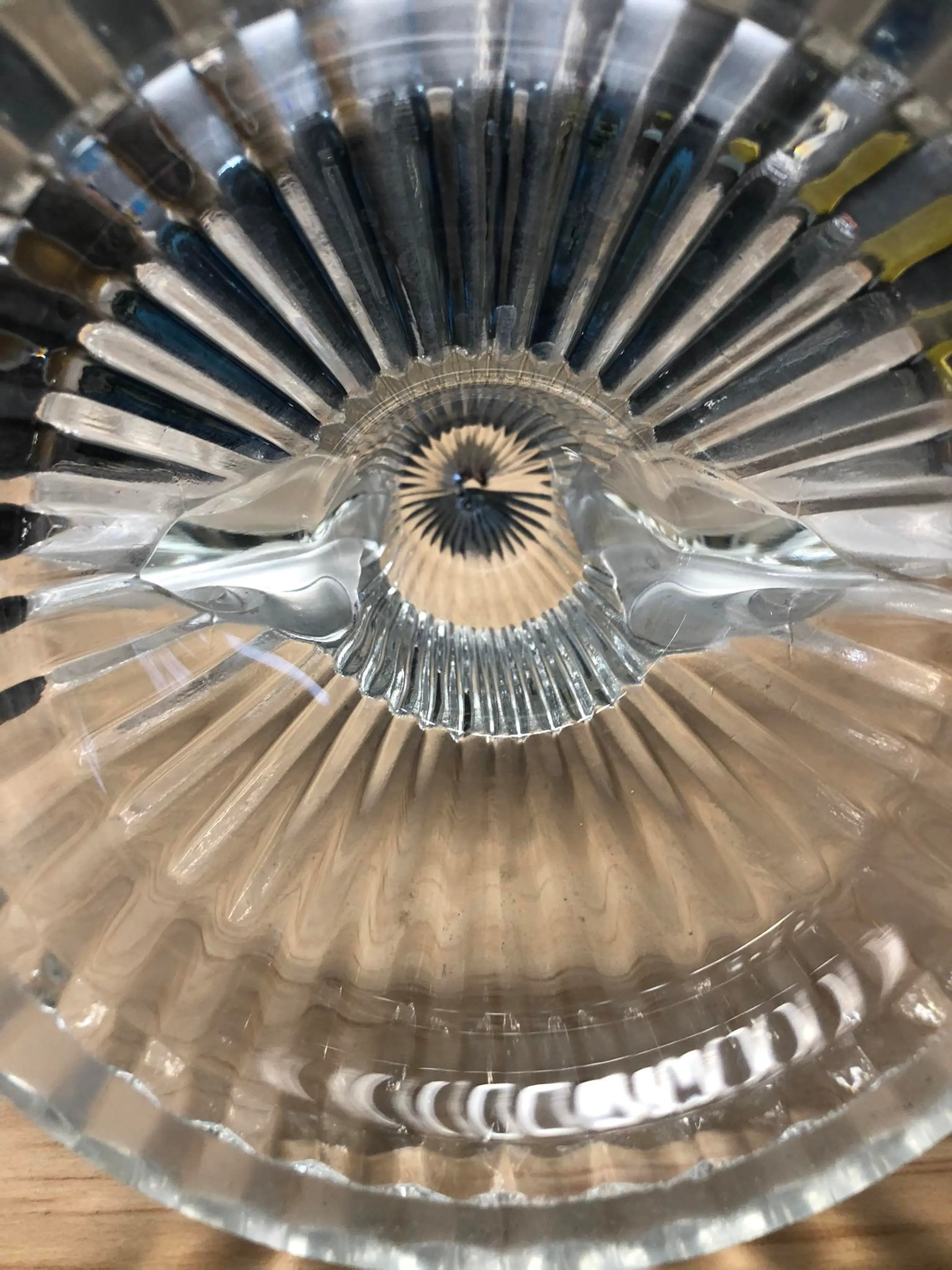 Middenstuk in pyramidevorm helder kristal en middenstuk armen mat gepolierd.