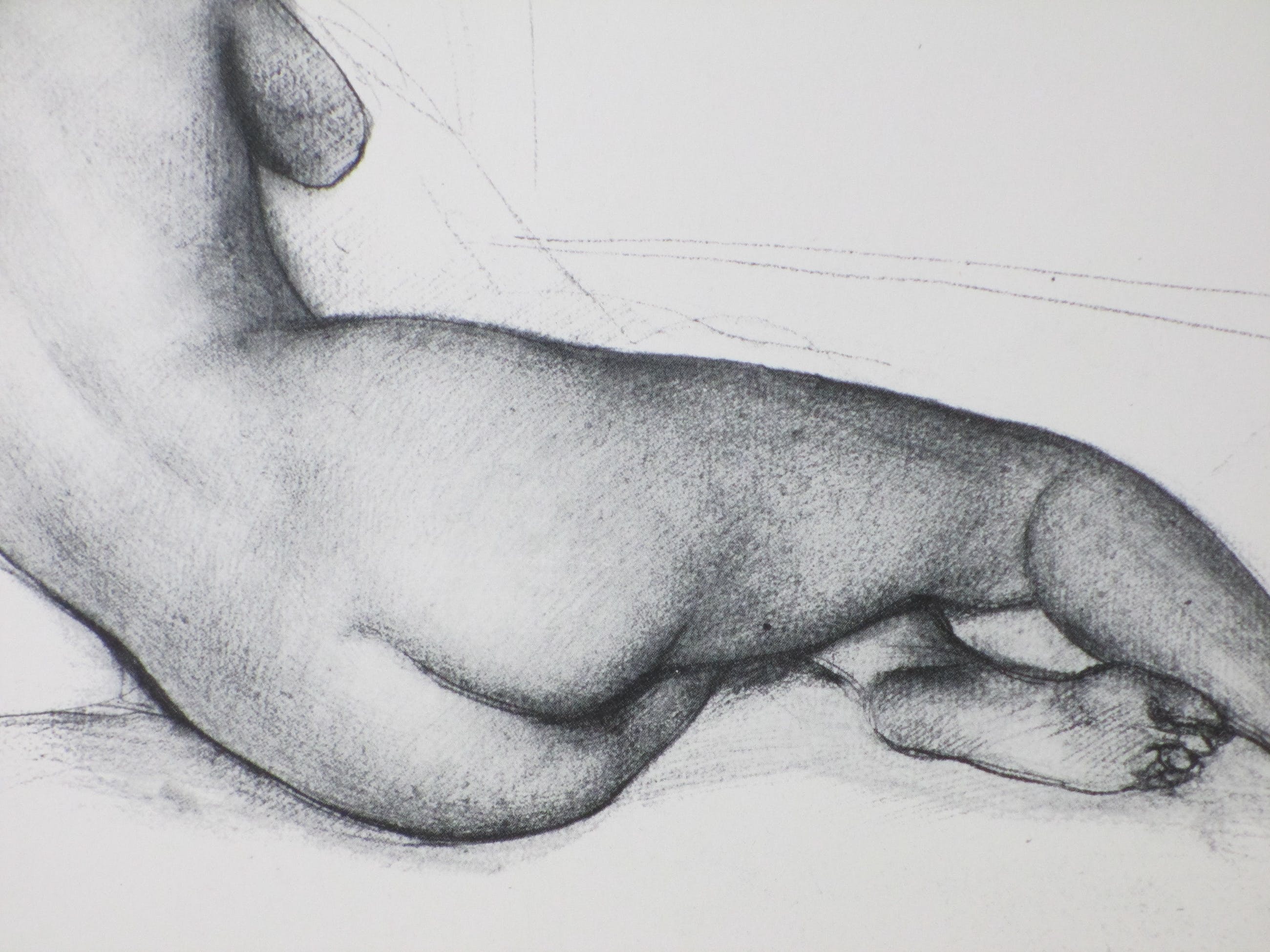 Litho van een liggend naakt. Voor mij onbekende kunstenaar.