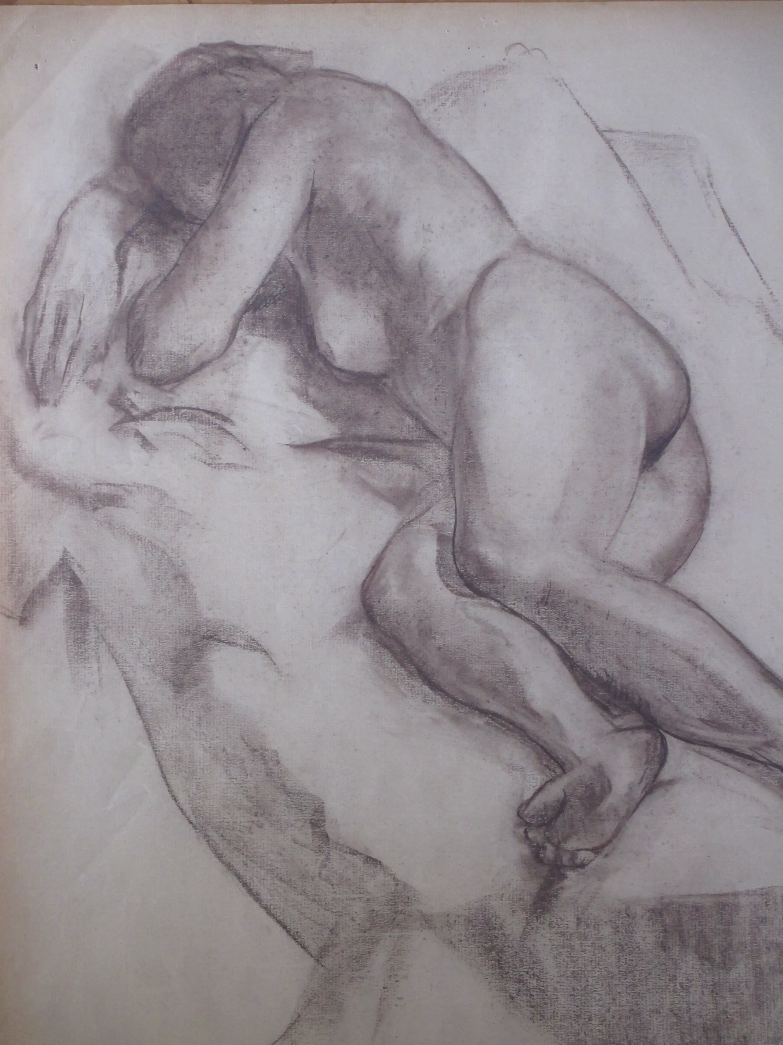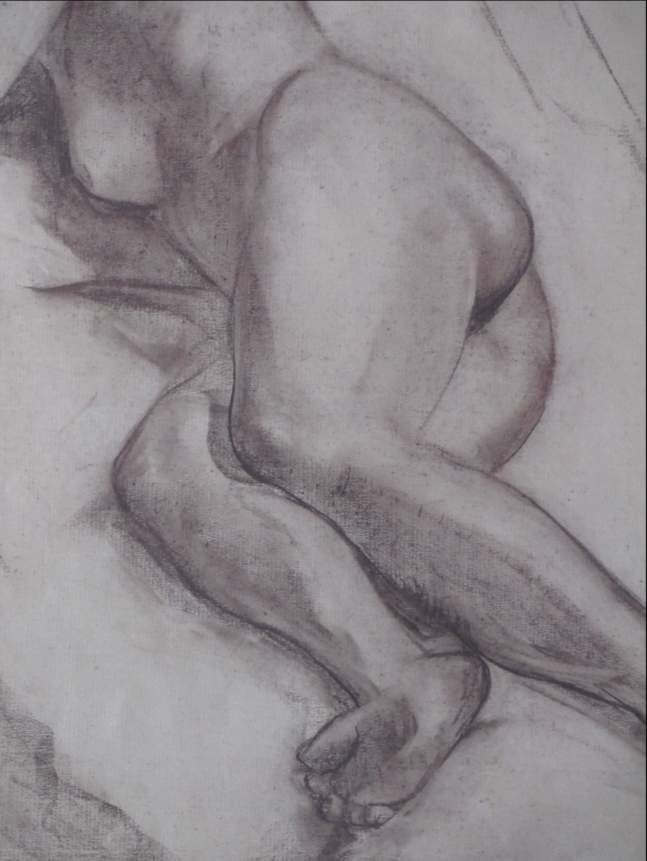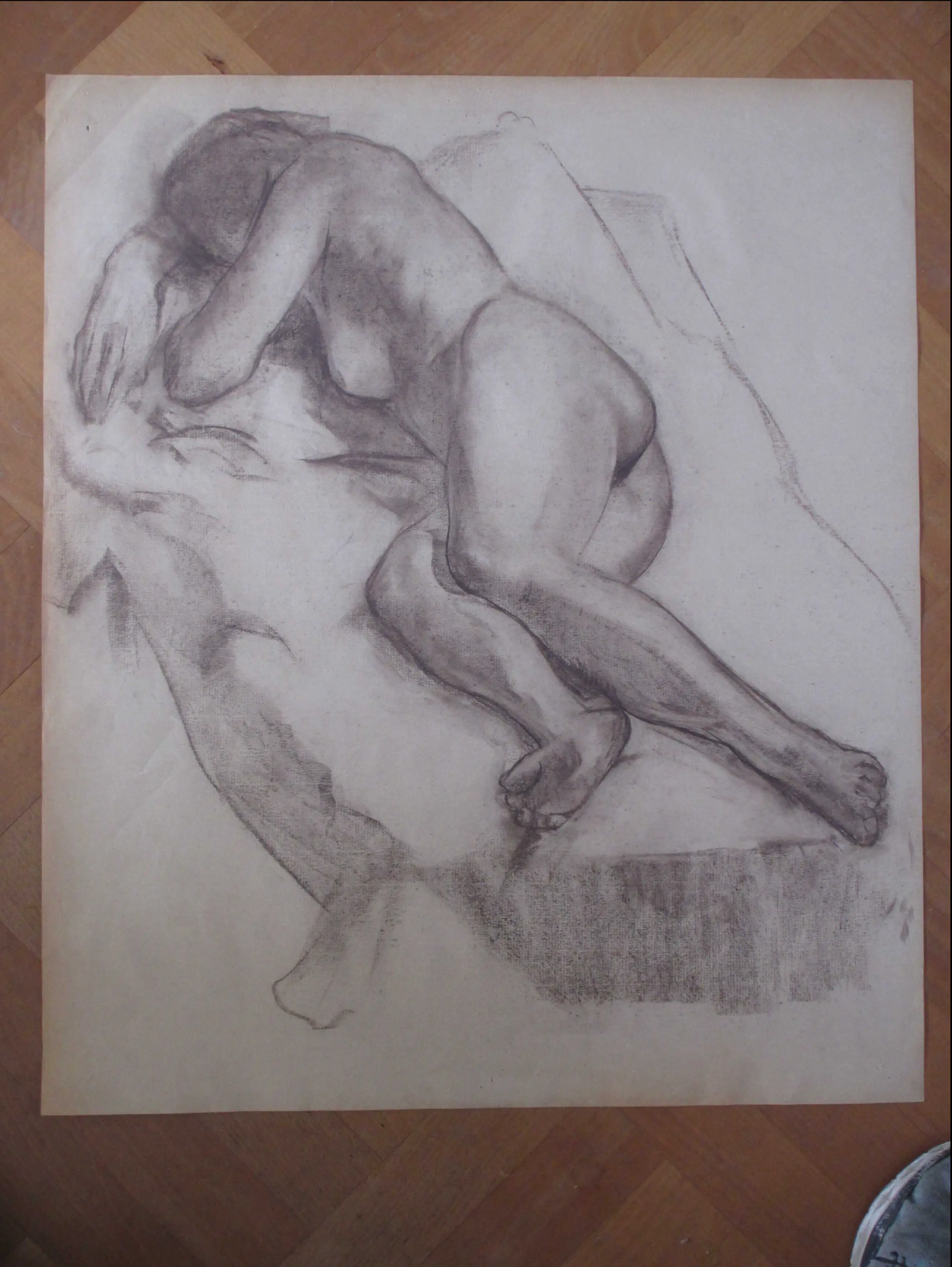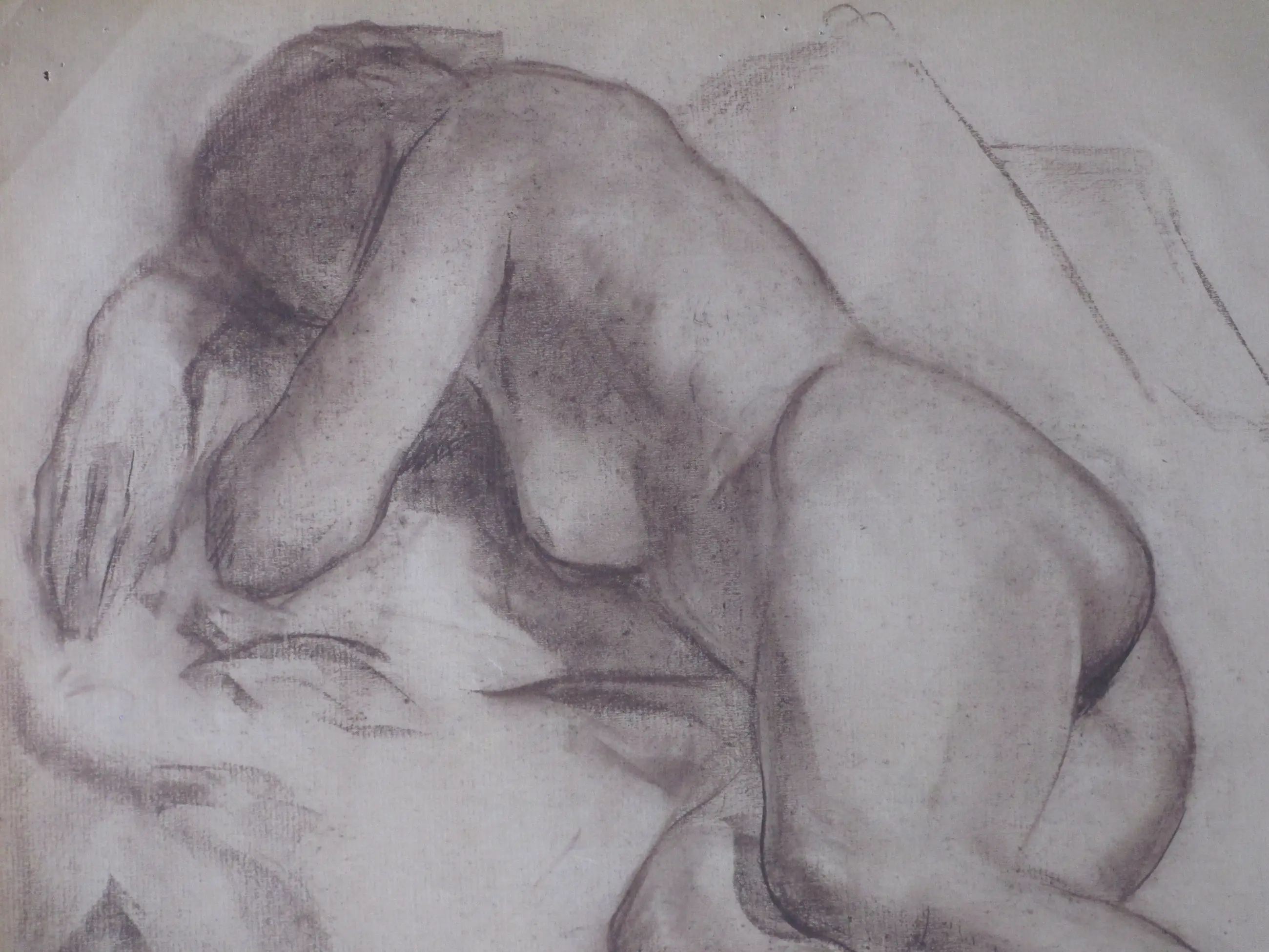 Academisch werk van een liggend naakt Goed getroffen, juiste anatomische verhoudingen Niet gesigneerd, doet denken aan vroeg 20e eeuwse schilders als Isaac Israels