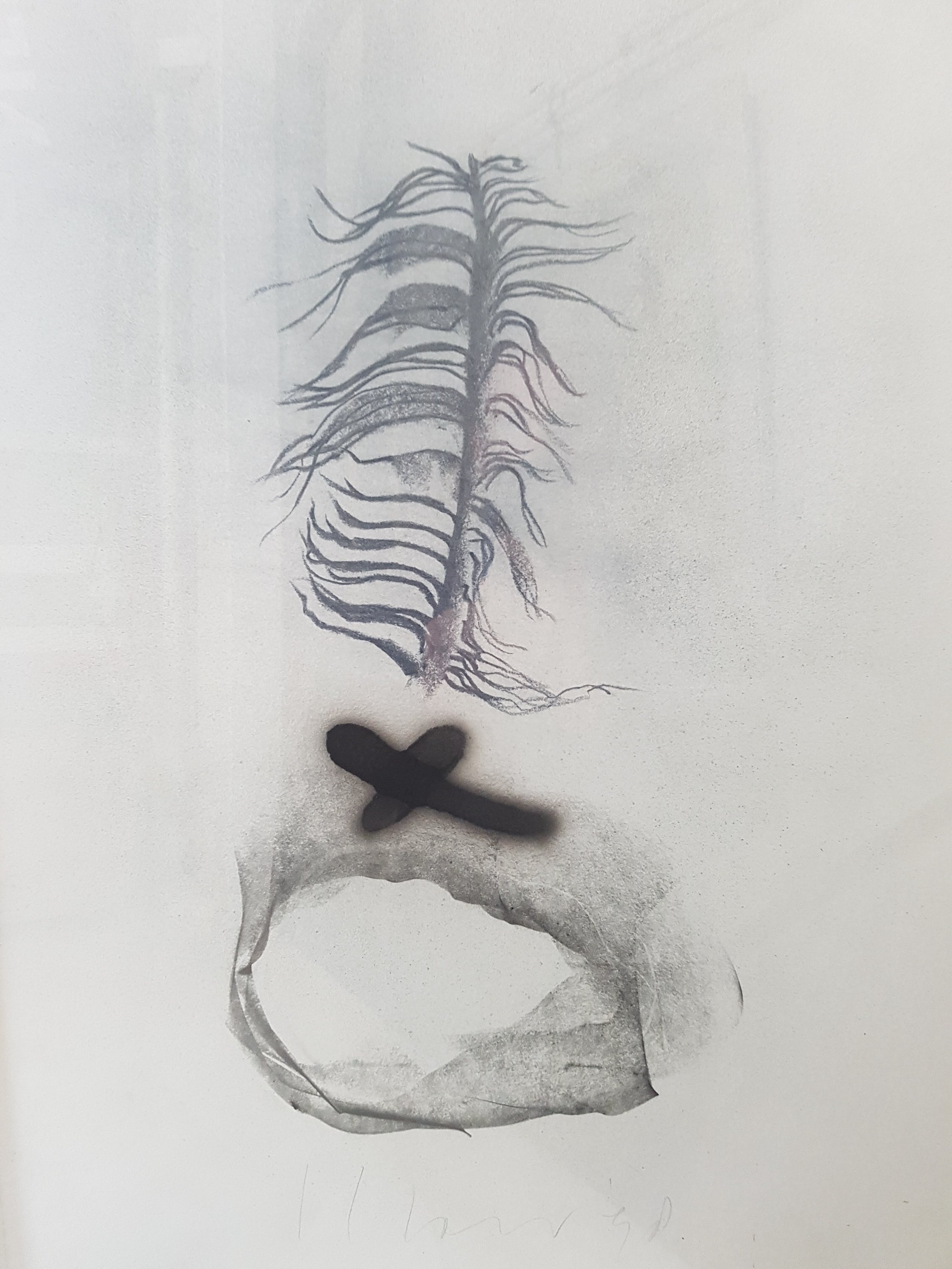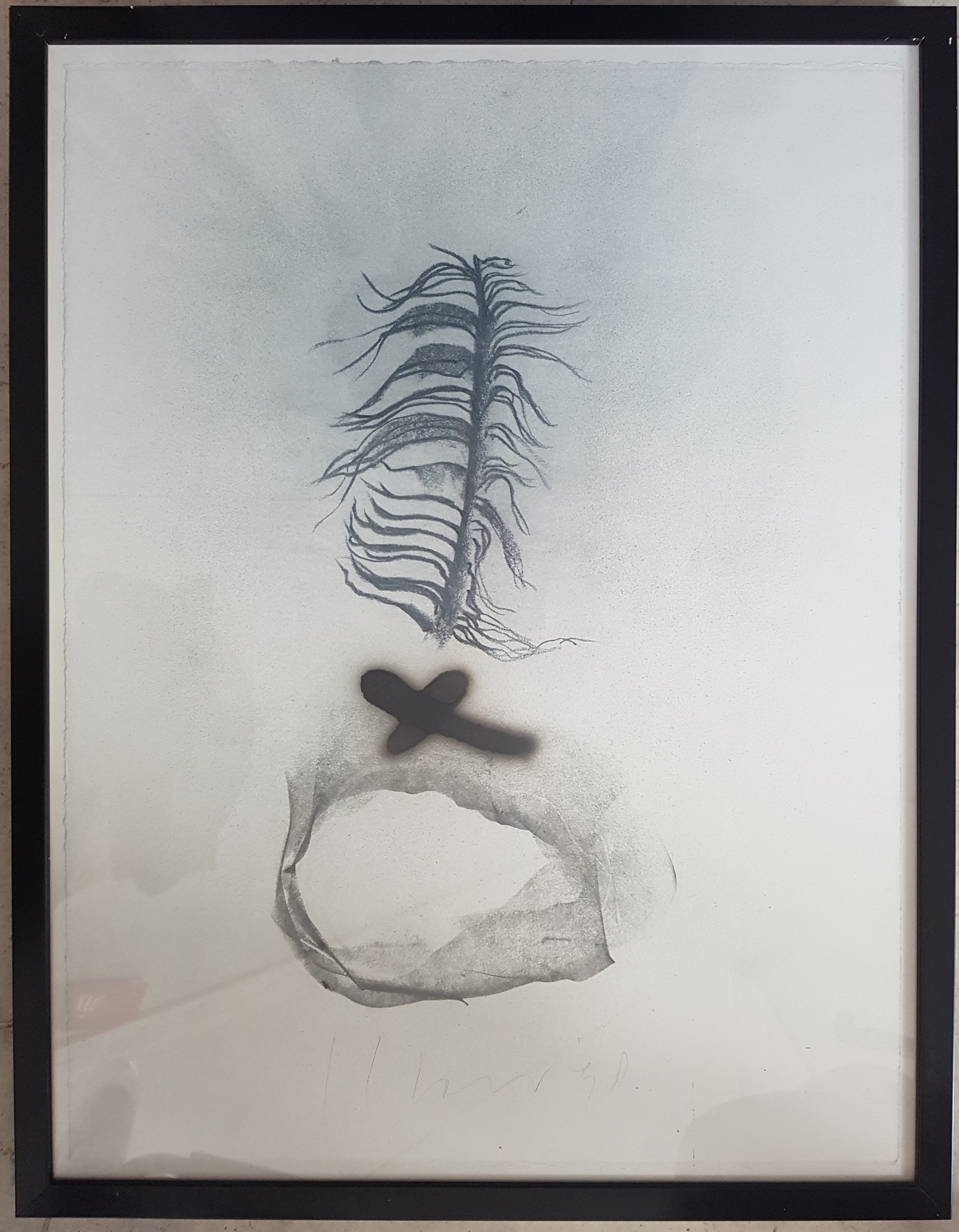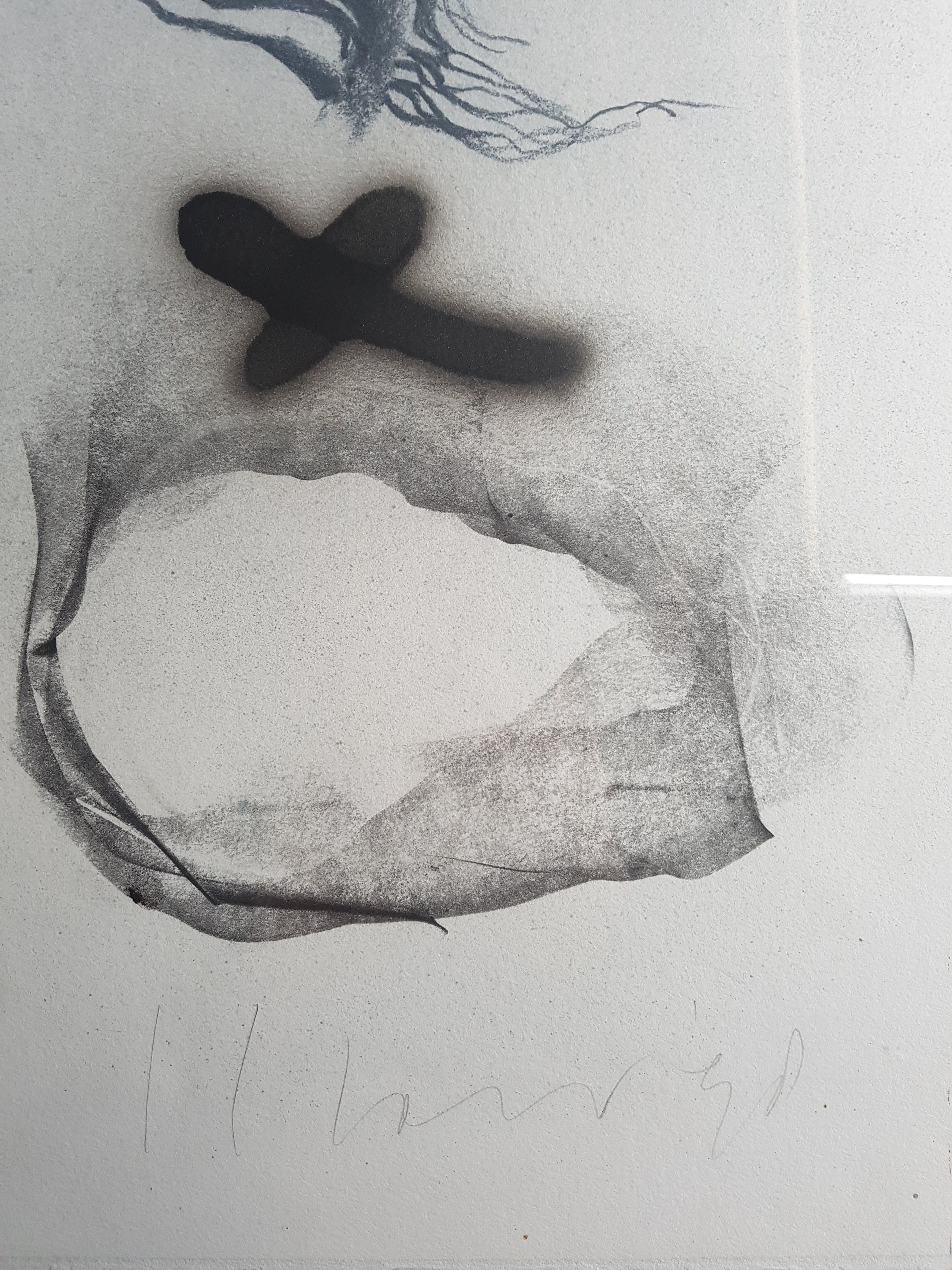 Modern werk Litho met potlood gesigneerd 1998 In zwarte lijst