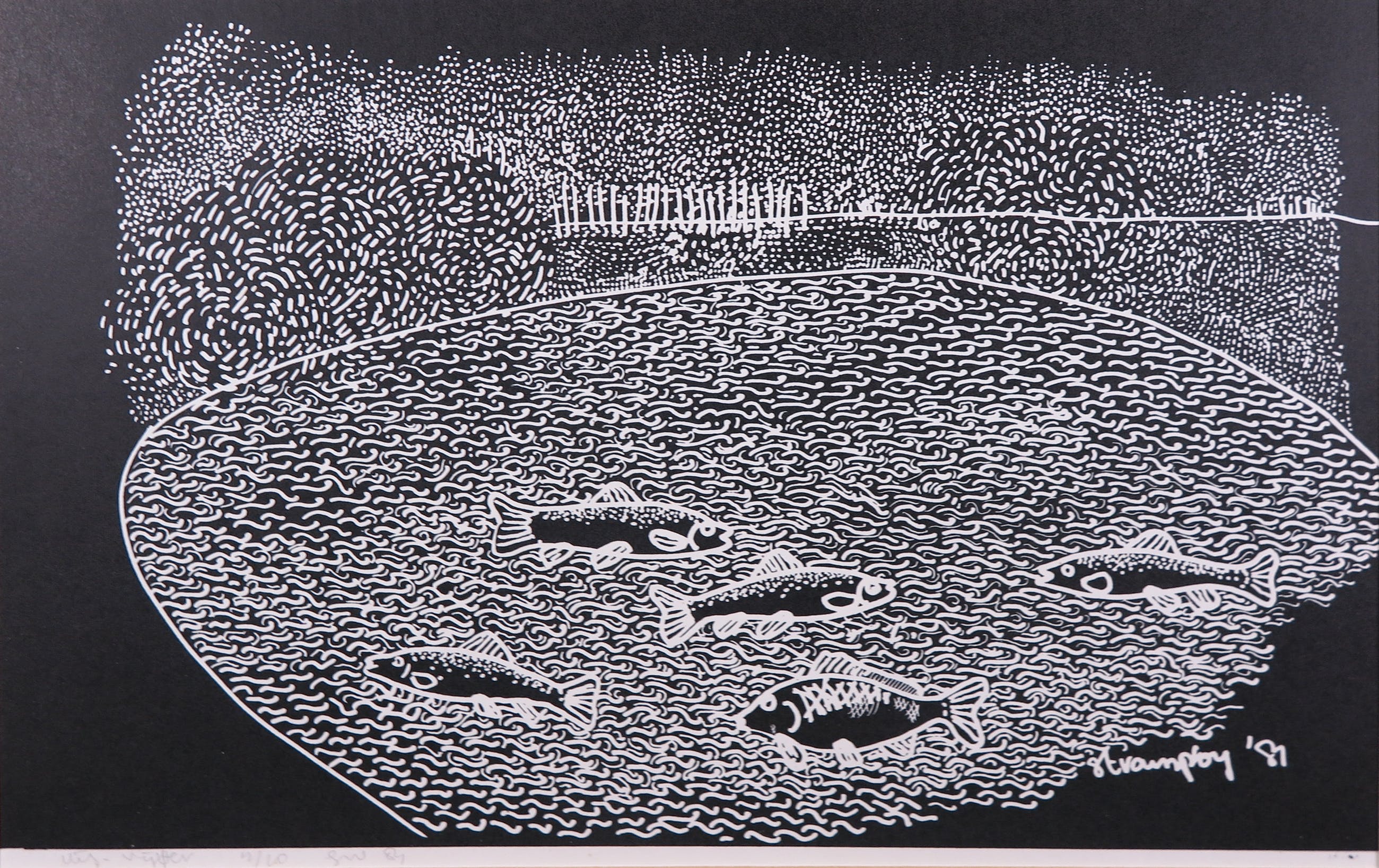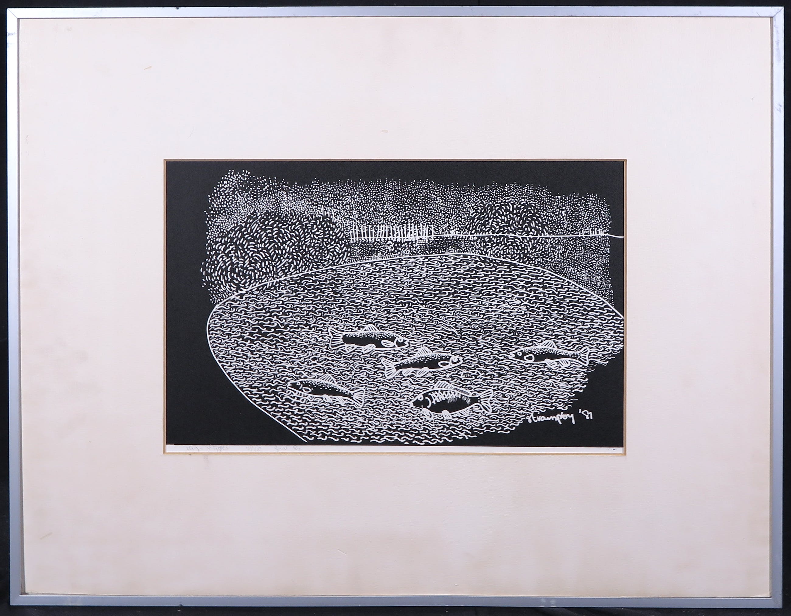 Onbekend - Litho, Vis Vijver - Ingelijst - Verkocht
