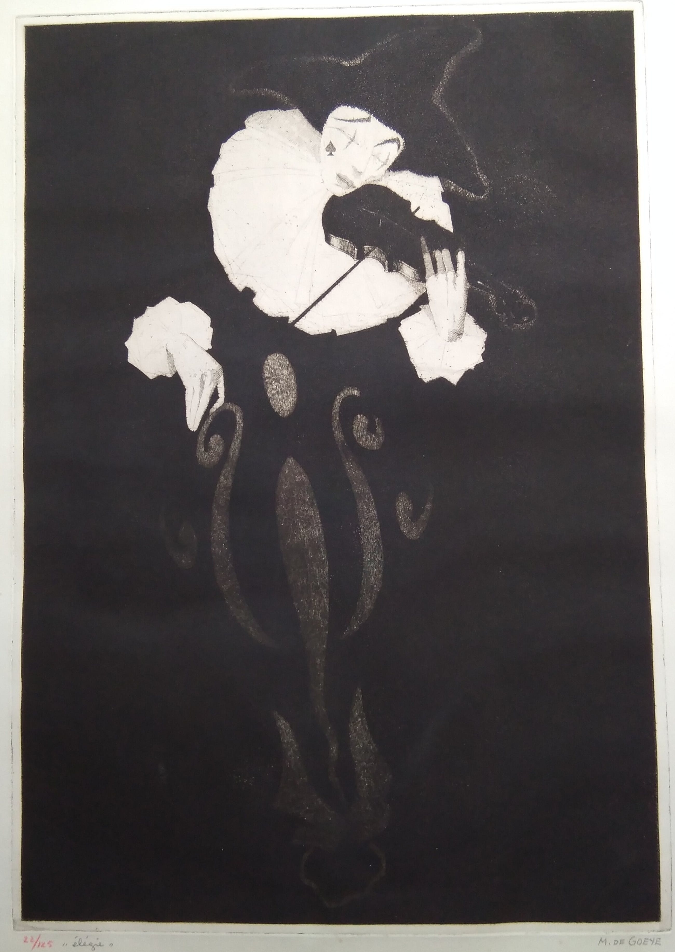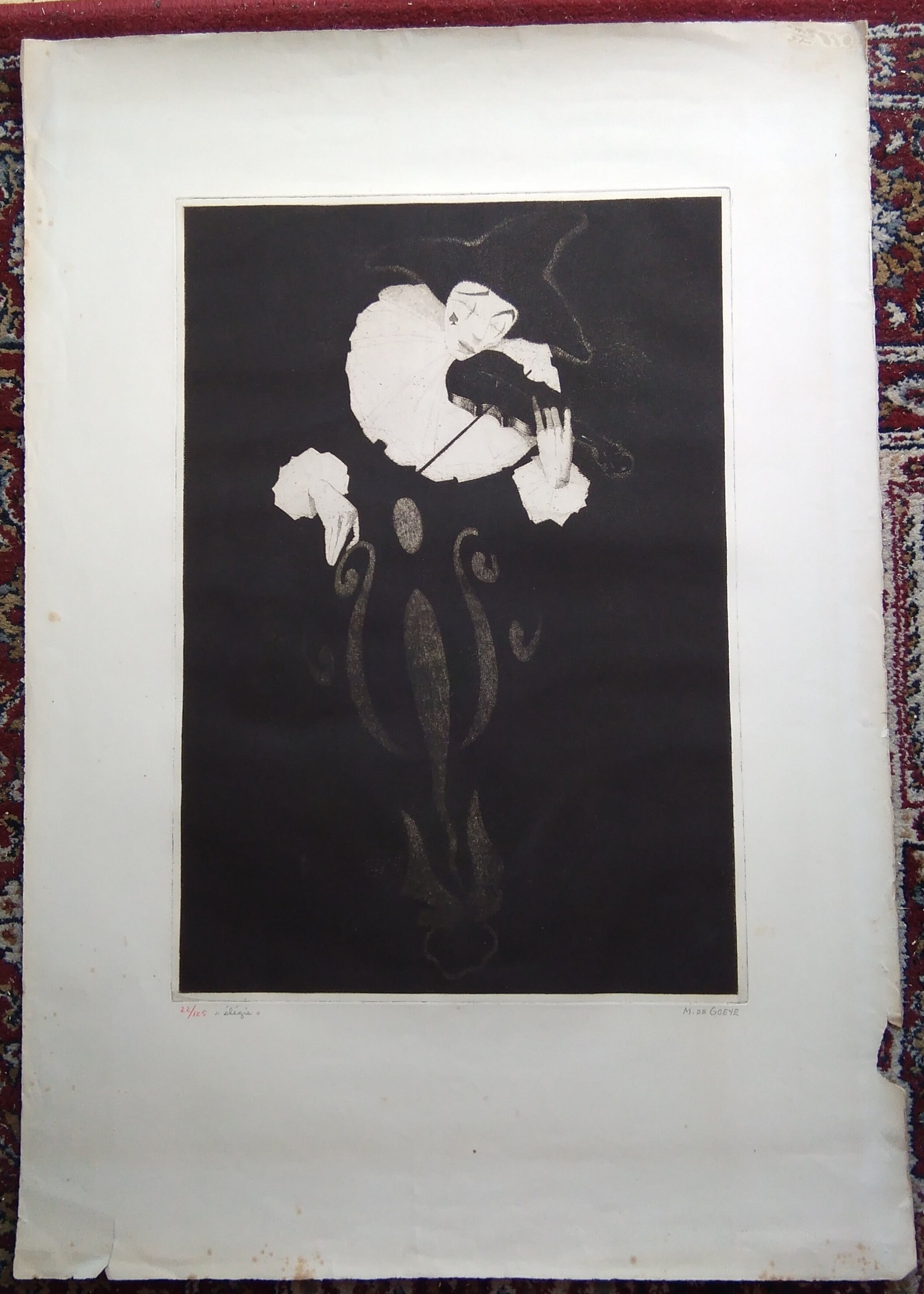 Onbekende kunstenaar Lithografie Pierrot.Oplage 125.Diverse ouderdomsverschijnselen.Gesigneerd r. o.