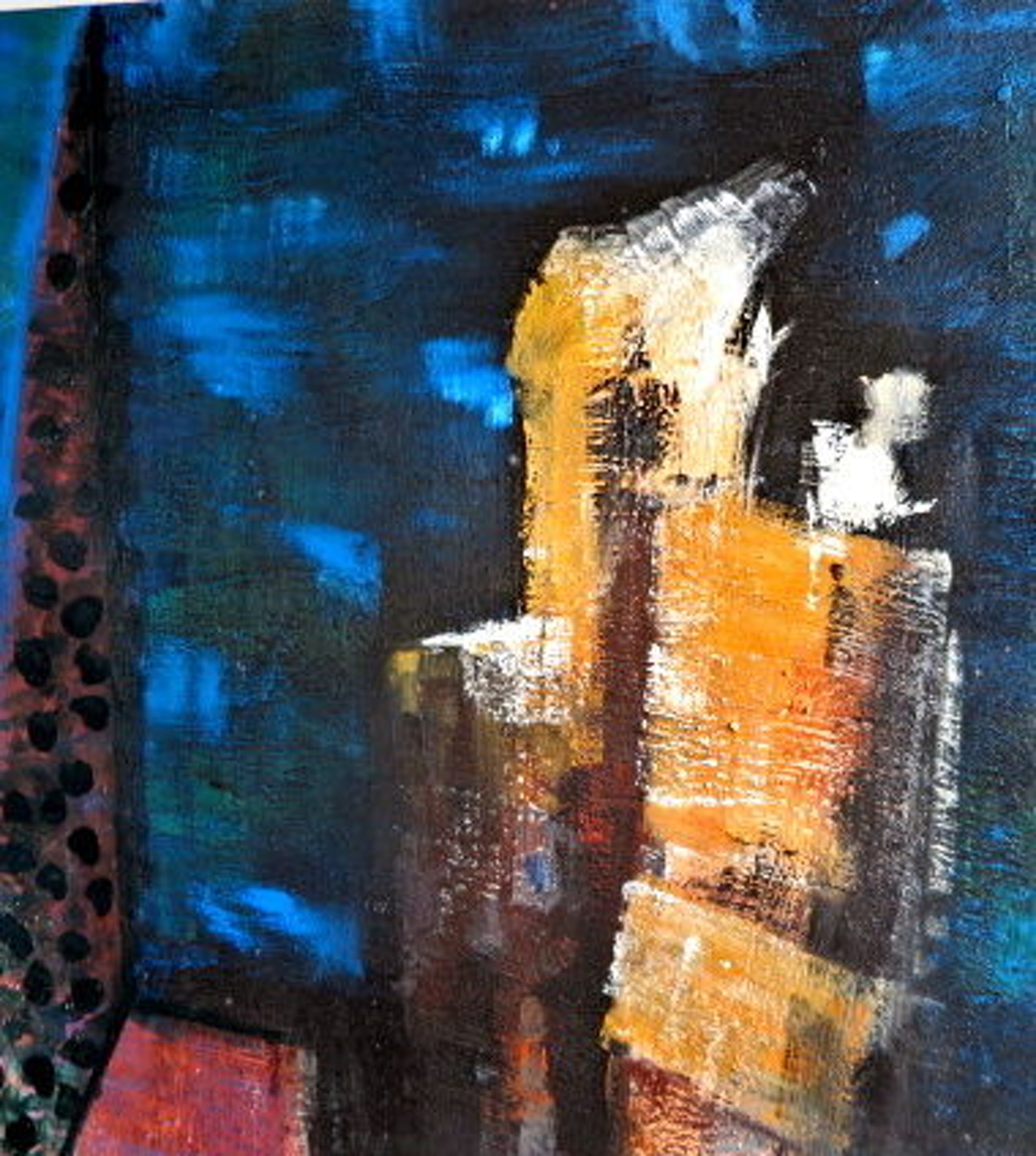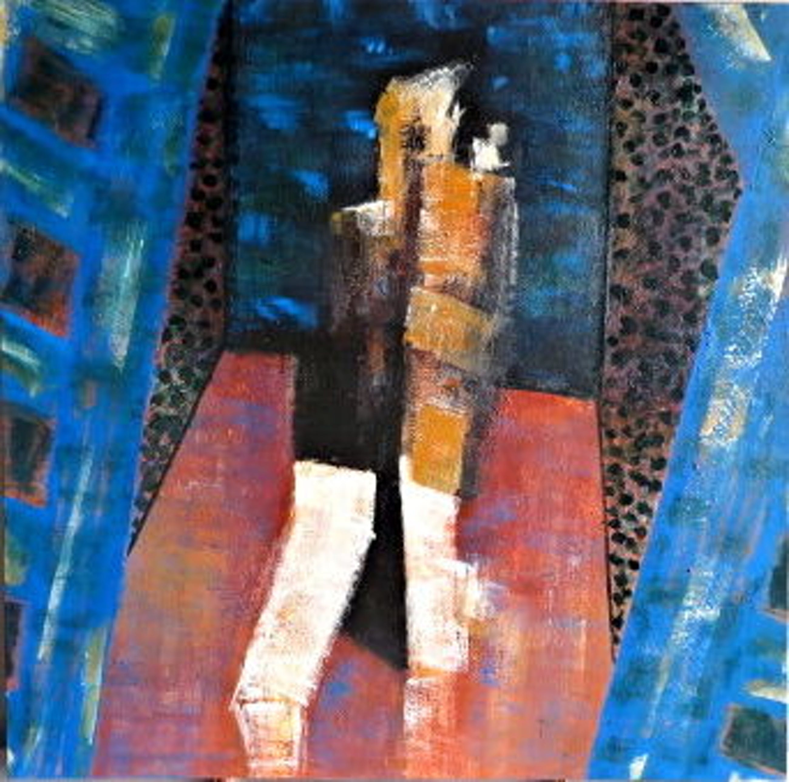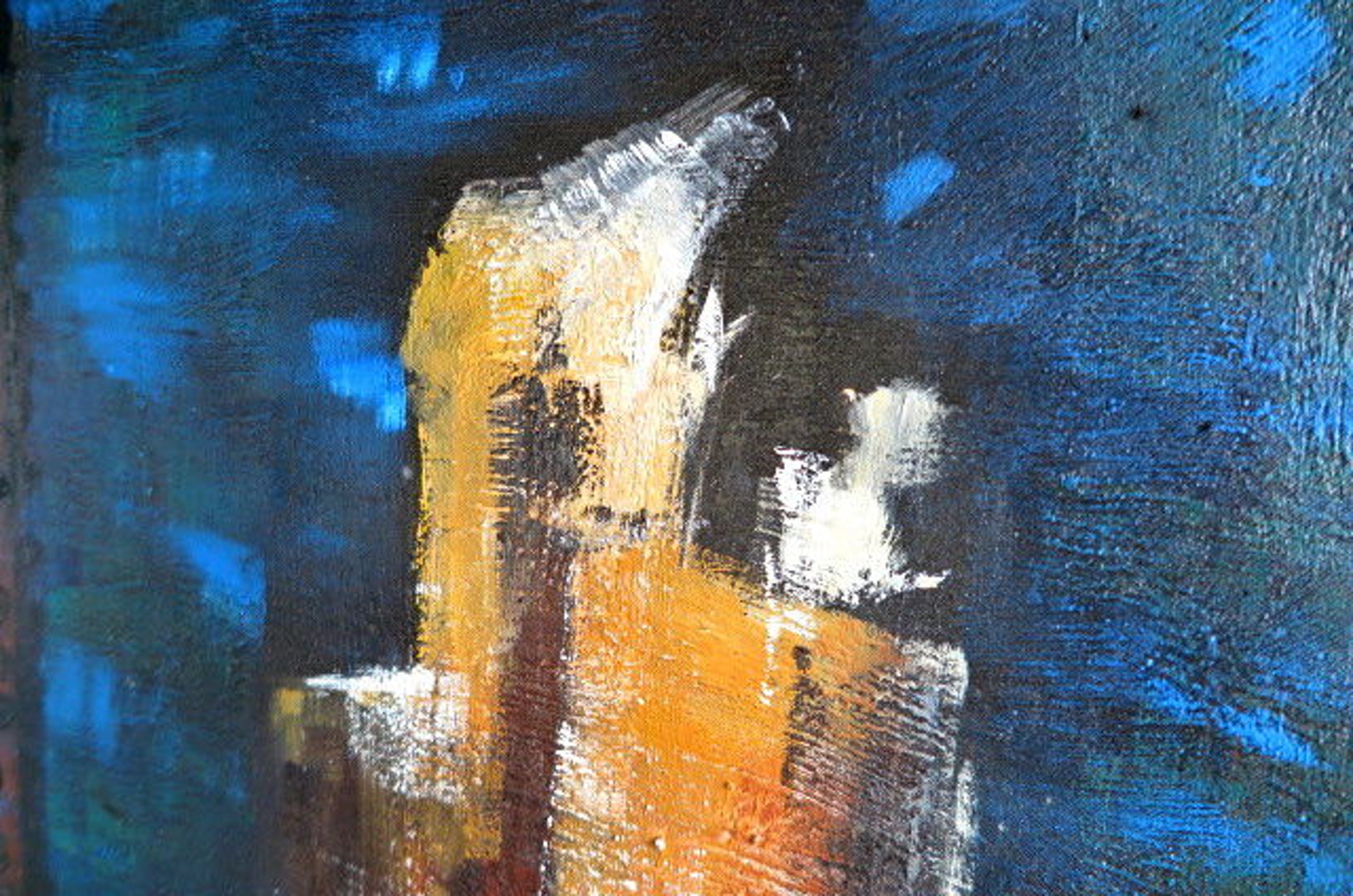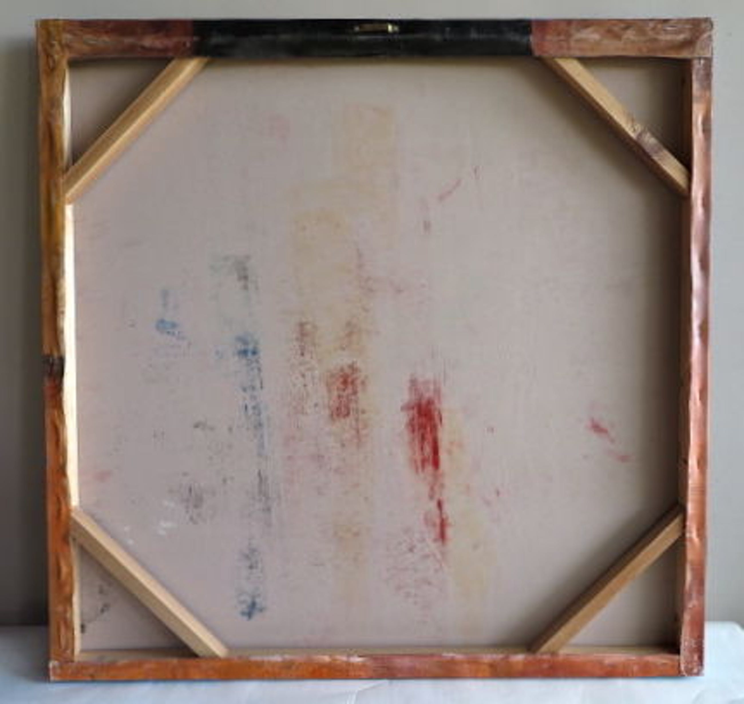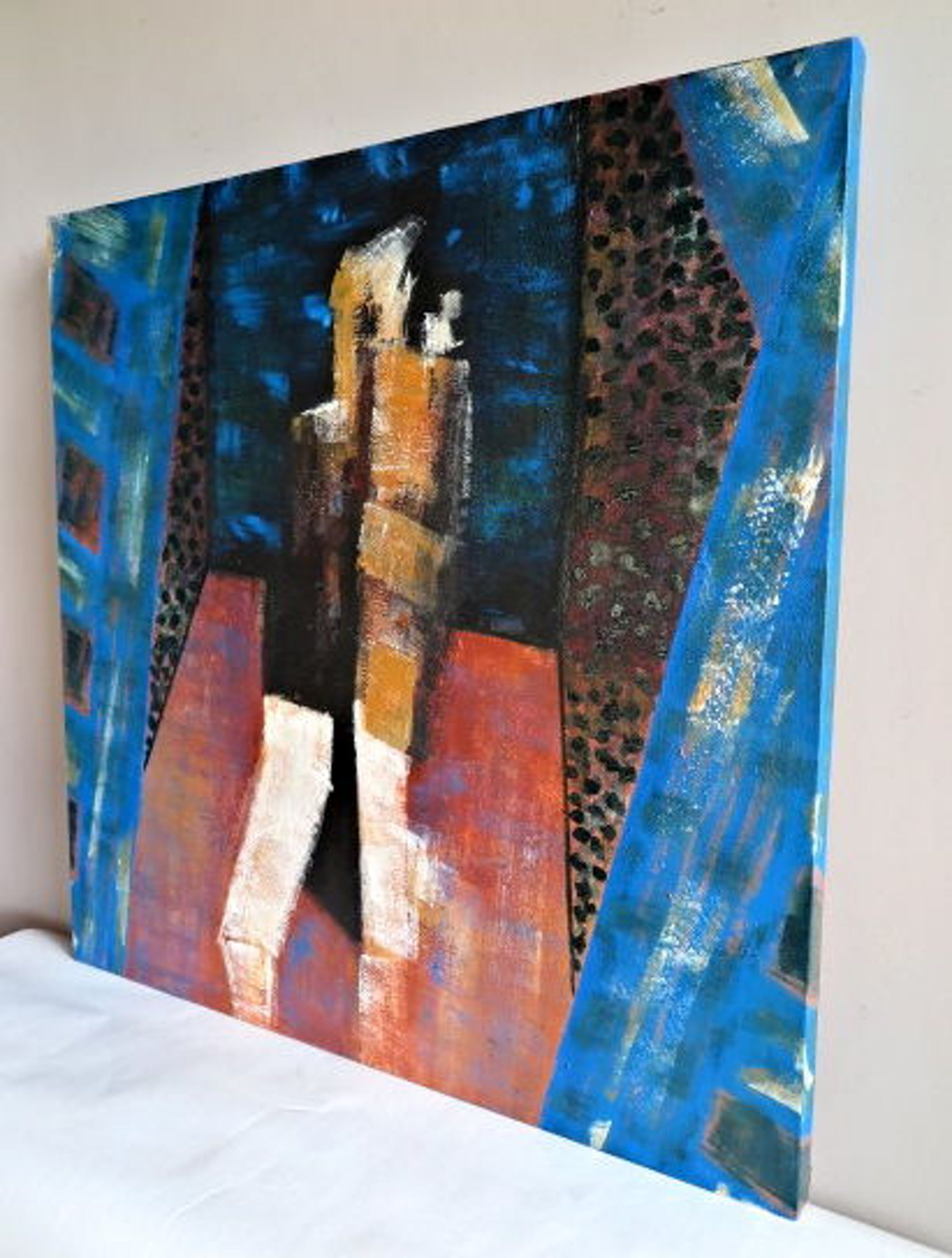 Mooi figuratief-abstract werk, afmetingen 100 x 100 x 3,5 cm. In uitstekende gave conditie
