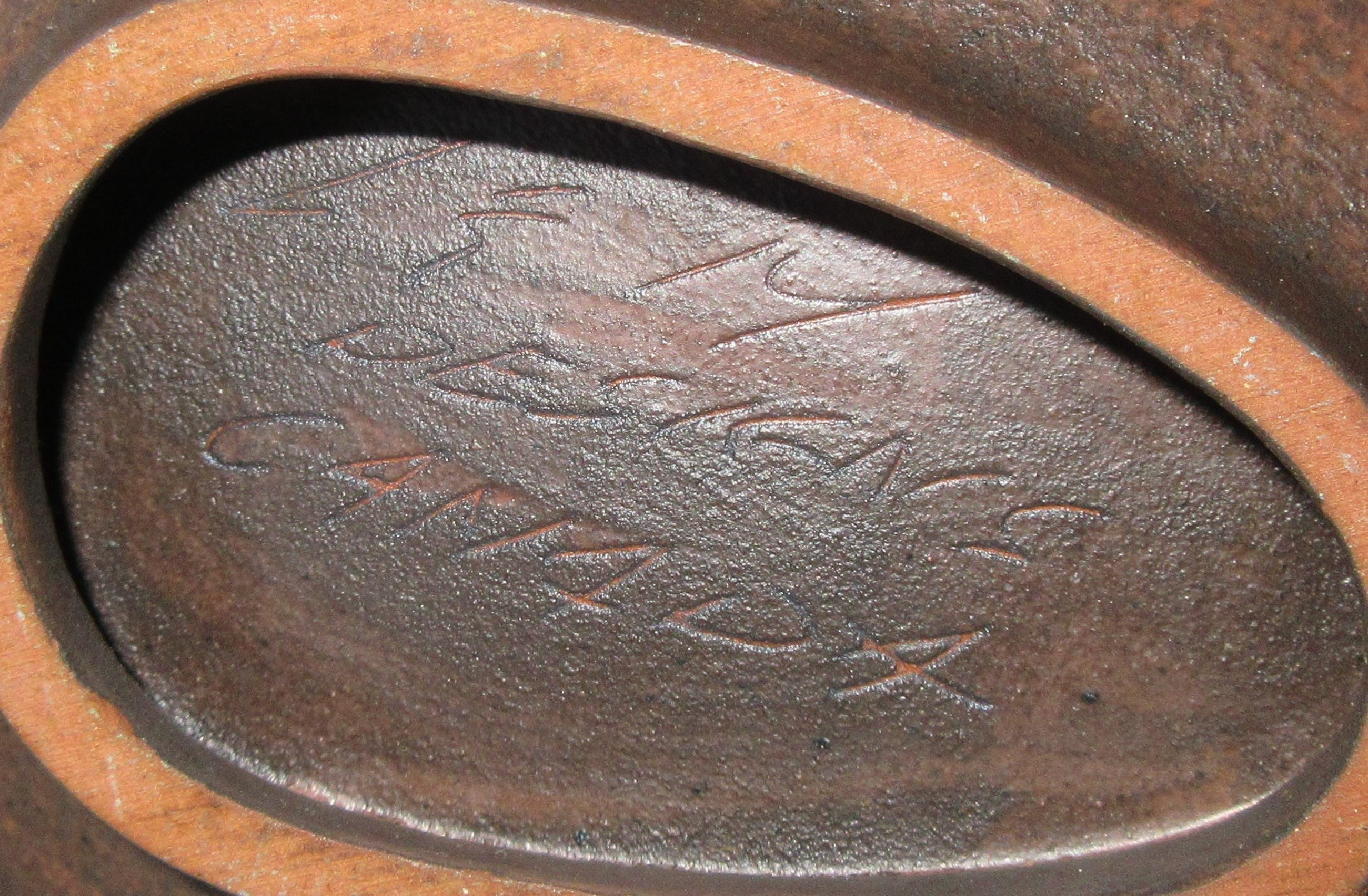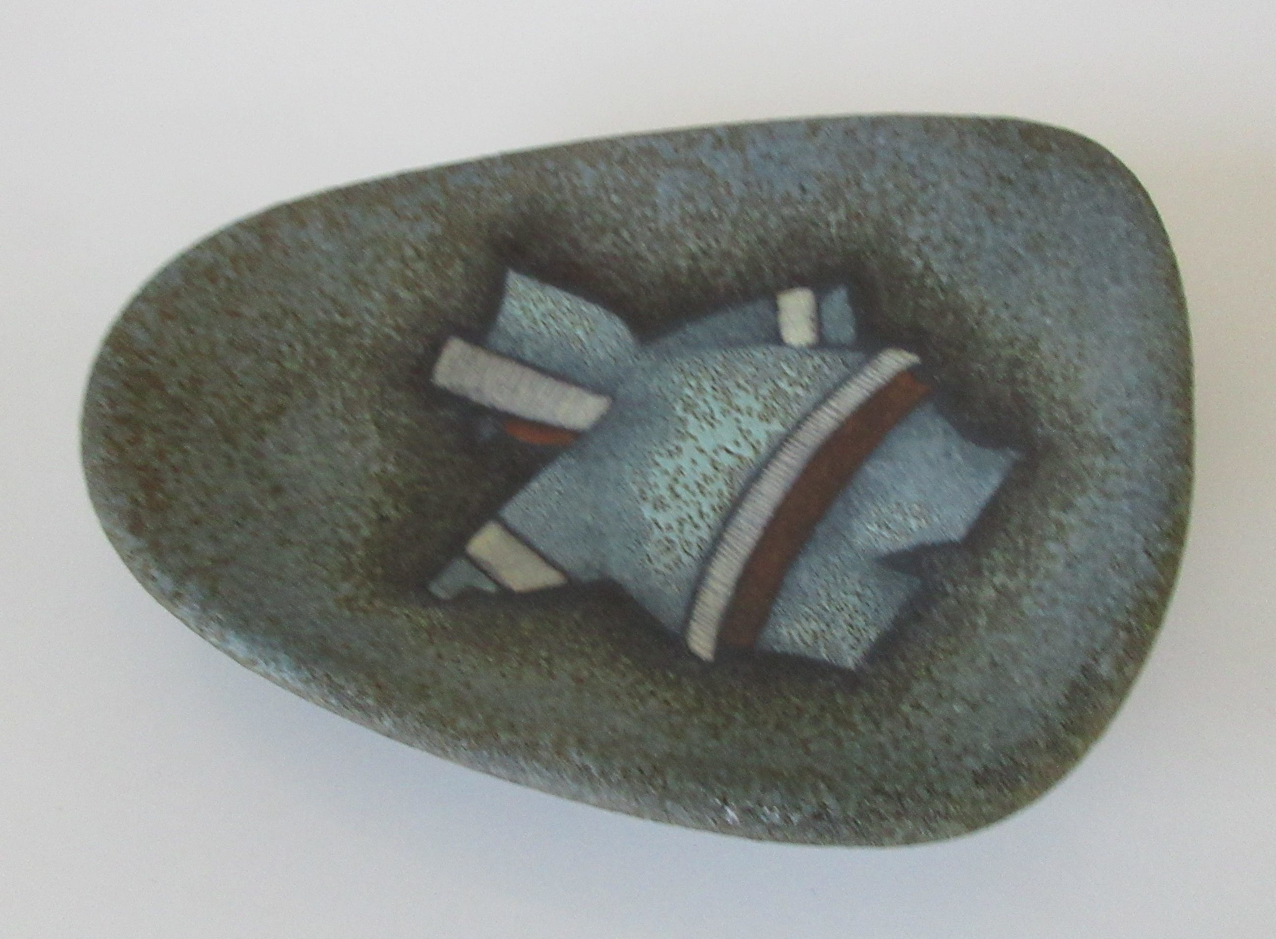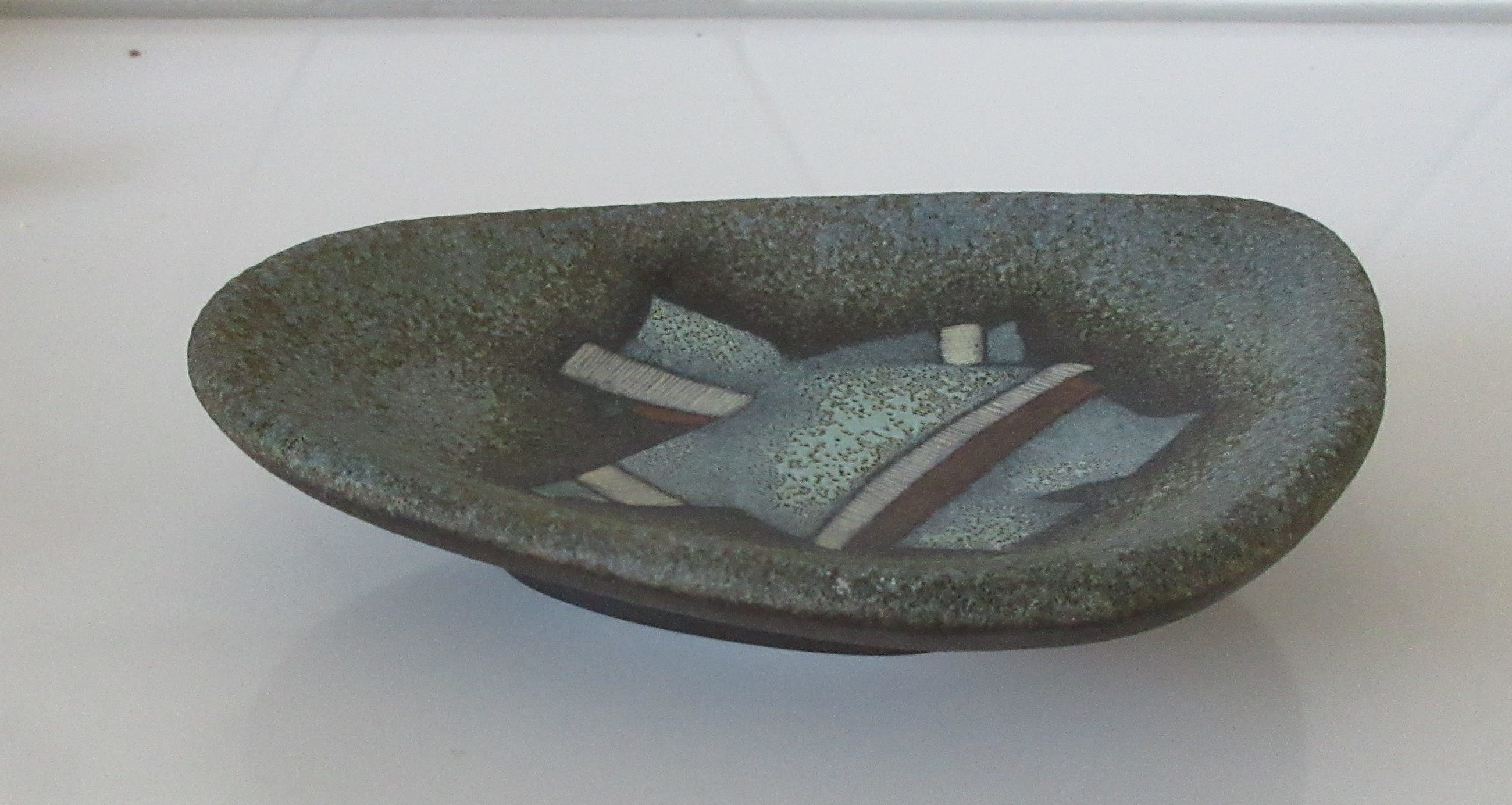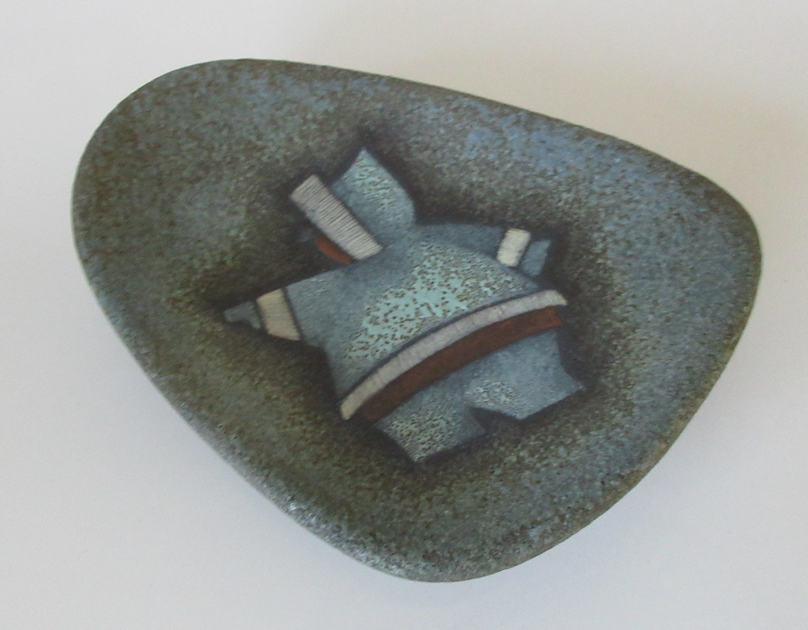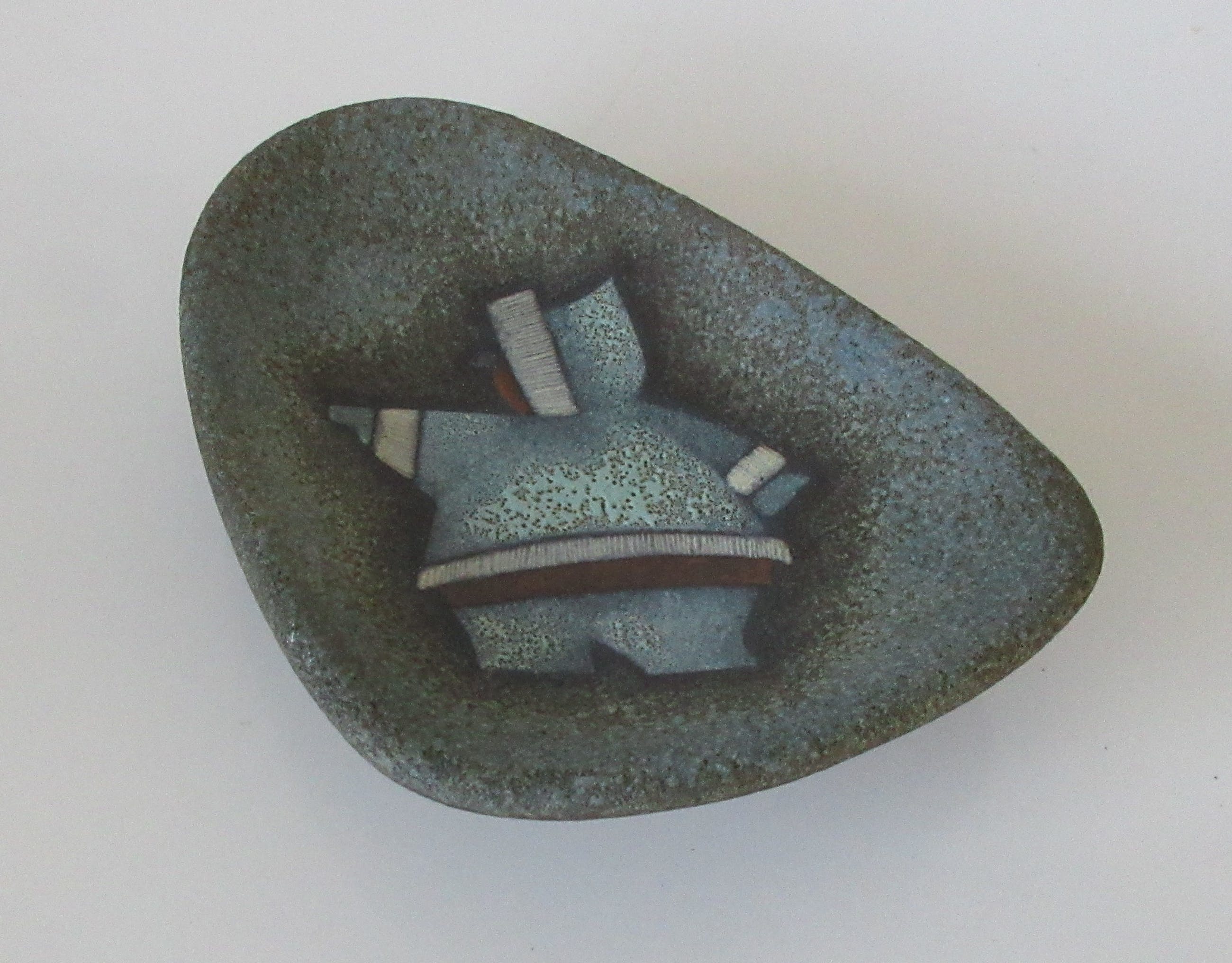L&M Designs Canada Studio aardewerken asbak met de afbeelding van een Inuit op de voorzijde. L&M staat voor Luba en Mile Linhart emigranten van uit Tsjechoslowakijke naar Canada die in Lindsay en Gelert Ontario een Potterie opzette. Aan de onderzijde gesigneerd en voorzien van een merksticker.