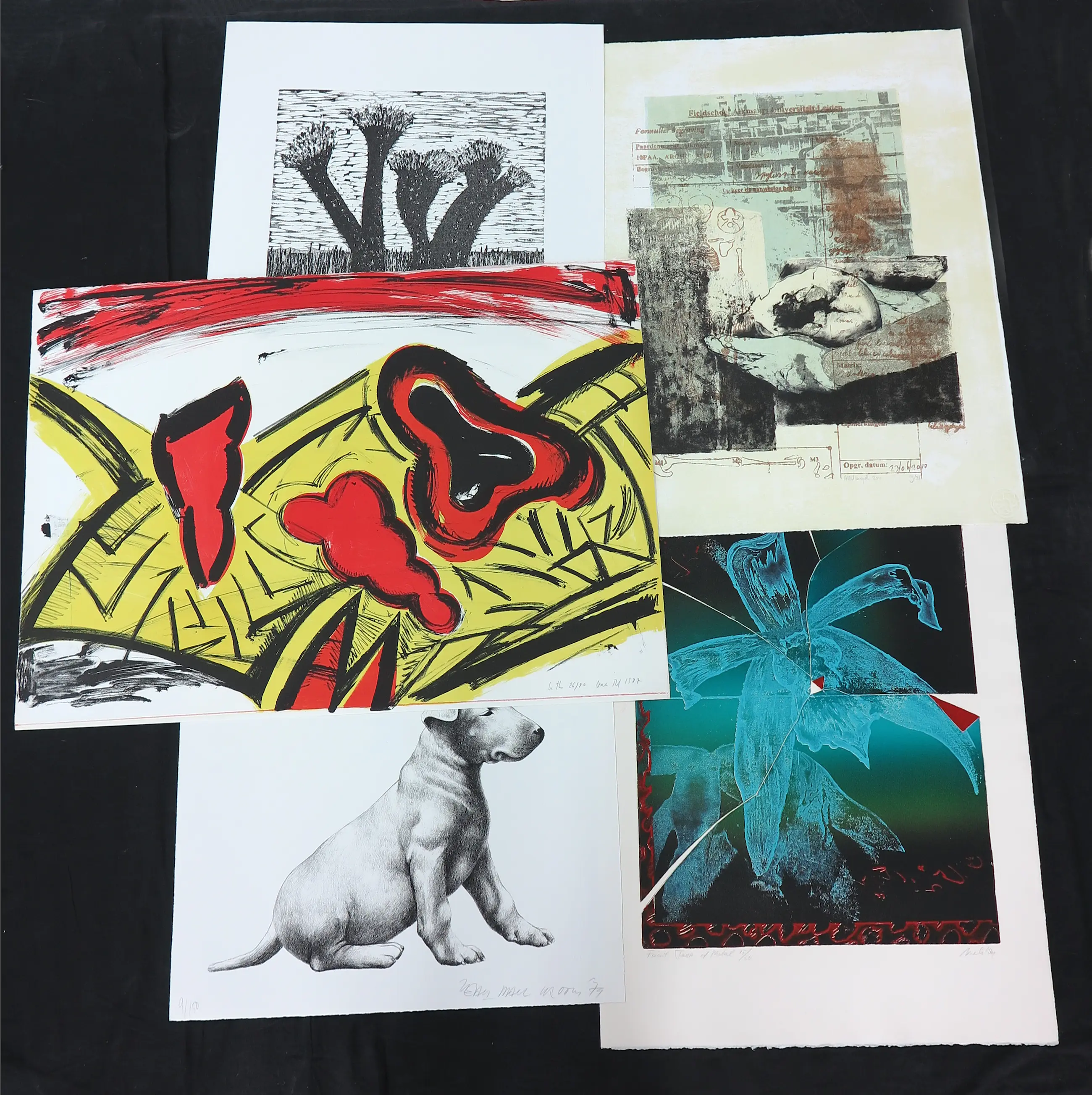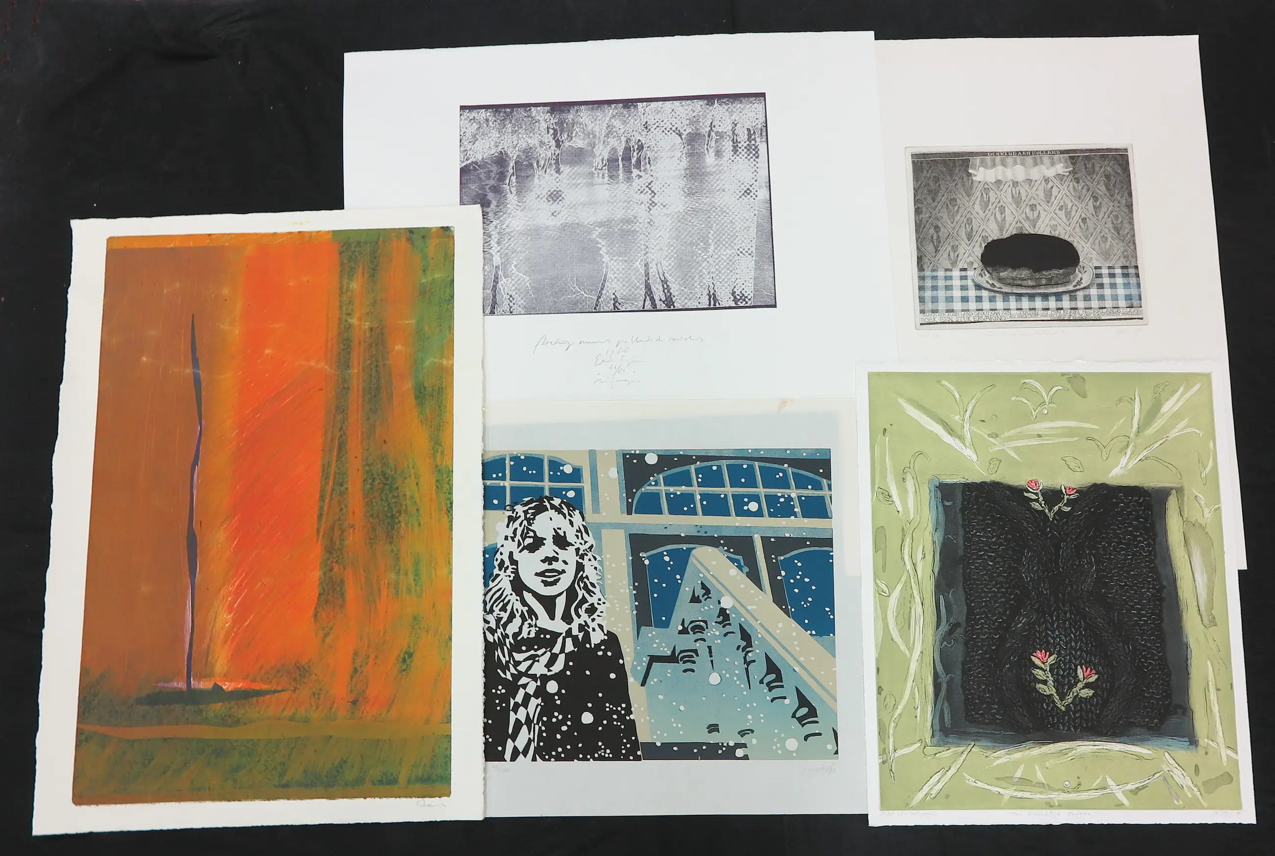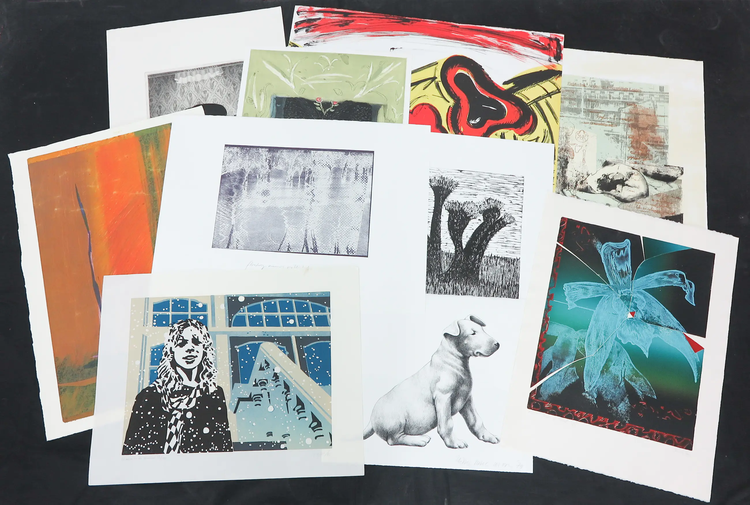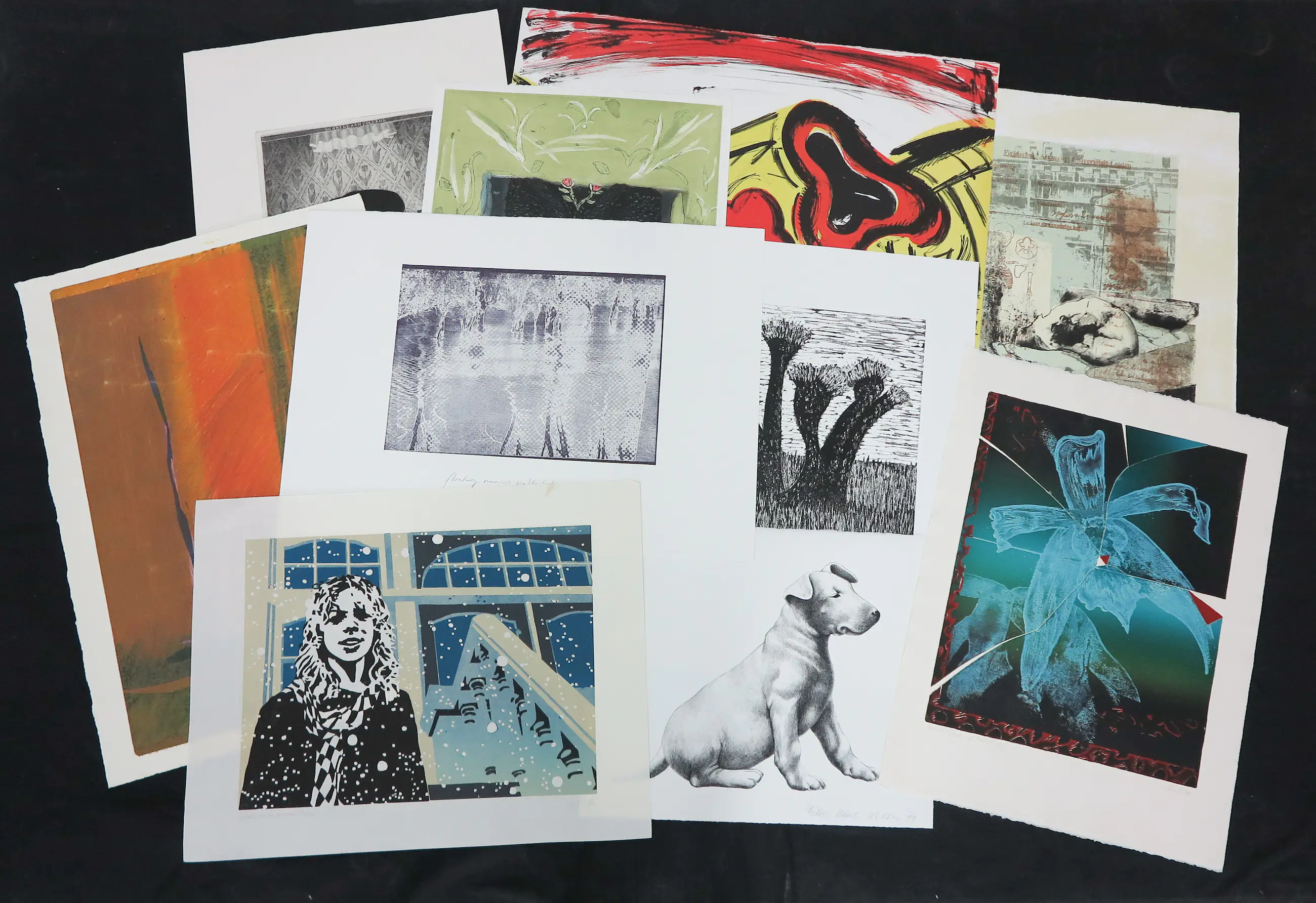 Voor de liefhebber om verder uit te zoeken!!! Lot van 10 losse werken op papier (verschillende technieken; litho's, zeefdruk, linosnede) gemaakt door verschillende (deels voor ons onbekende?) kunstenaars.