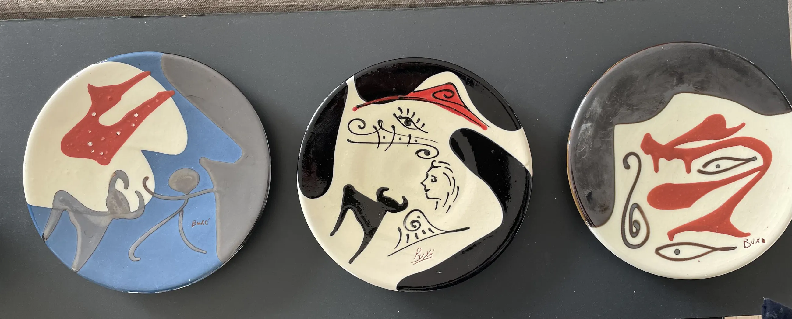 Lot van 3 wandborden Buck. . In Picasso stijl, grootte 25 diameter