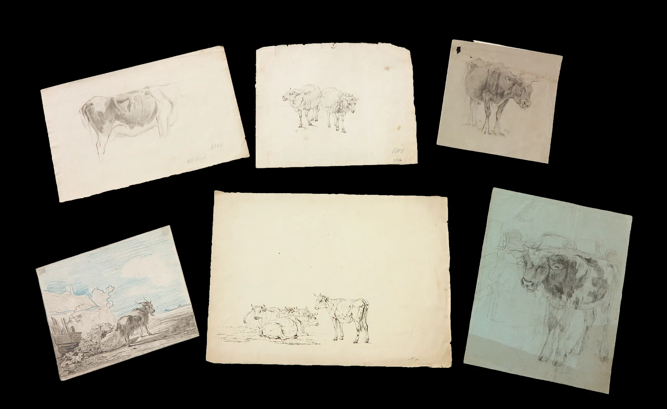 Het betreft een lot met diverse tekeningen van onbekende maker(s). Enkele werken zijn voorzien van watermerken zoals 'Marais' en 'LVG', wat kan wijzen op 19e - of 18e -eeuwse herkomst.