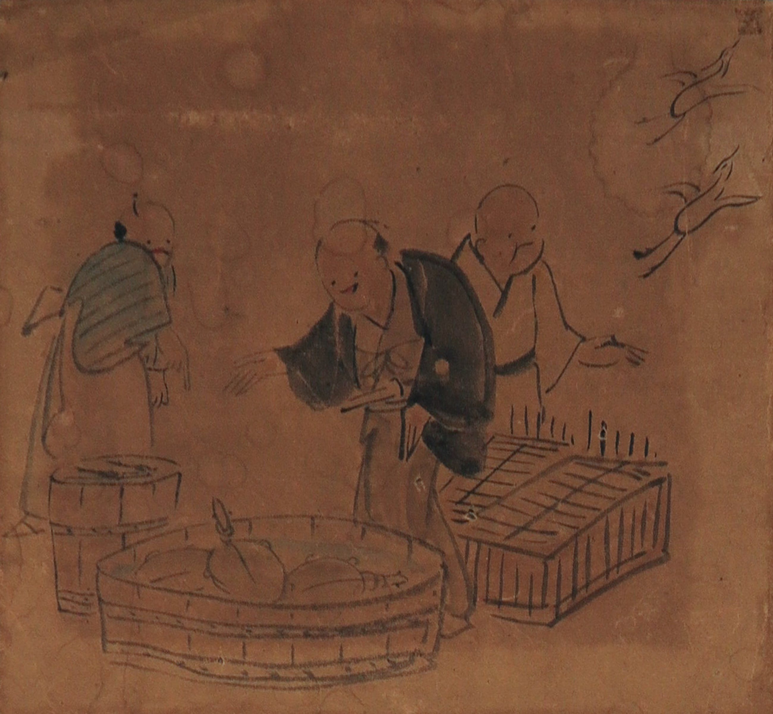 | Alle drie de items zijn verkleurd door de veroudering. Eén van de items heeft een vouw . Het kleine item is zeer verkleurd, heeft vlekken en scheuren in het blad. Daarnaast bevat het kleinste item ook een schuine vouw in het blad. | |||