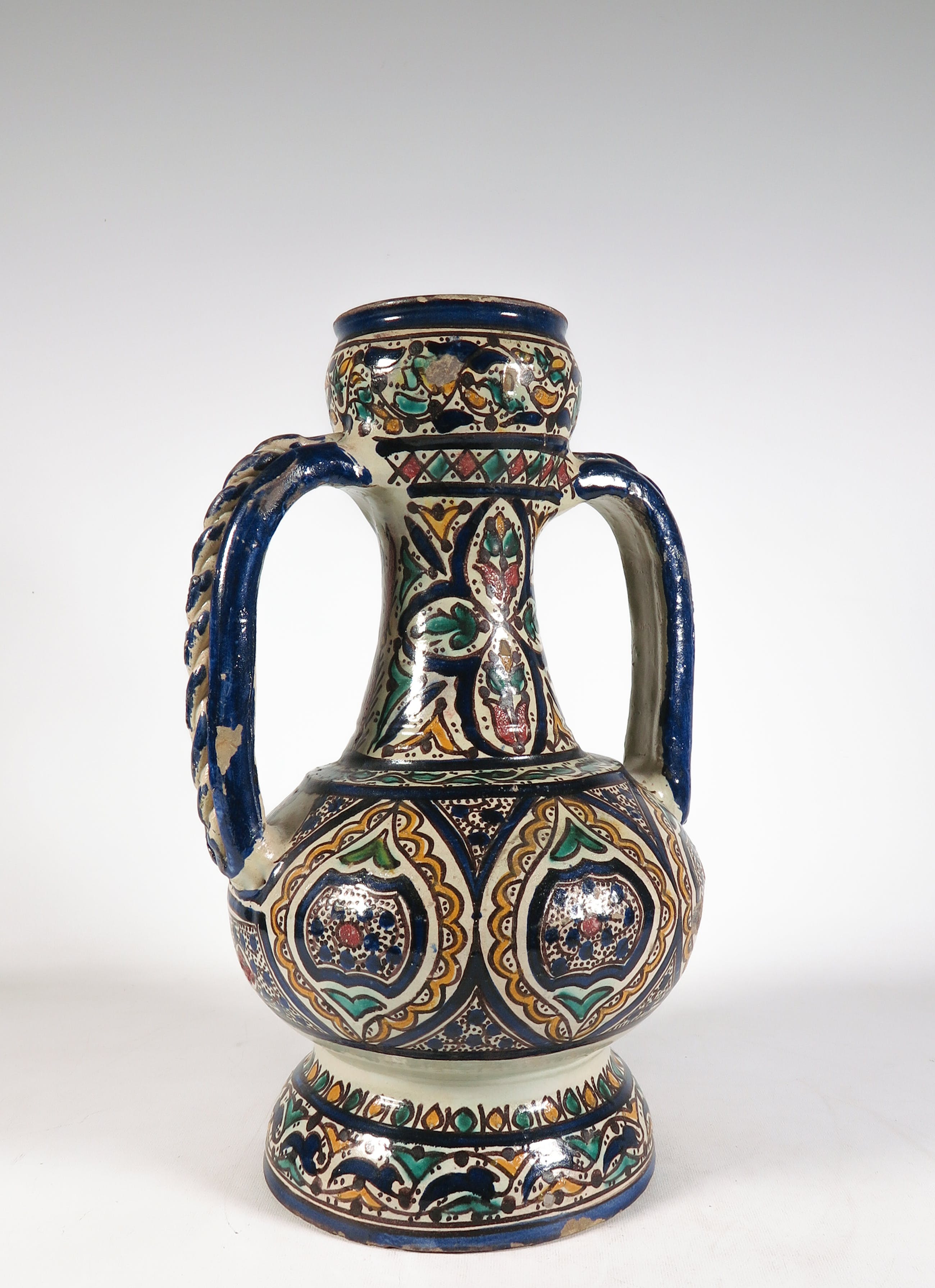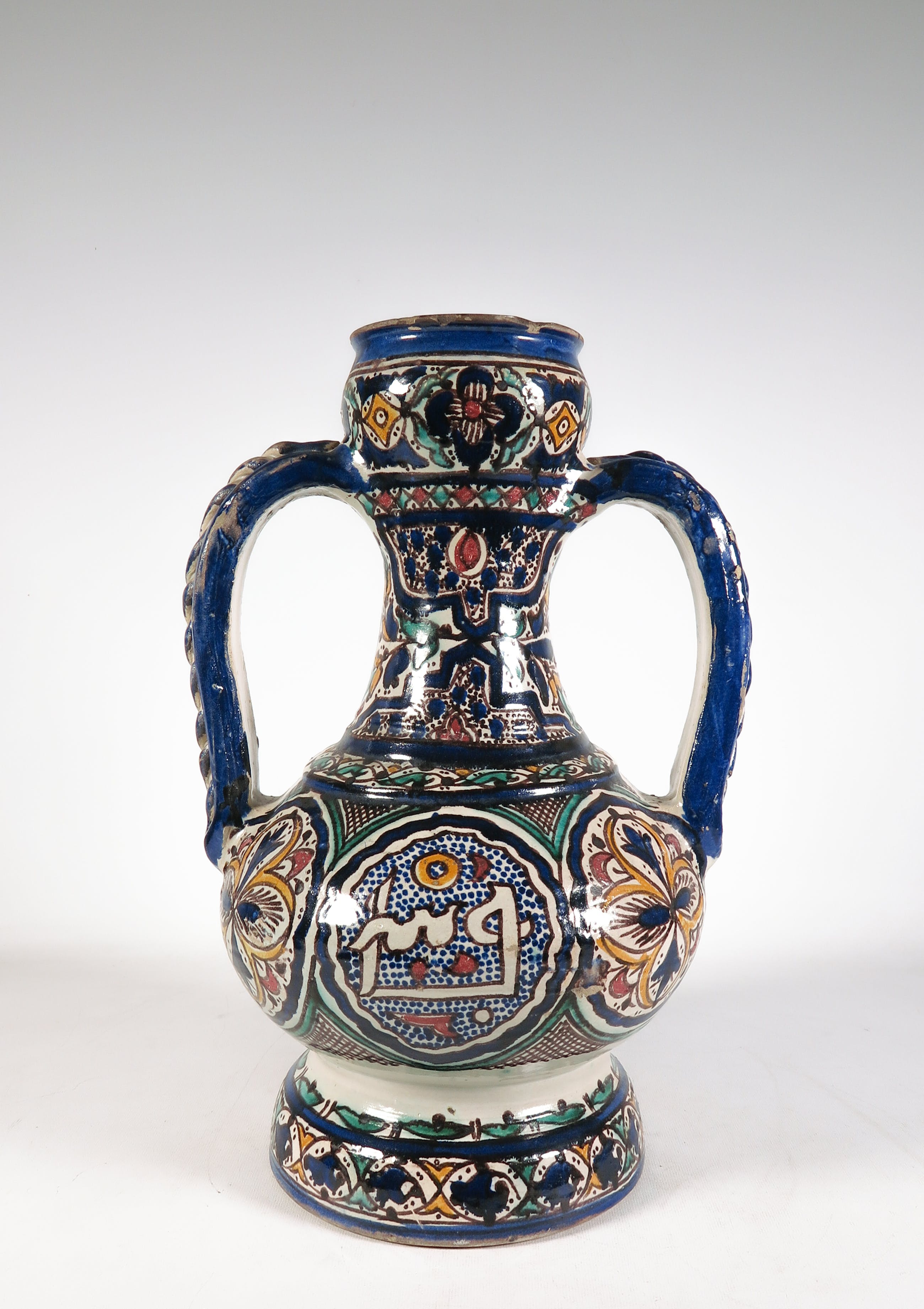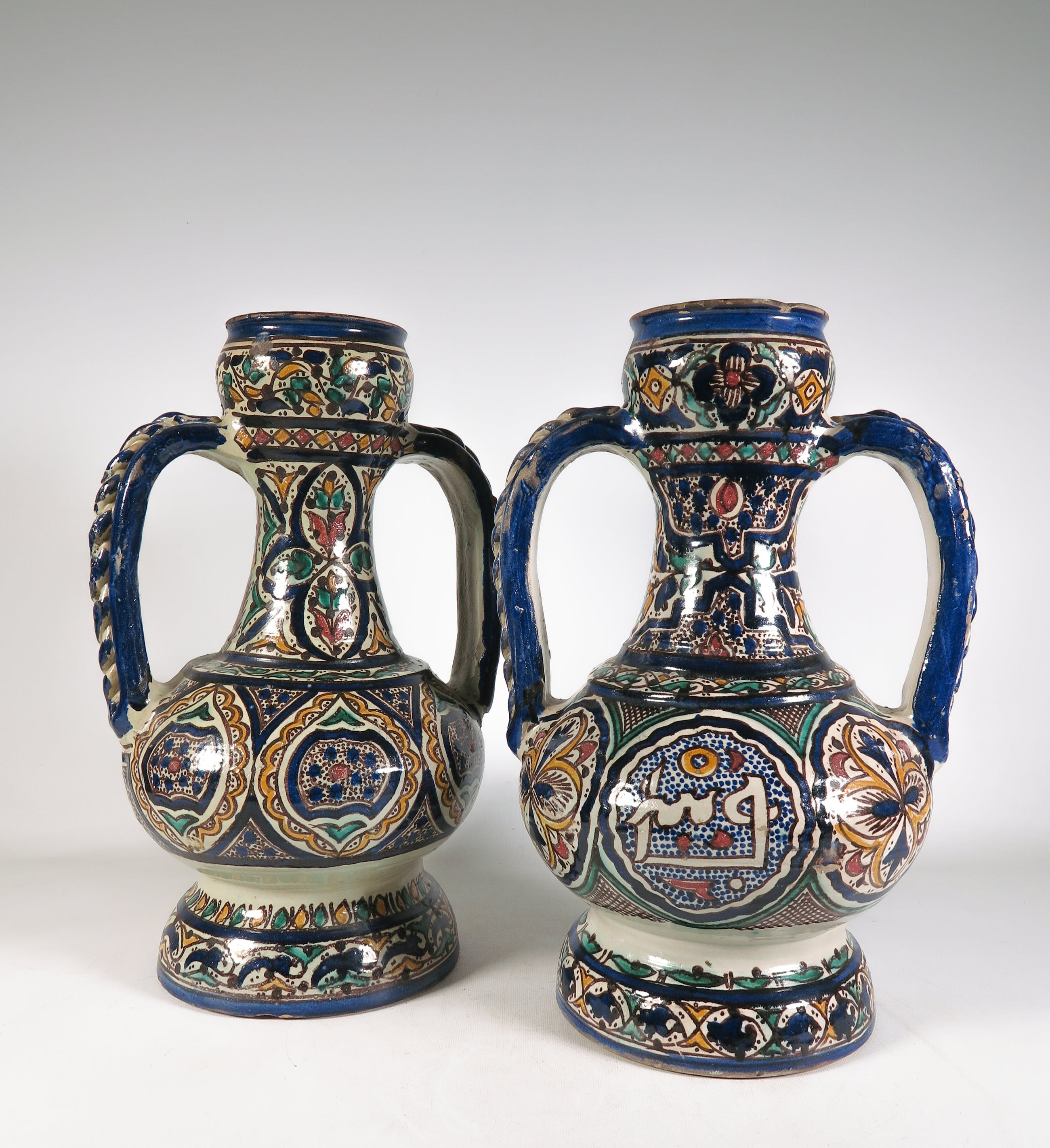 Lot van twee vazen met oren, aan de onderzijde gesigneerd/gemerkt. De leeftijd is geschat.