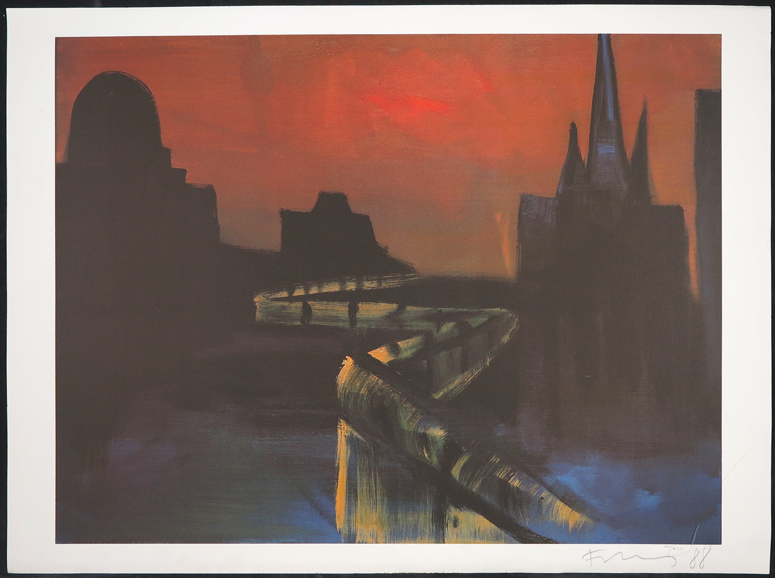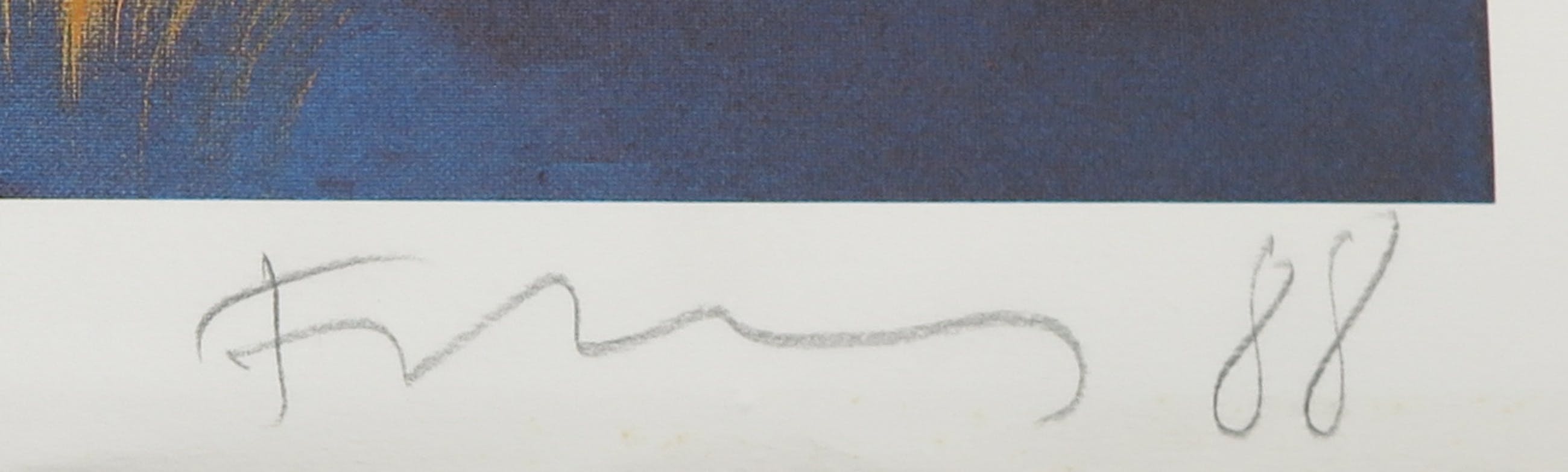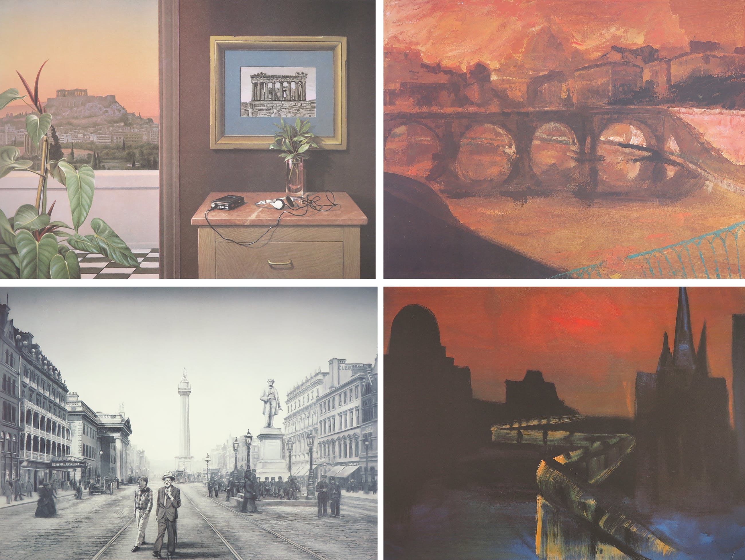 Lot van vier offets van verschillende kunstenaars, met de hand gesigneerd. De werken zijn ongenummerd, oplage is dus niet bekend.