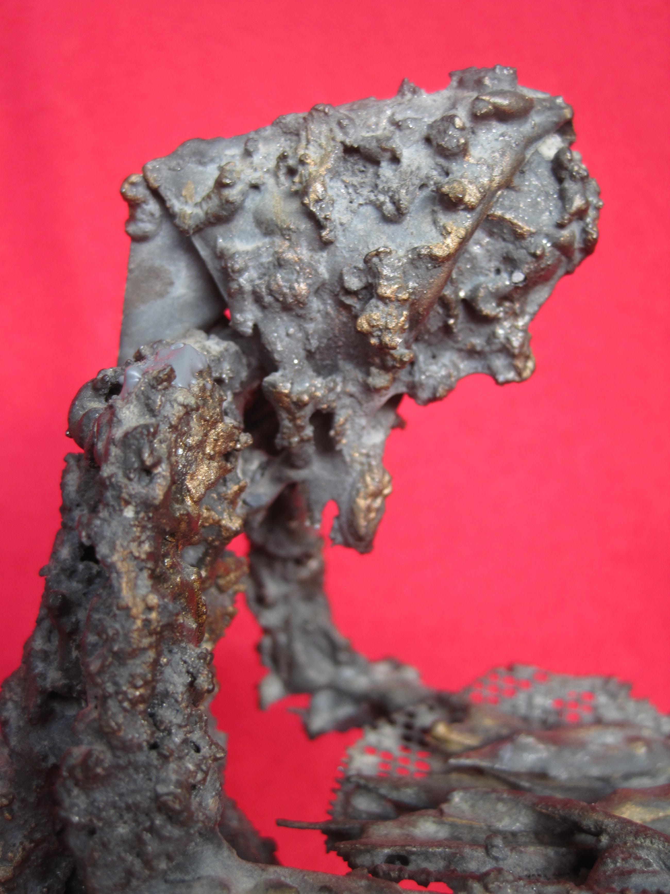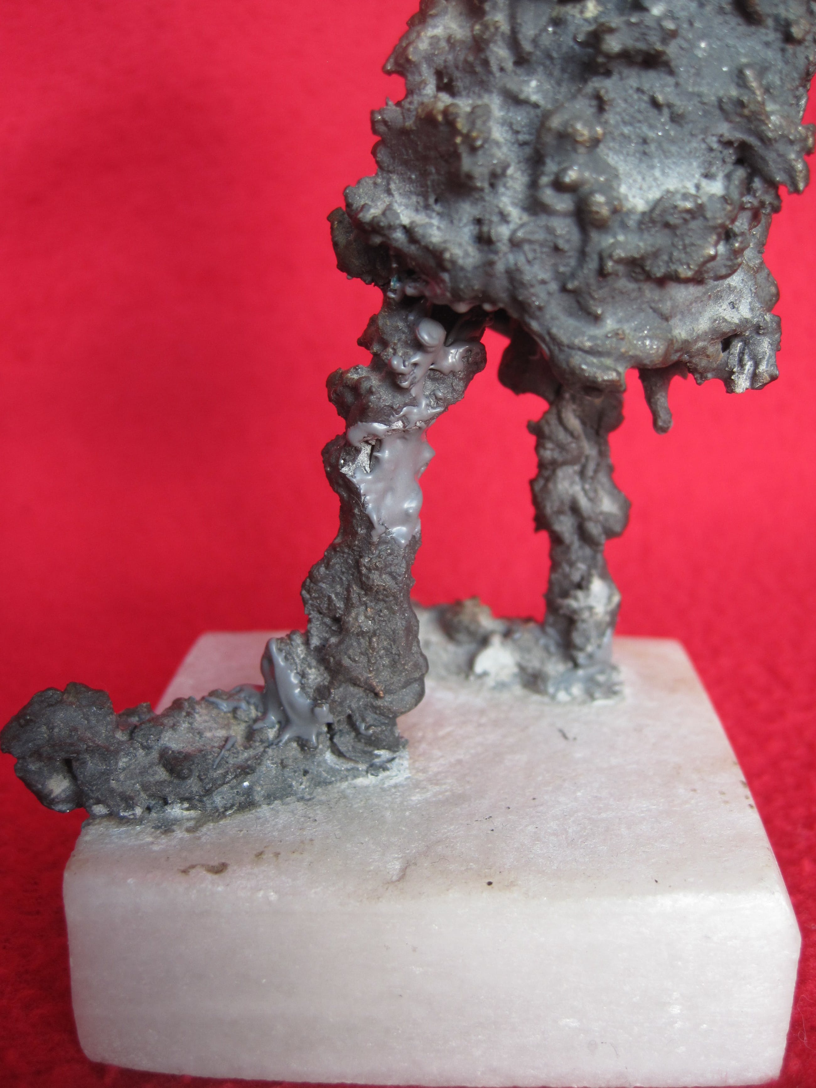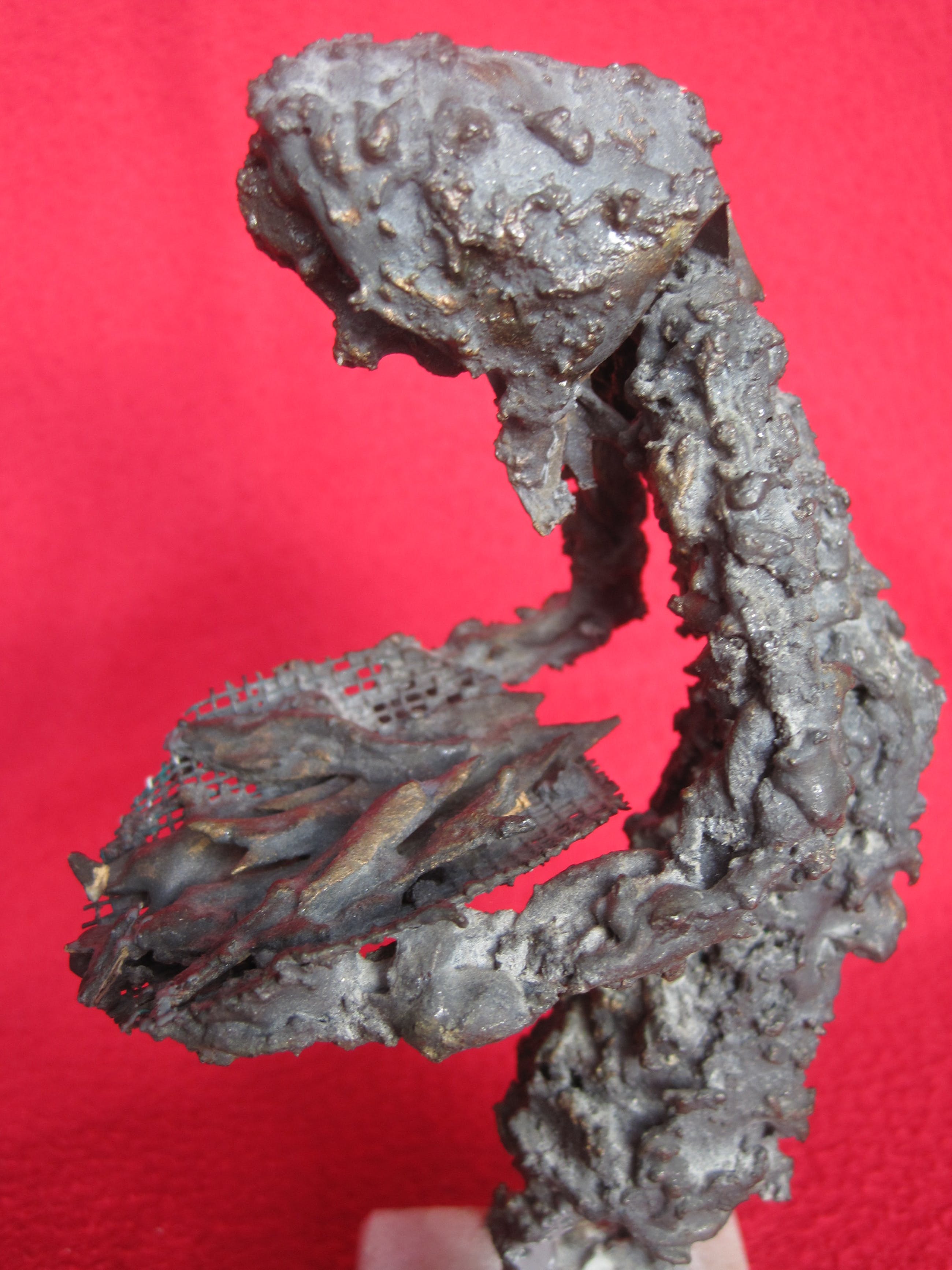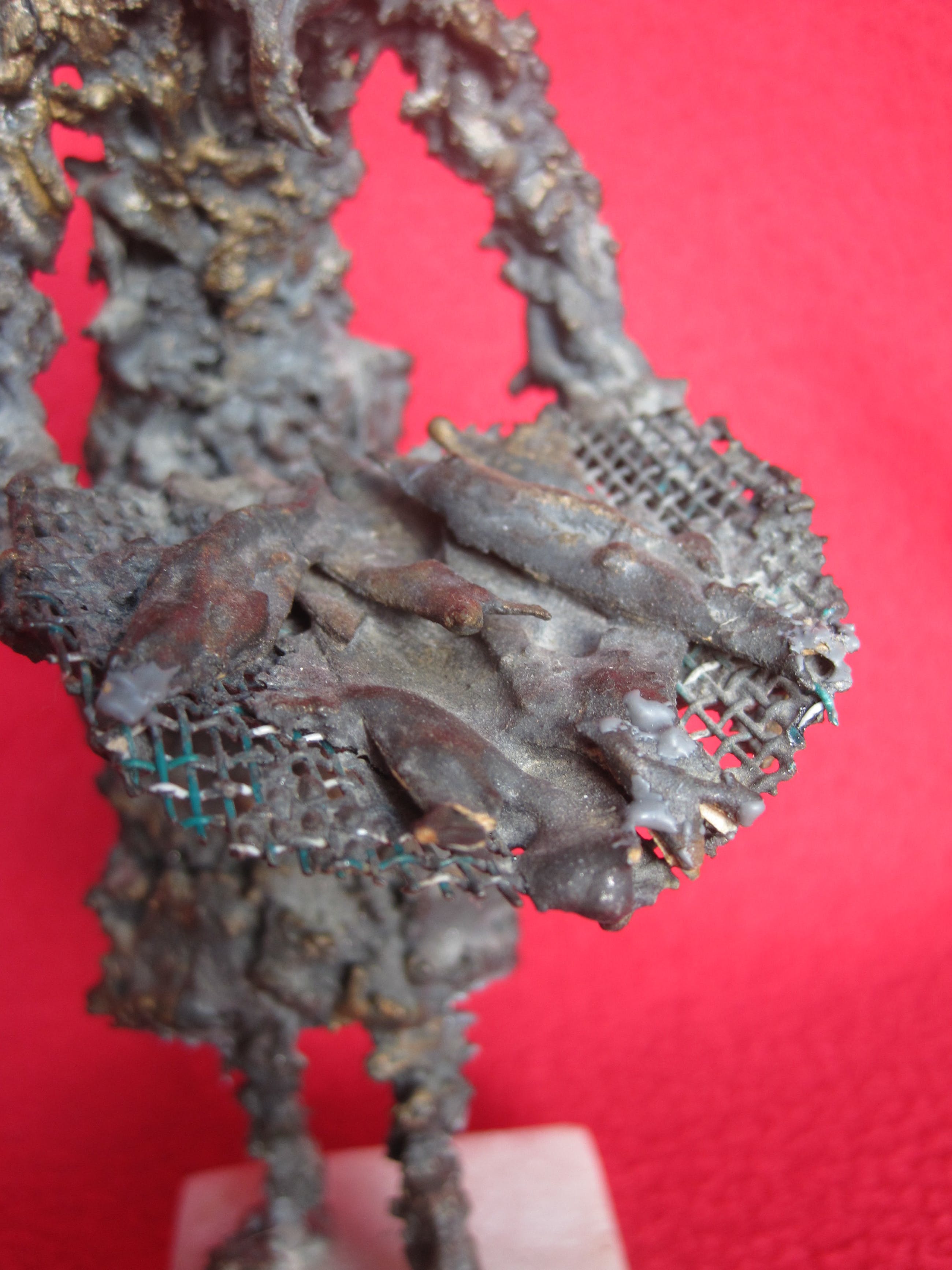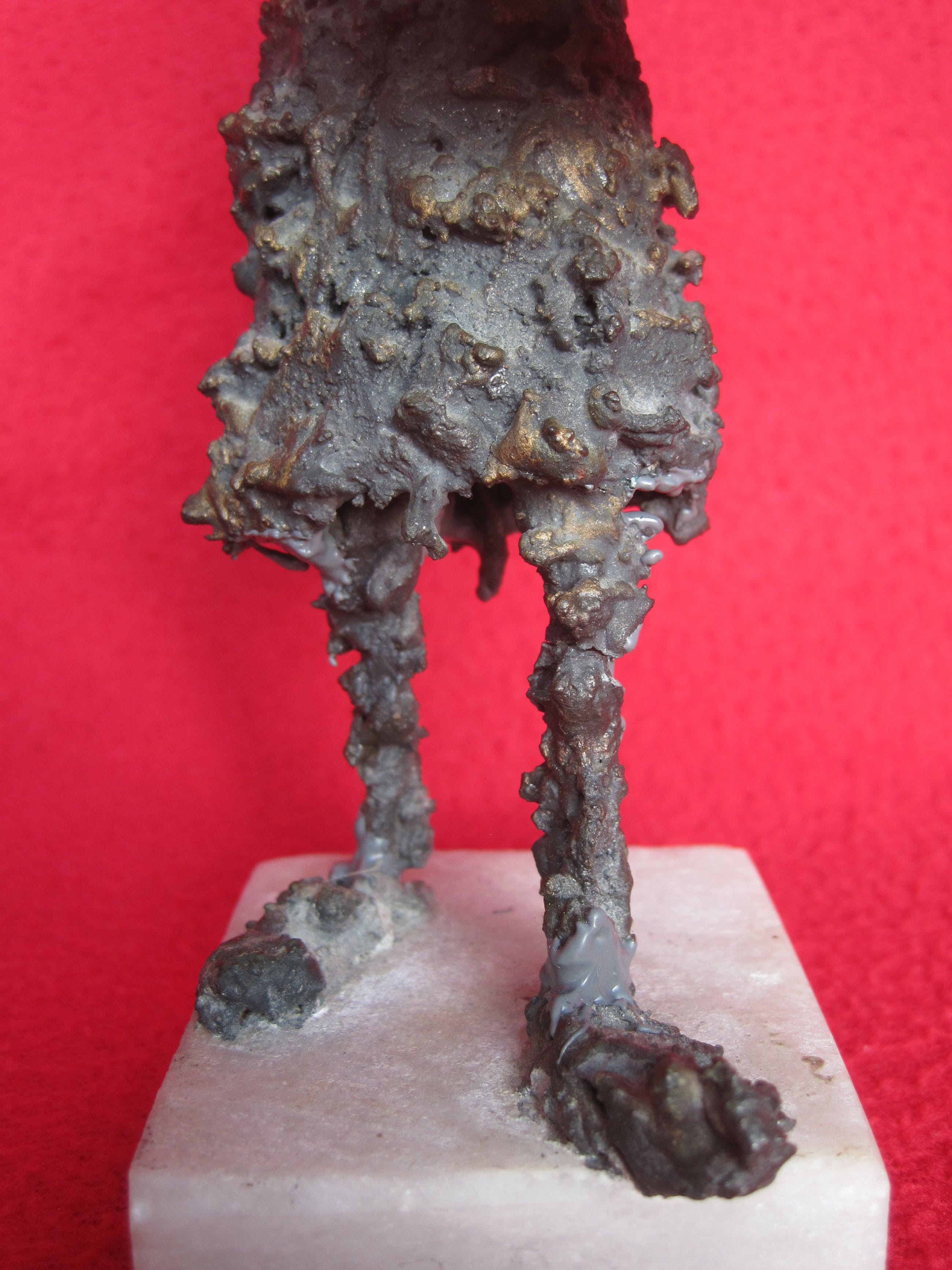 Heel apart verbronsd kunststof beeldje van een oud vrouwtje die haar vis verkoopt. De kunstenaar is mij helaas onbekend.