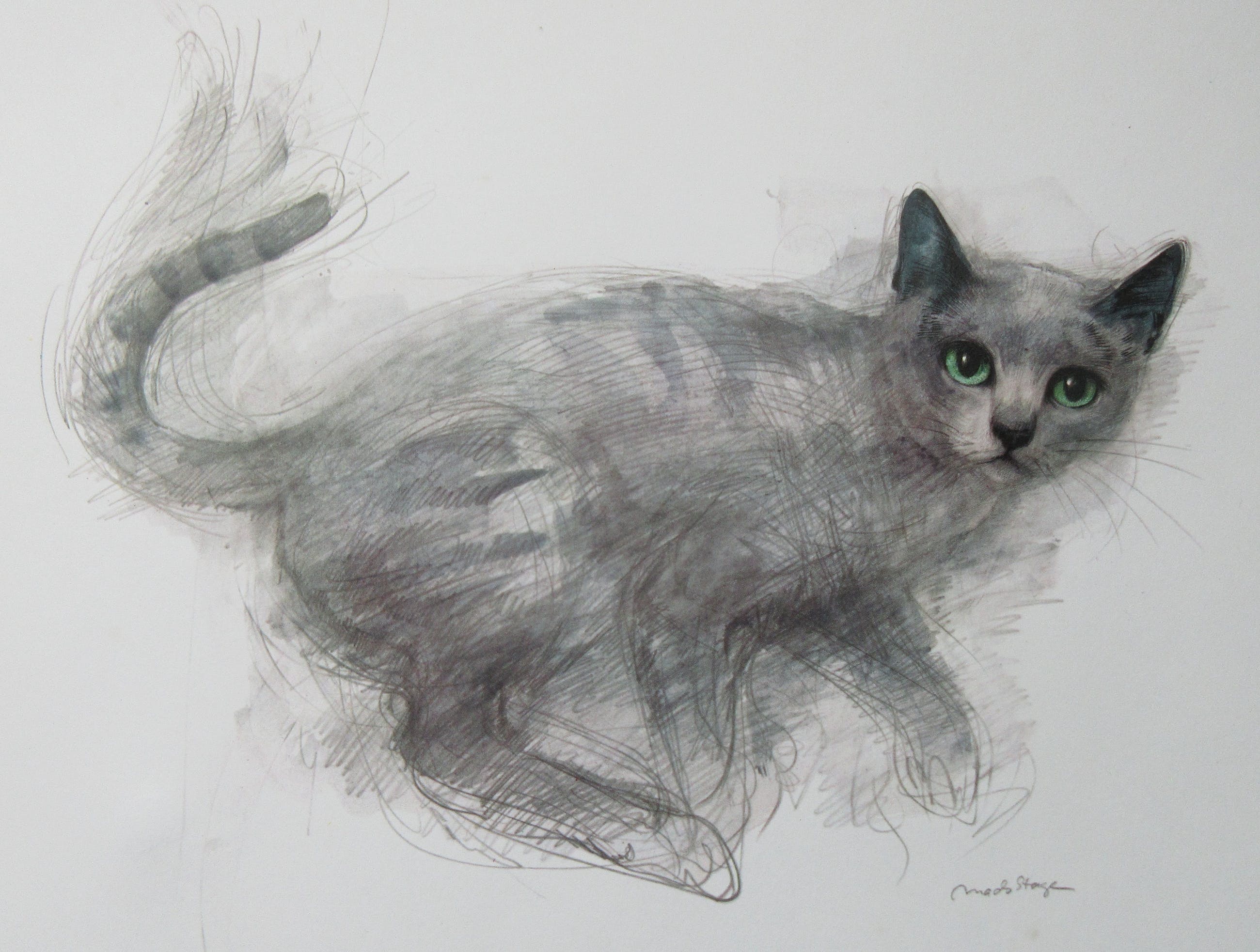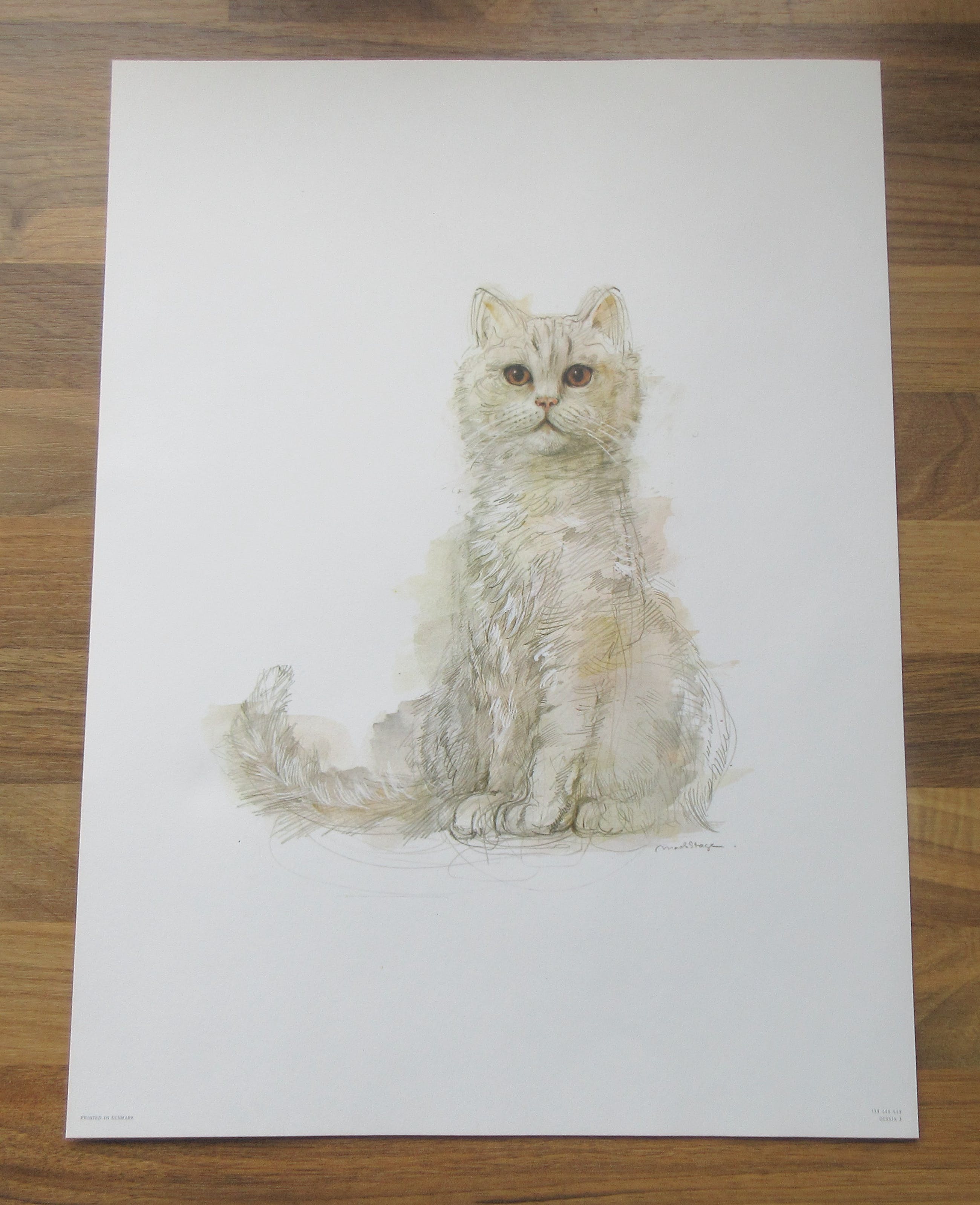 4 studies of cats by Mads Stage from Copenhagen. It are prints of original watercolour drawings. The prints are in there Original carton map. The map contains prints of the following cats;