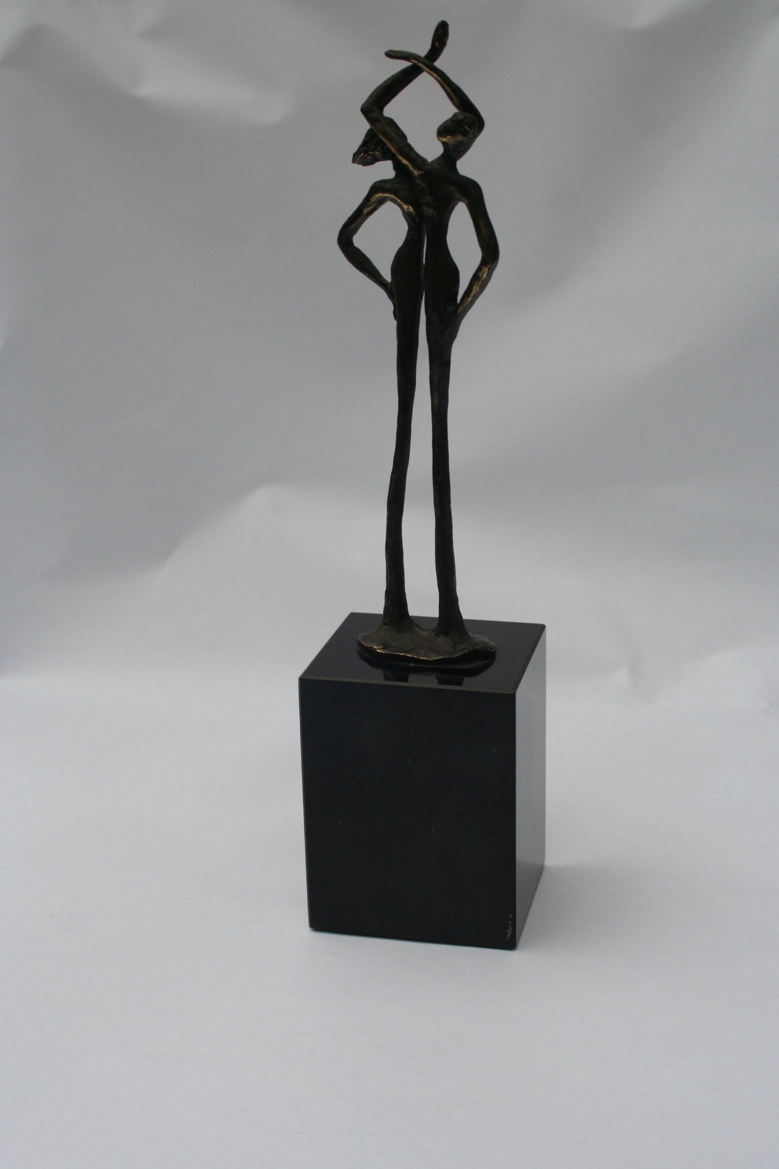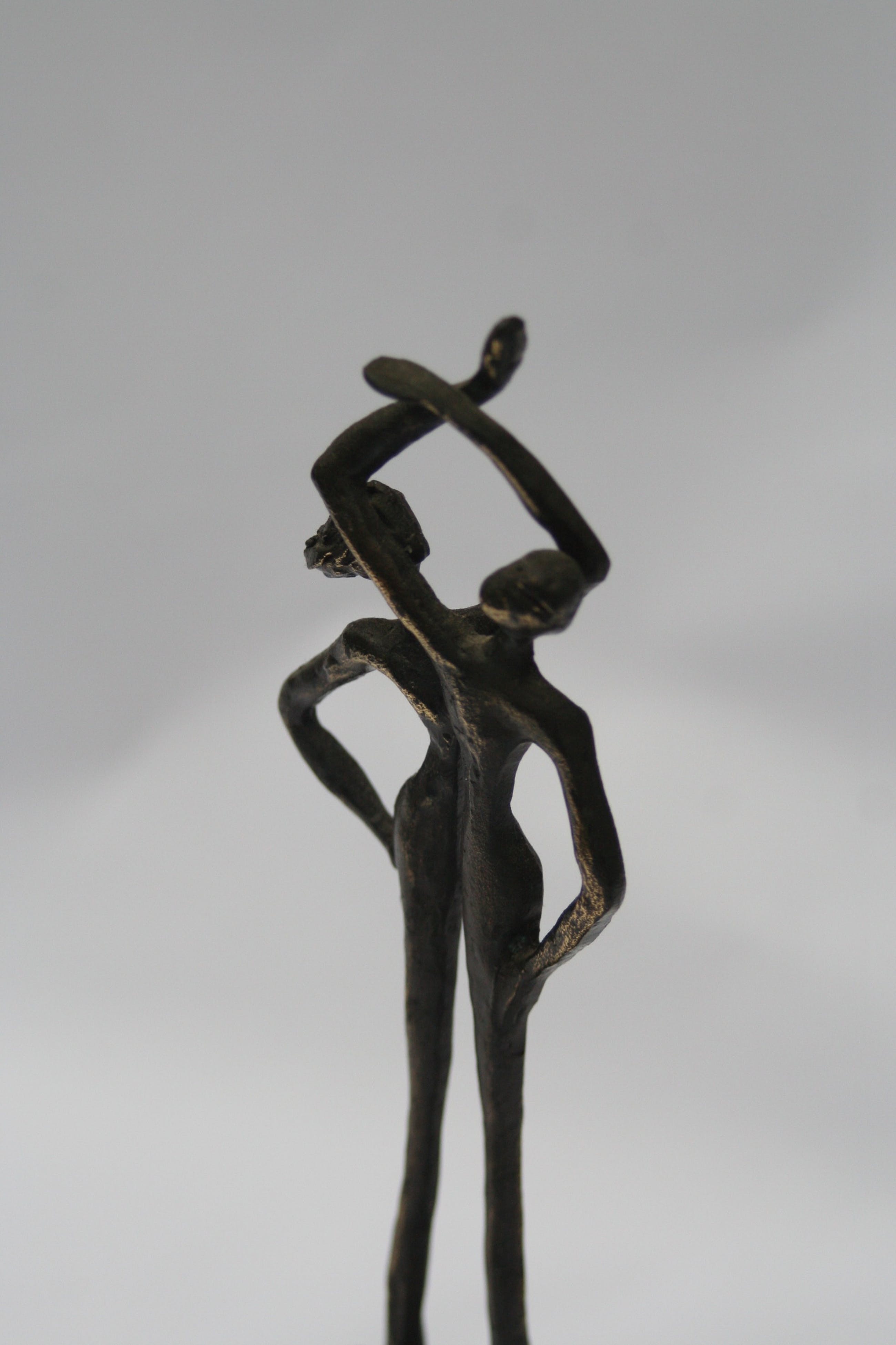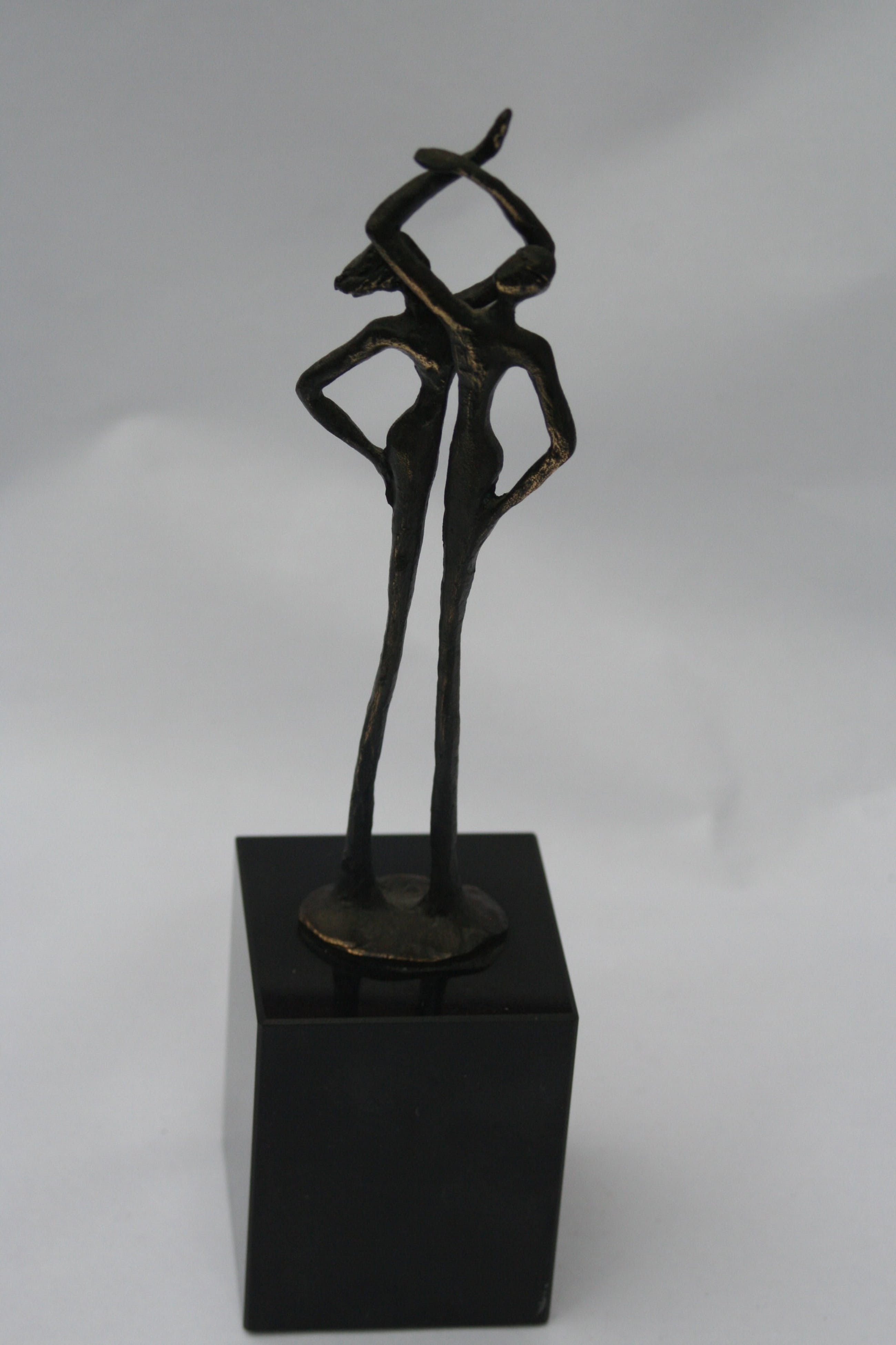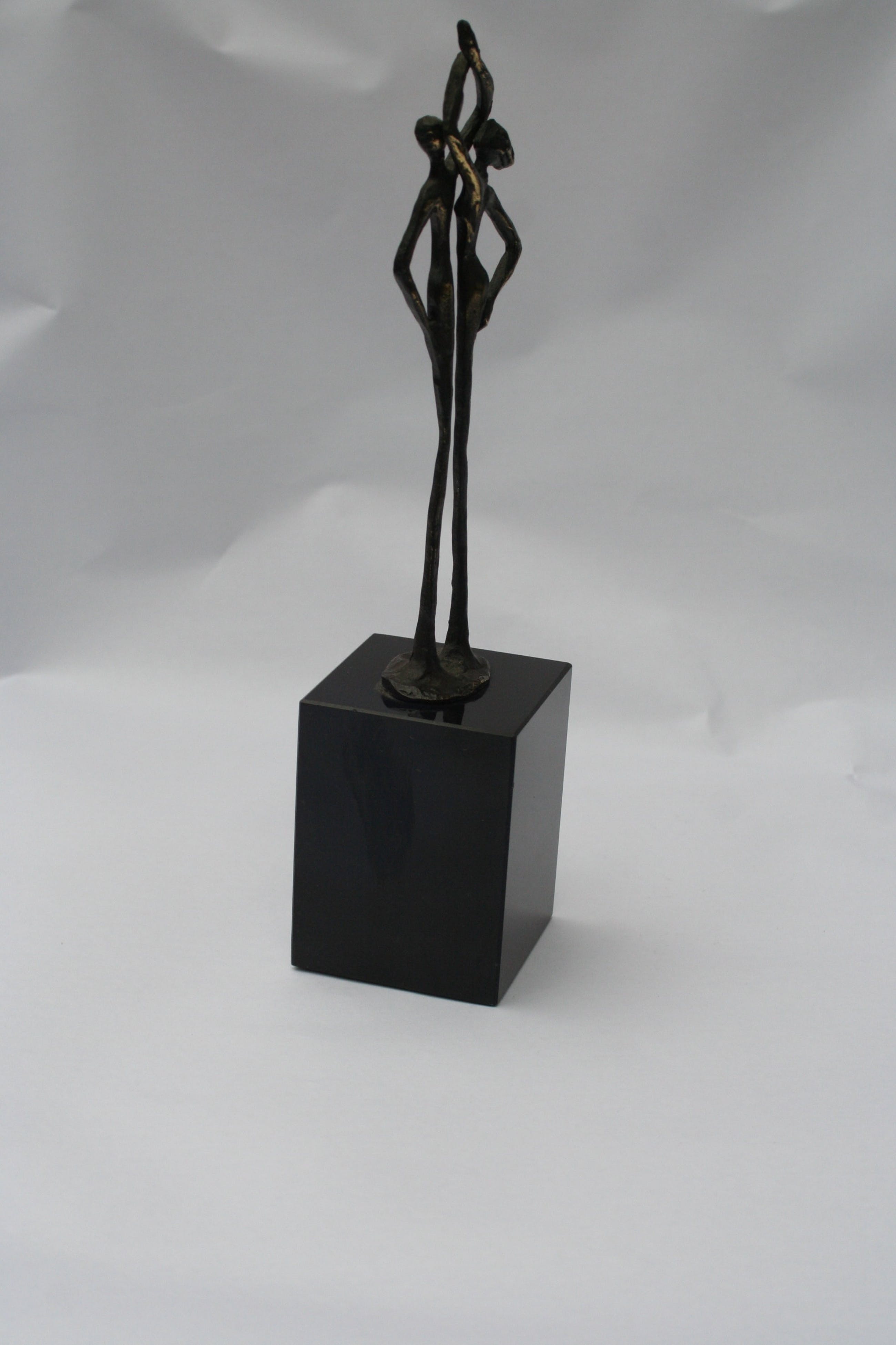 Niet gesigneerd beeldje. Voorstelling van een verstrengelde vrouw en man. De sokkel is 5 x 5 cm en 7 cm hoog. Het totaal is 22 cm hoog.