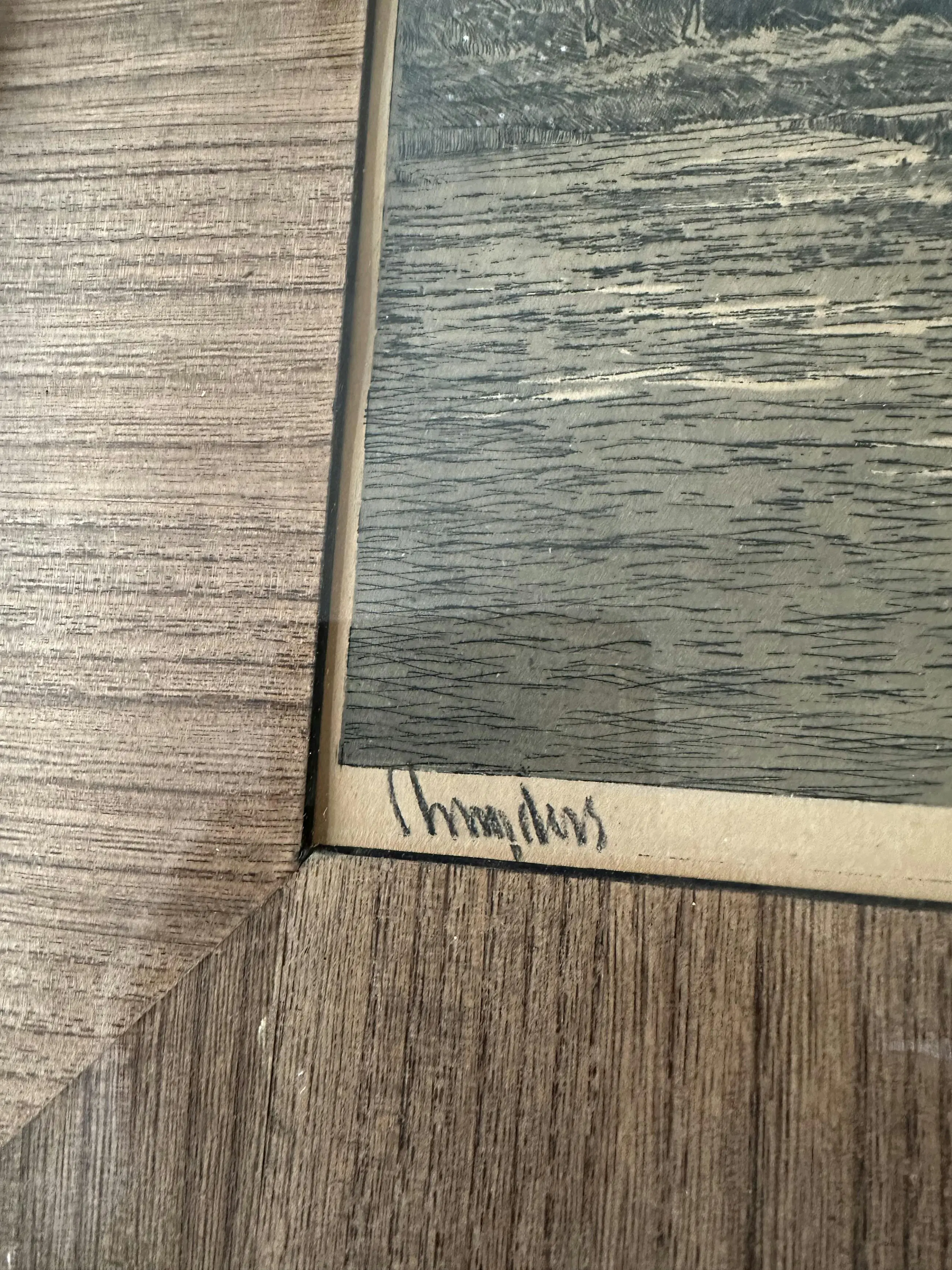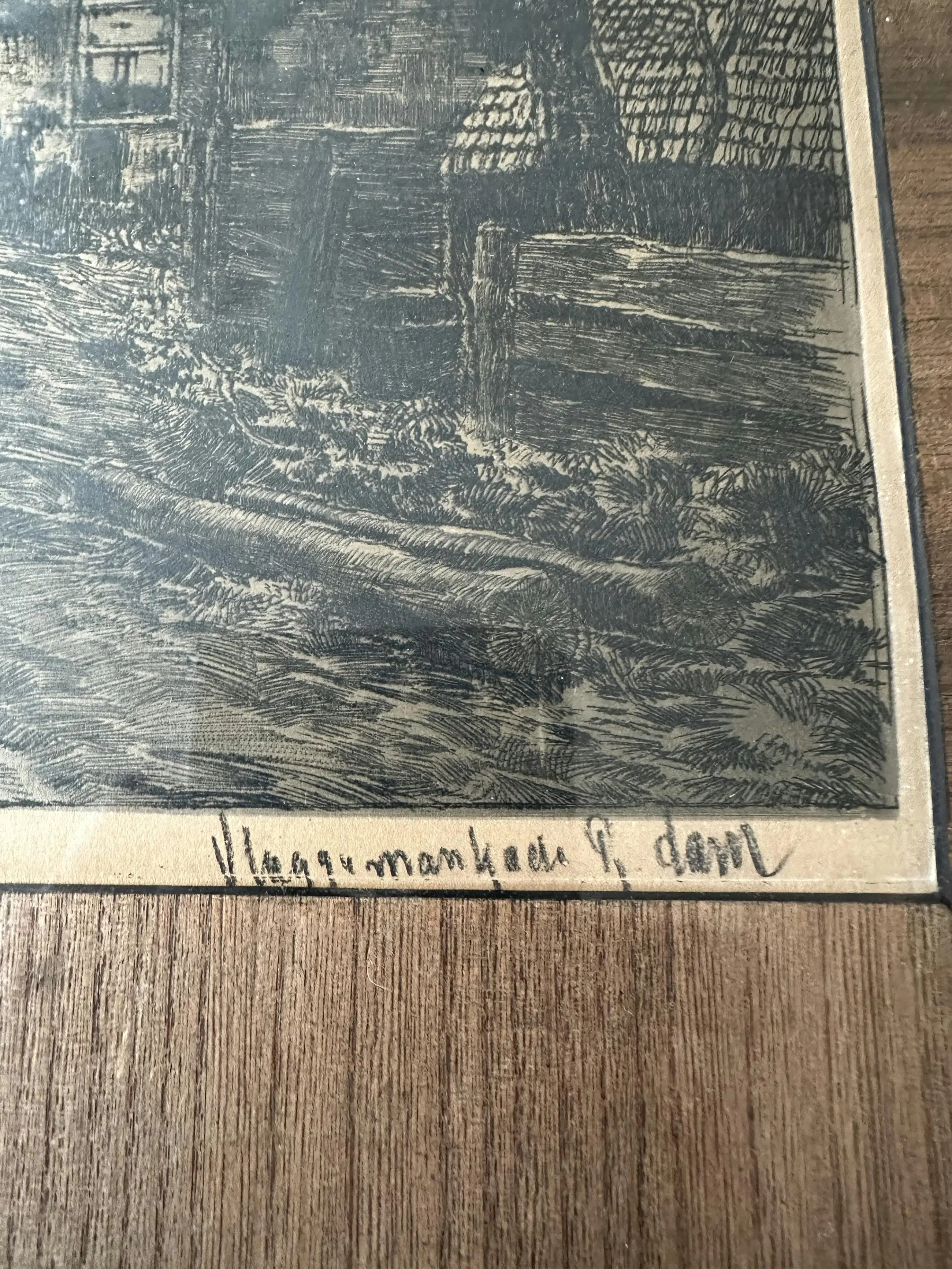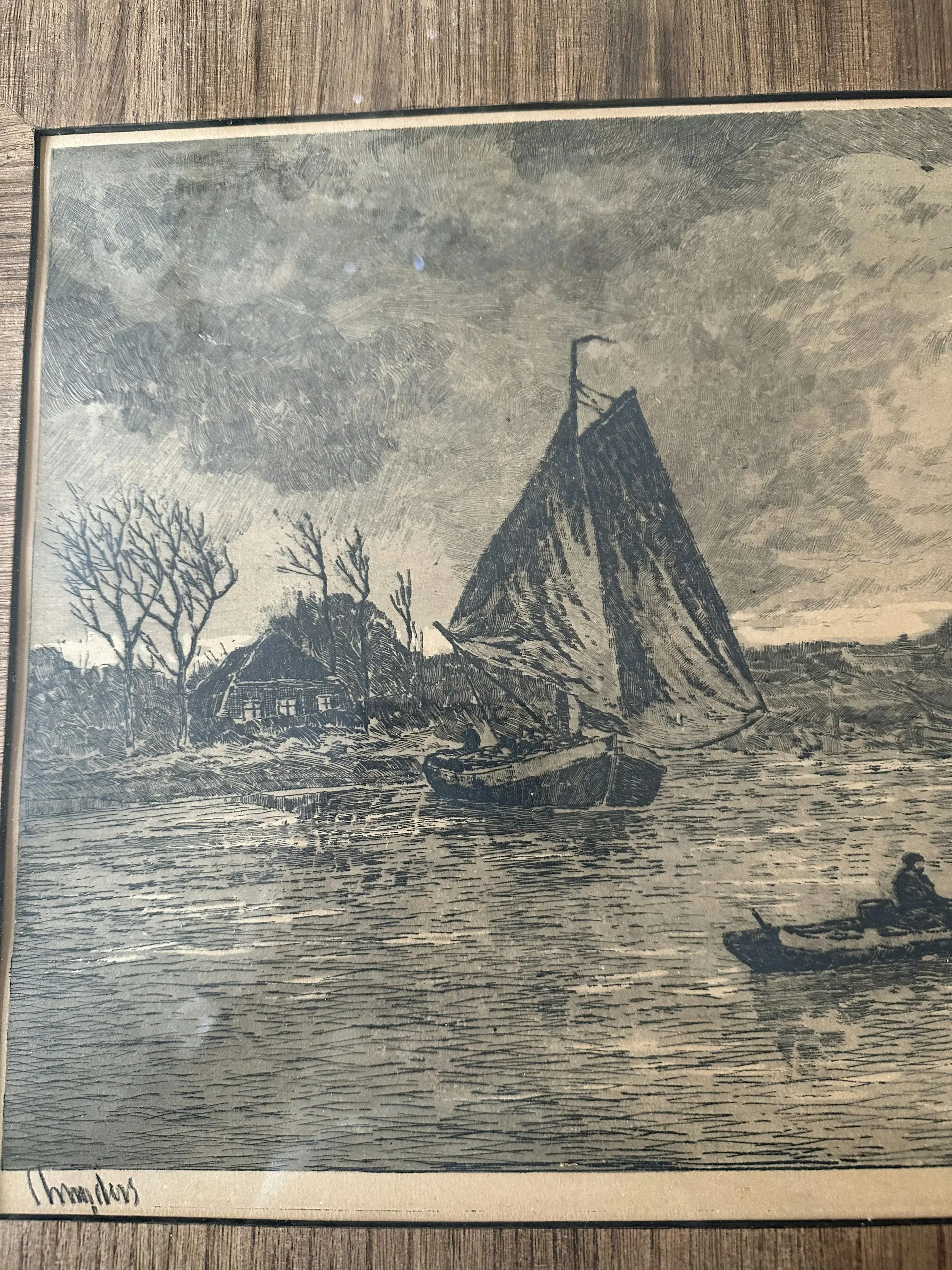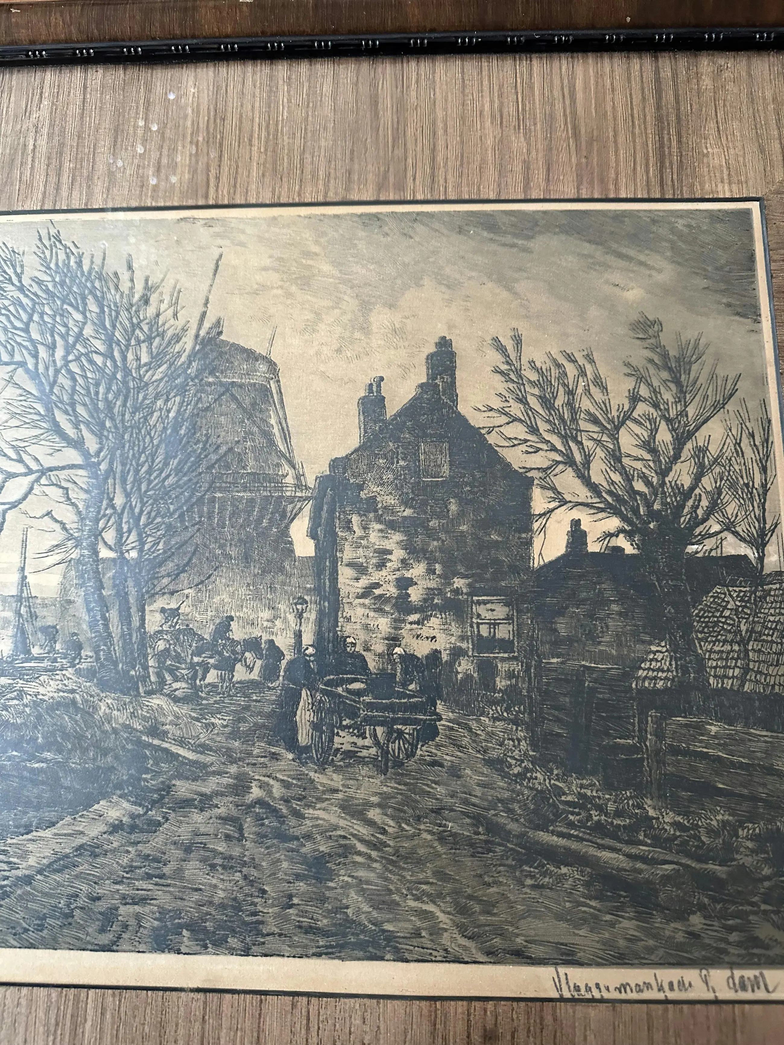 Mooie ets van Manders van de Vlaggemankade te Rotterdam Op de lijst zijn stukjes fineer eraf Zie de laatste foto ‘s 8 en 9