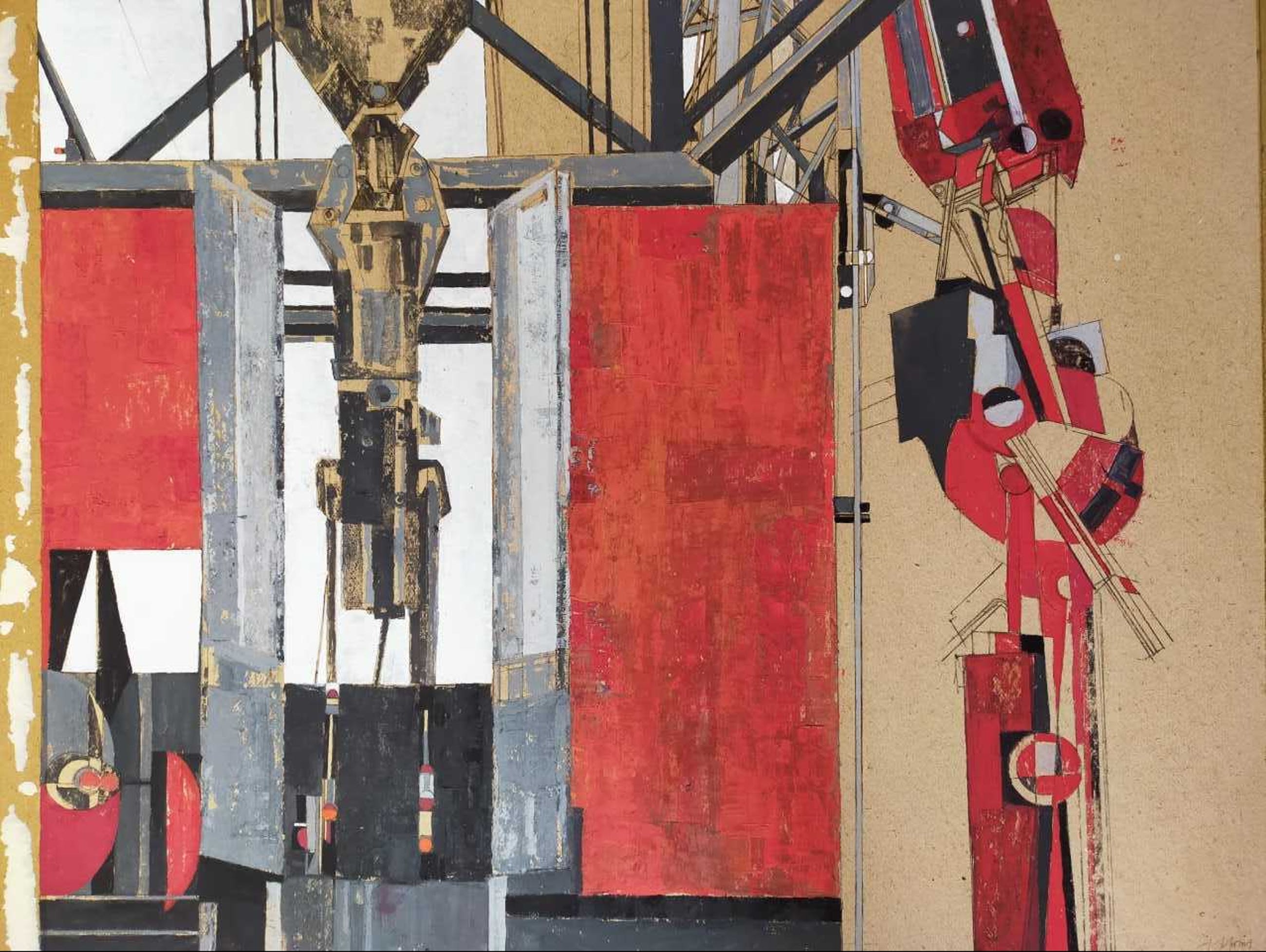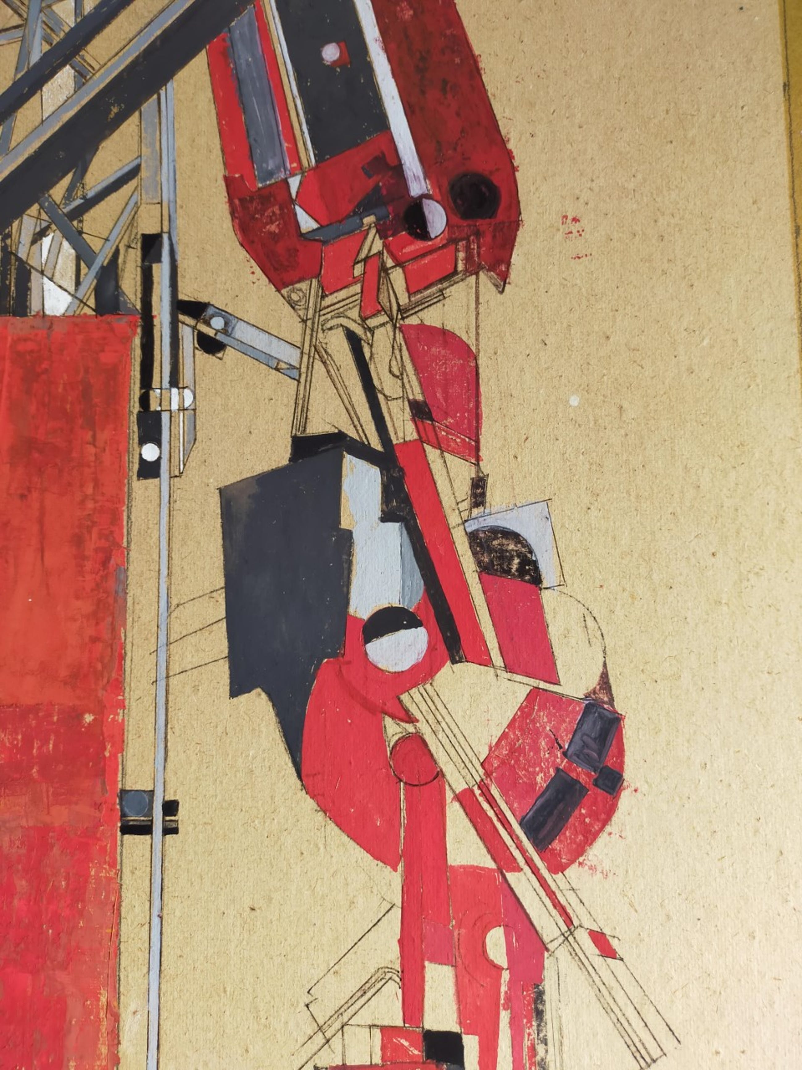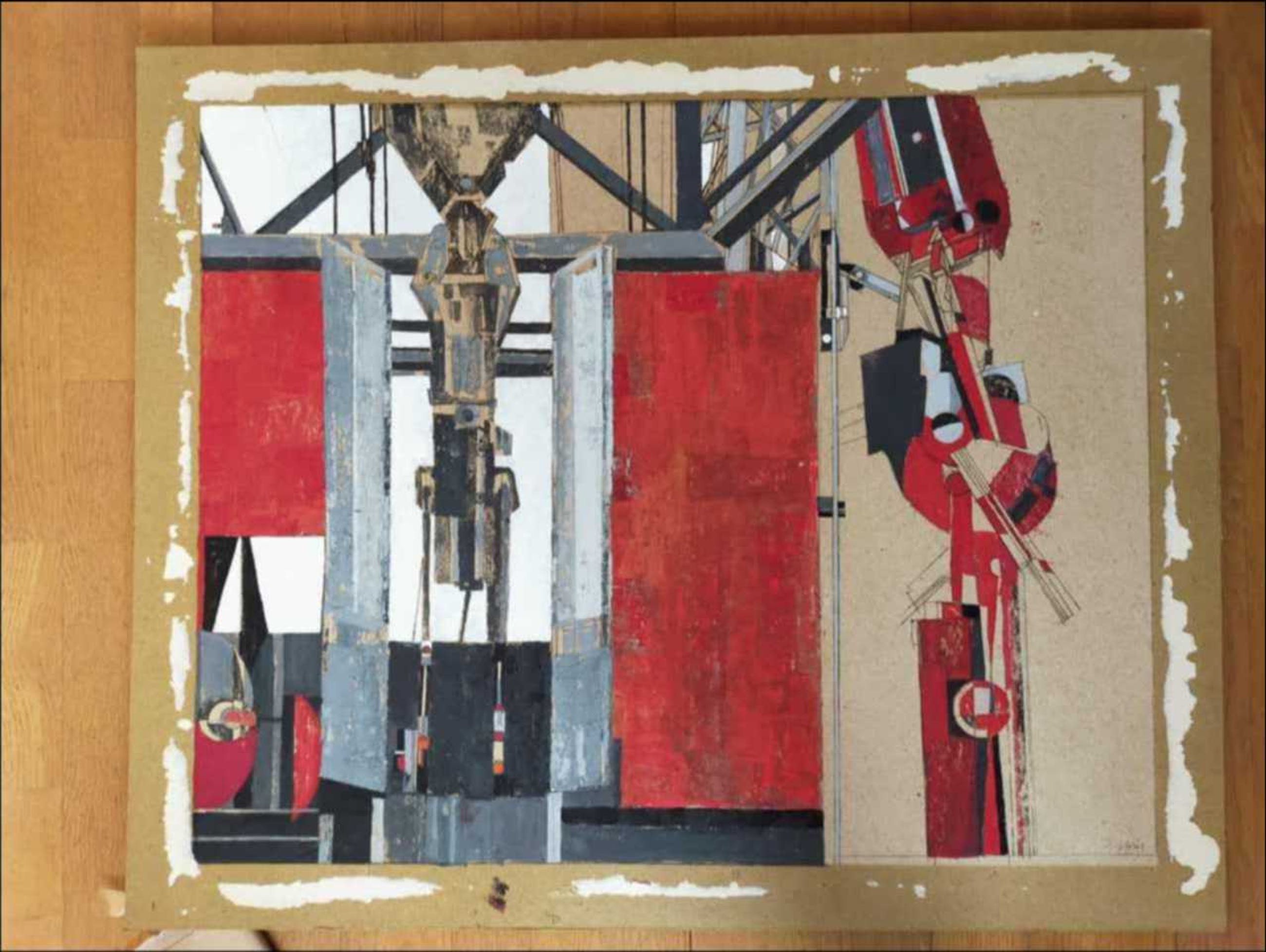 Bijzonder en apart kunstwerk uit vroege jaren '70 - olieverf direct op kartonnen ondergrond, geen voorbewerking. Gesigneerd J.J. Prins, niets op die naam kunnen vinden.