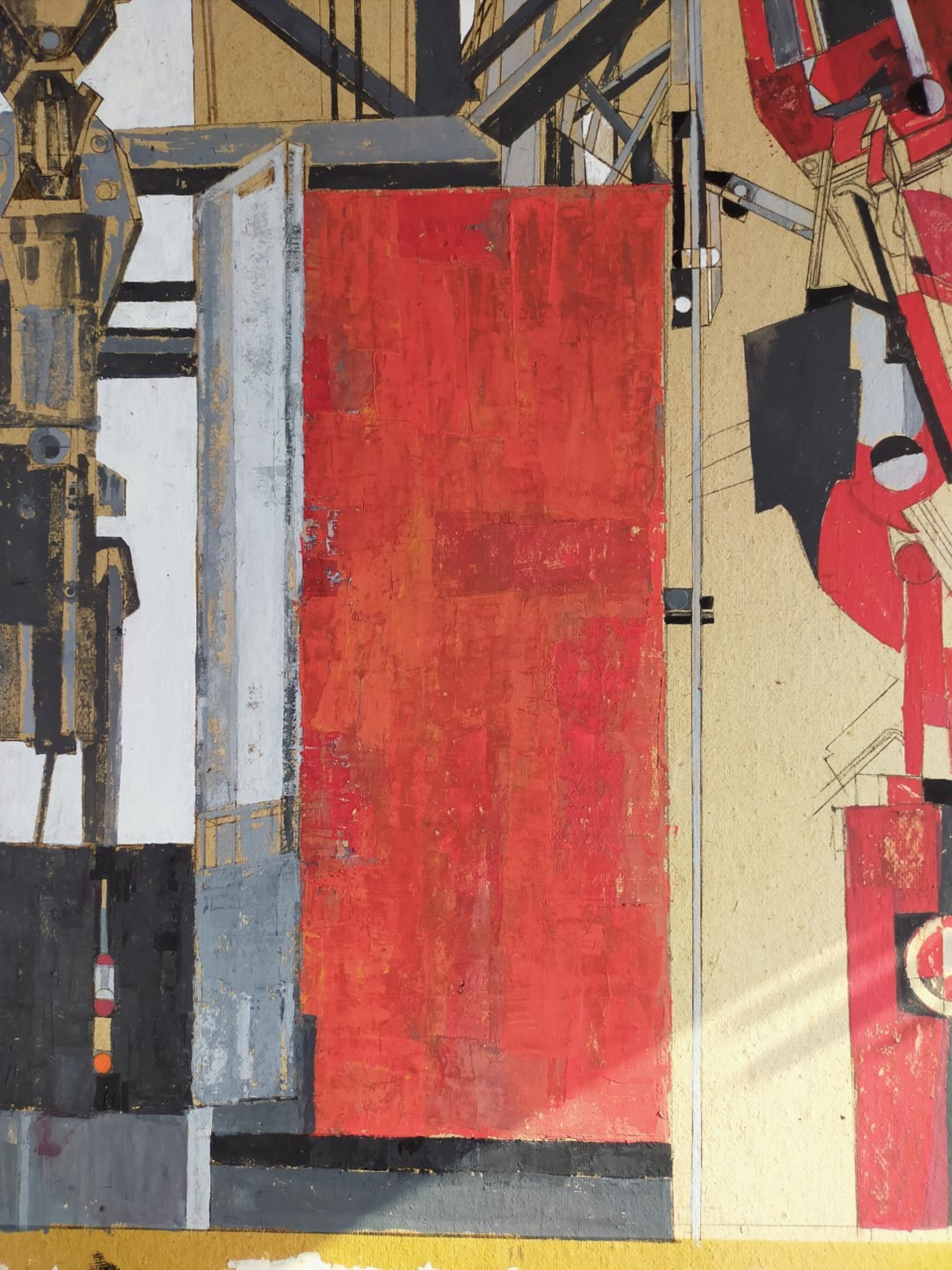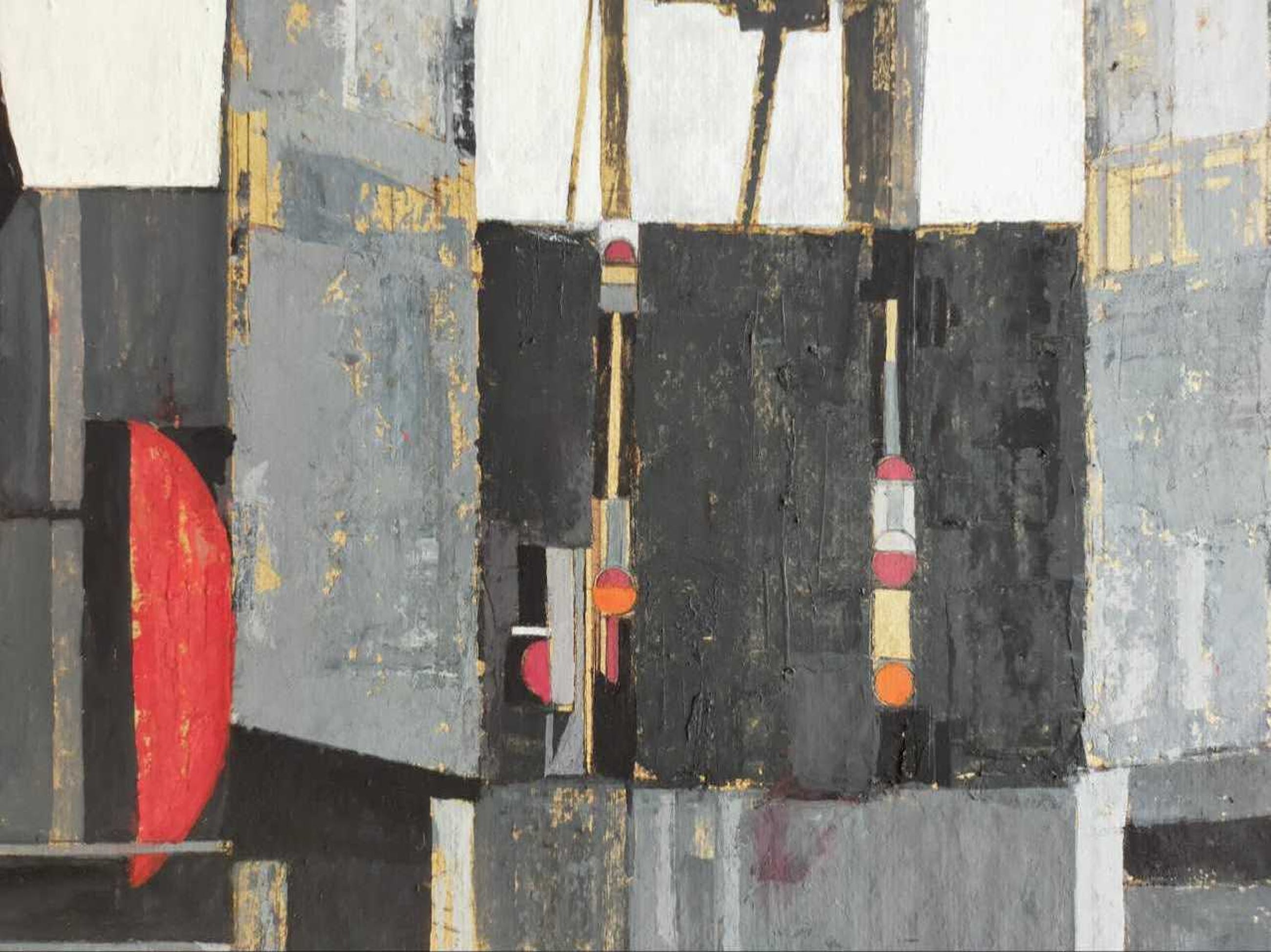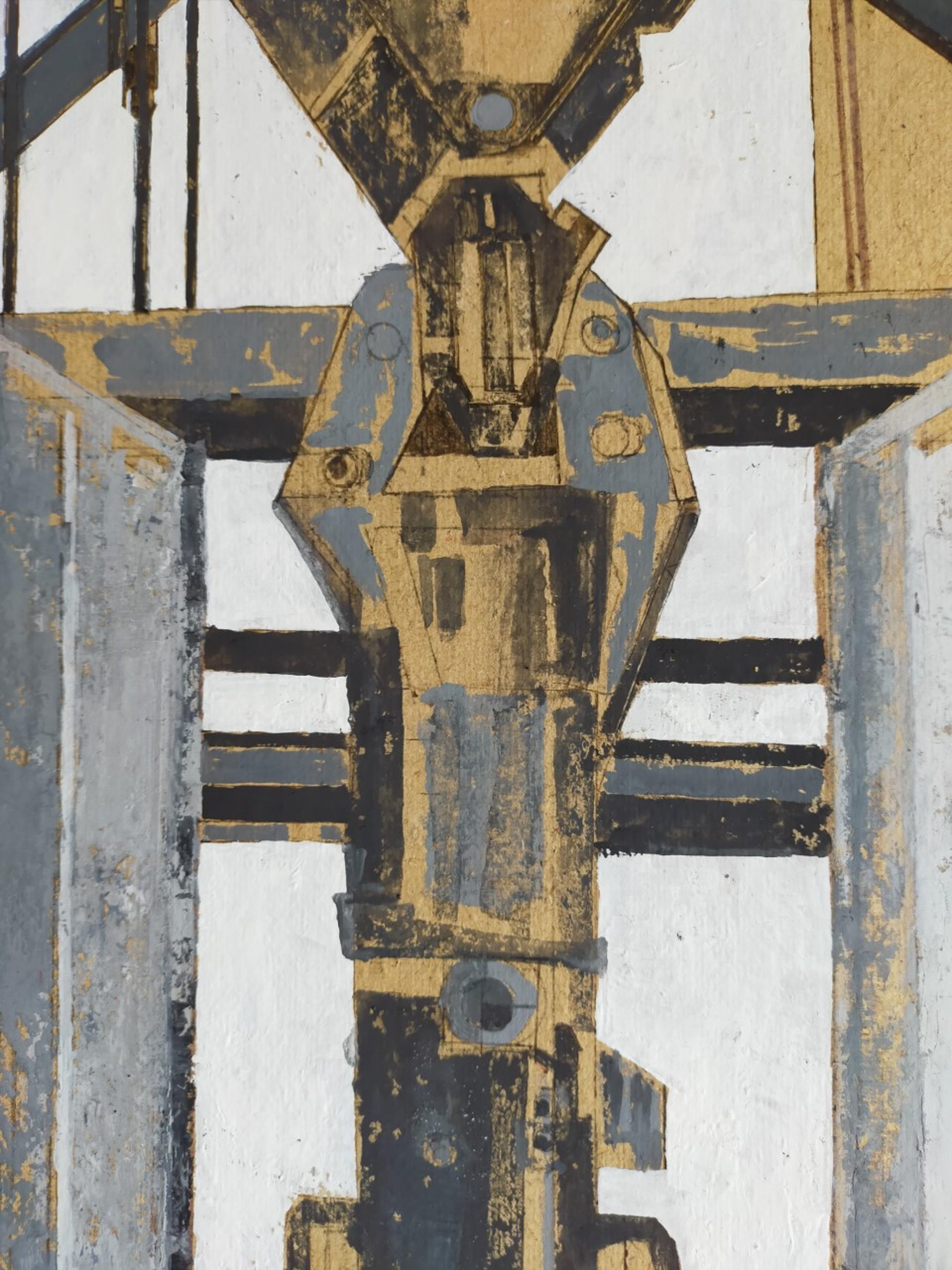 Bijzonder en apart kunstwerk uit vroege jaren '70 - olieverf direct op kartonnen ondergrond, geen voorbewerking. Gesigneerd J.J. Prins, niets op die naam kunnen vinden.