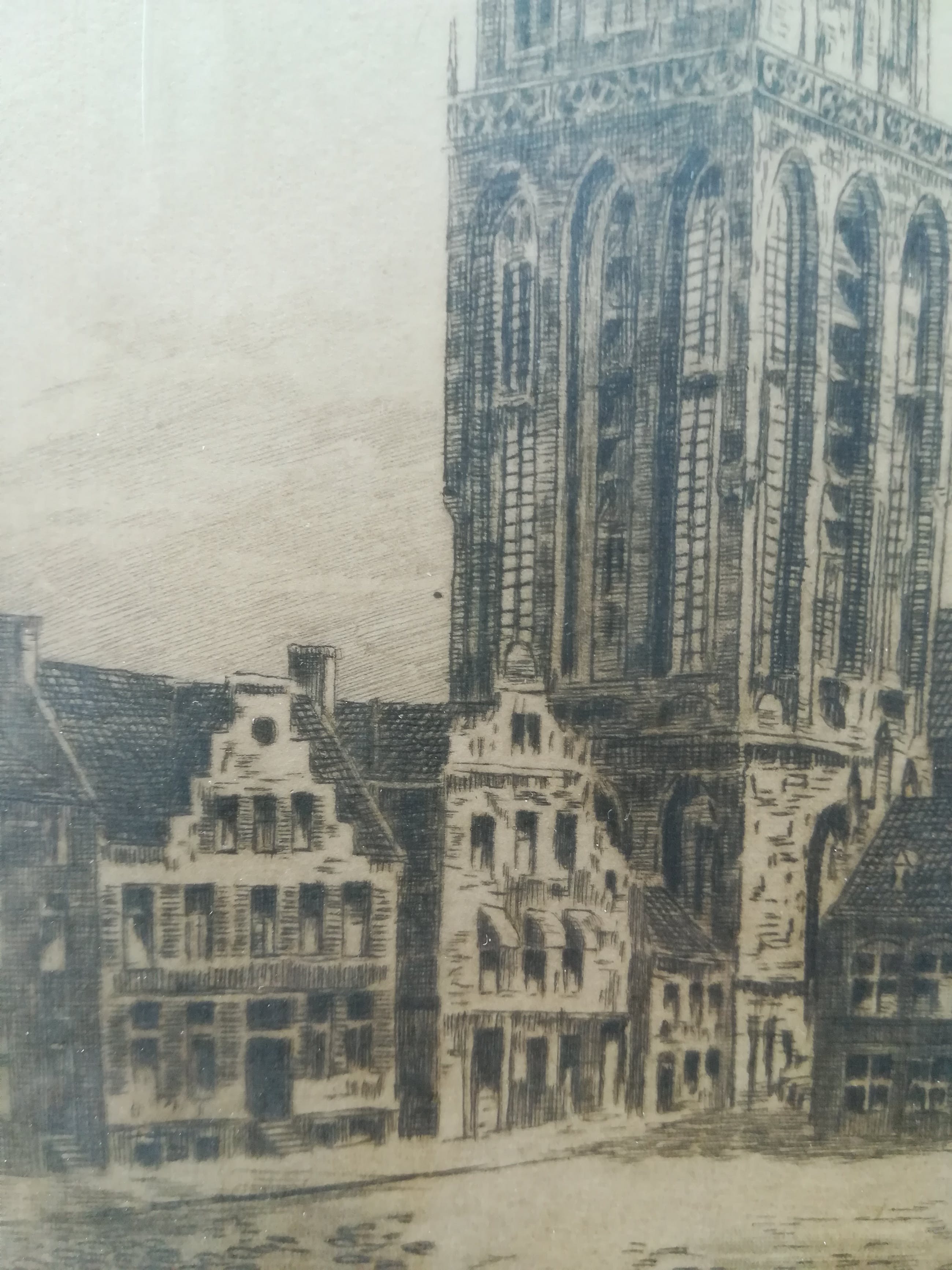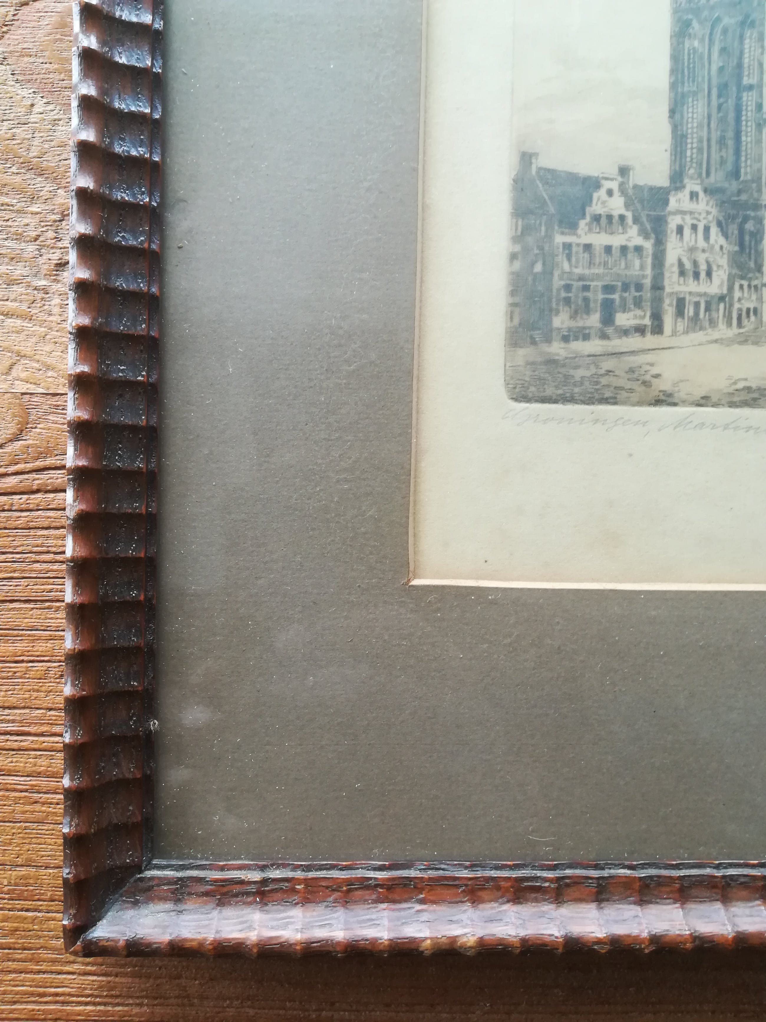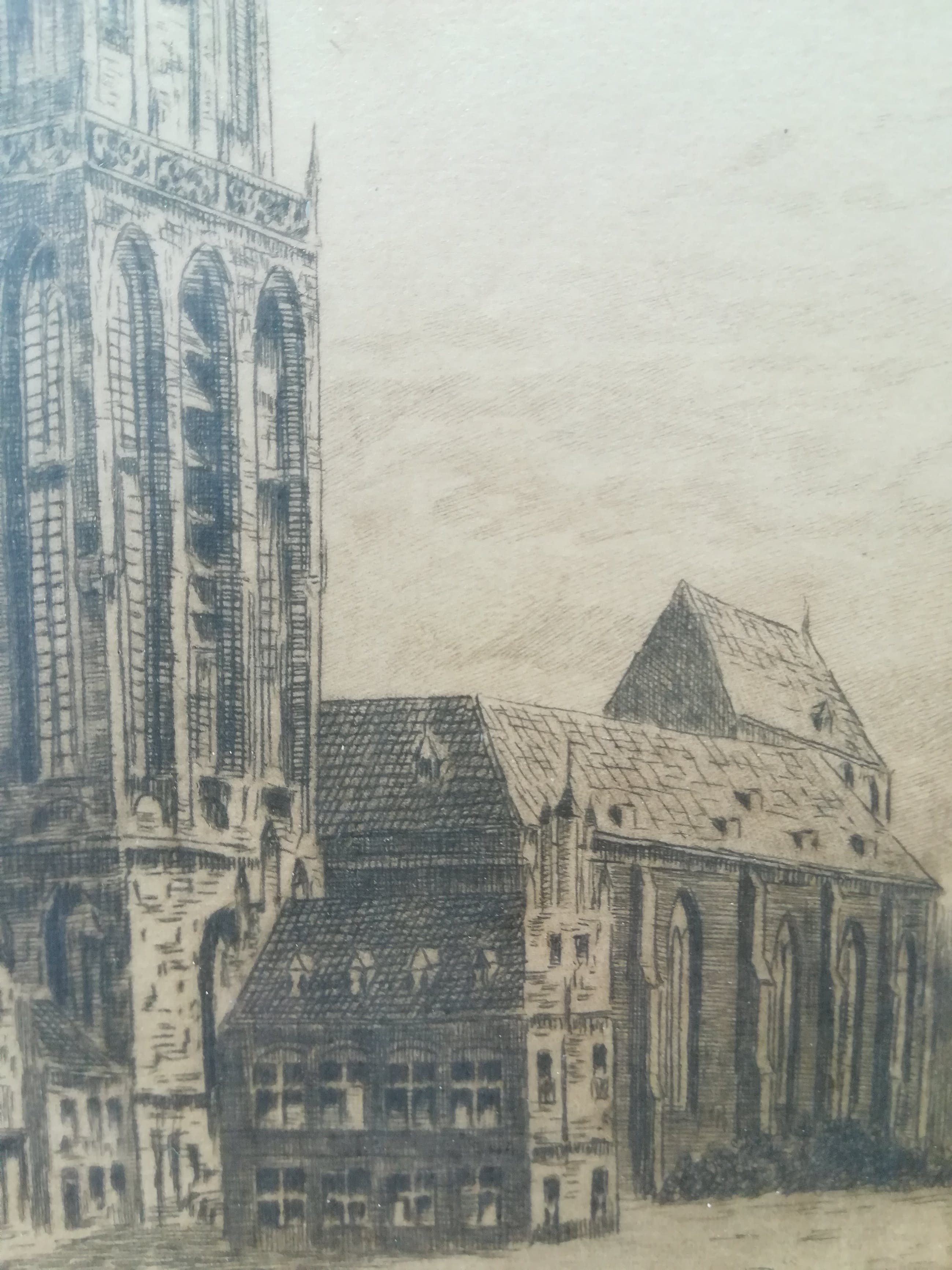 Prachtige sfeervolle voorstelling van de Martinitoren te Groningen. Gezien hetgeen op de afbeelding staat is het werk voor 1900 gemaakt.