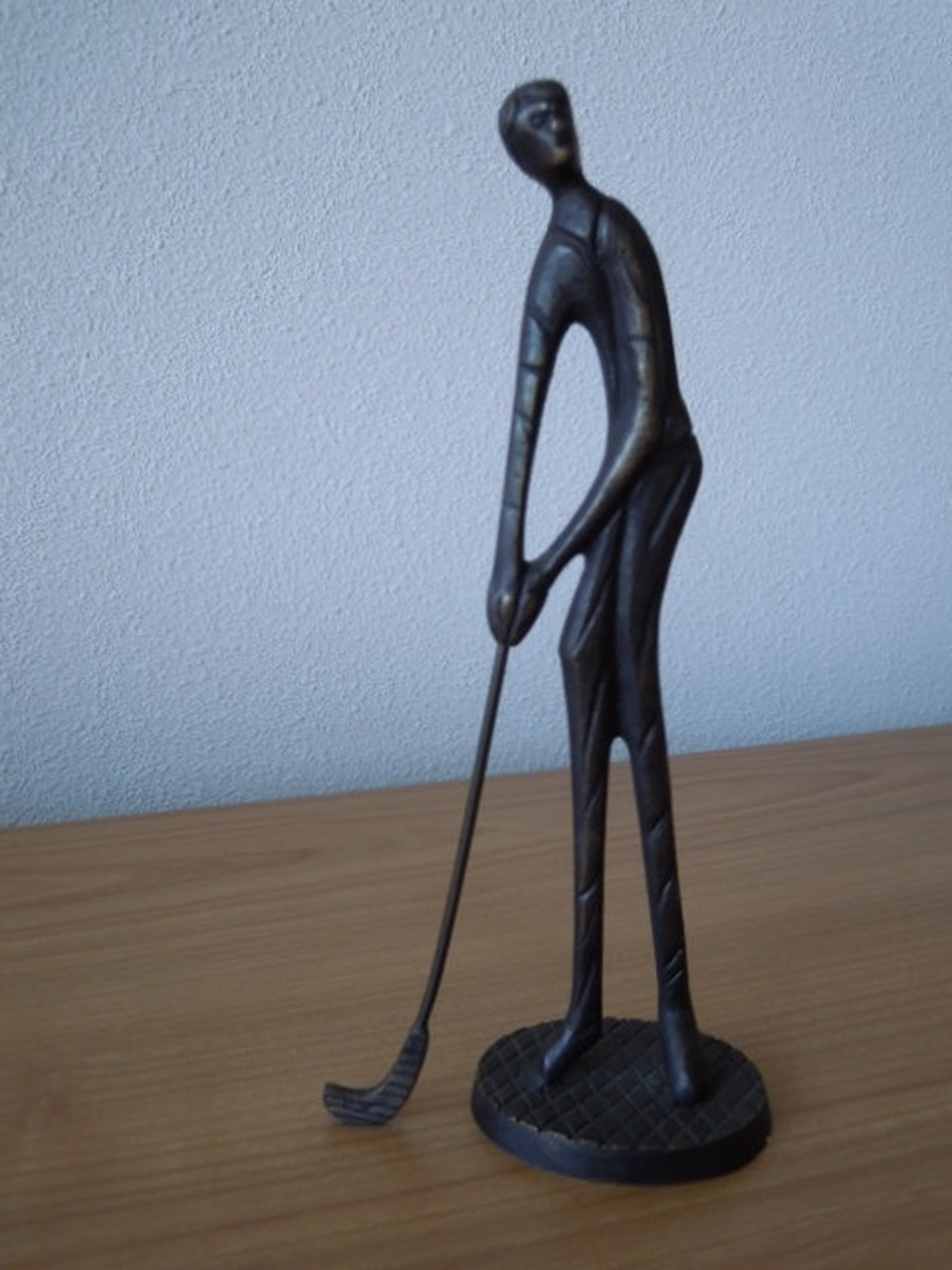 Massief bronzen beeld van golfspeler - 26 cm hoog.