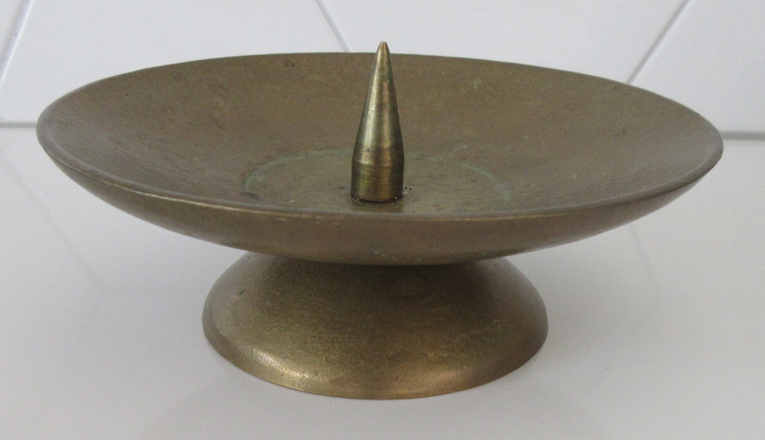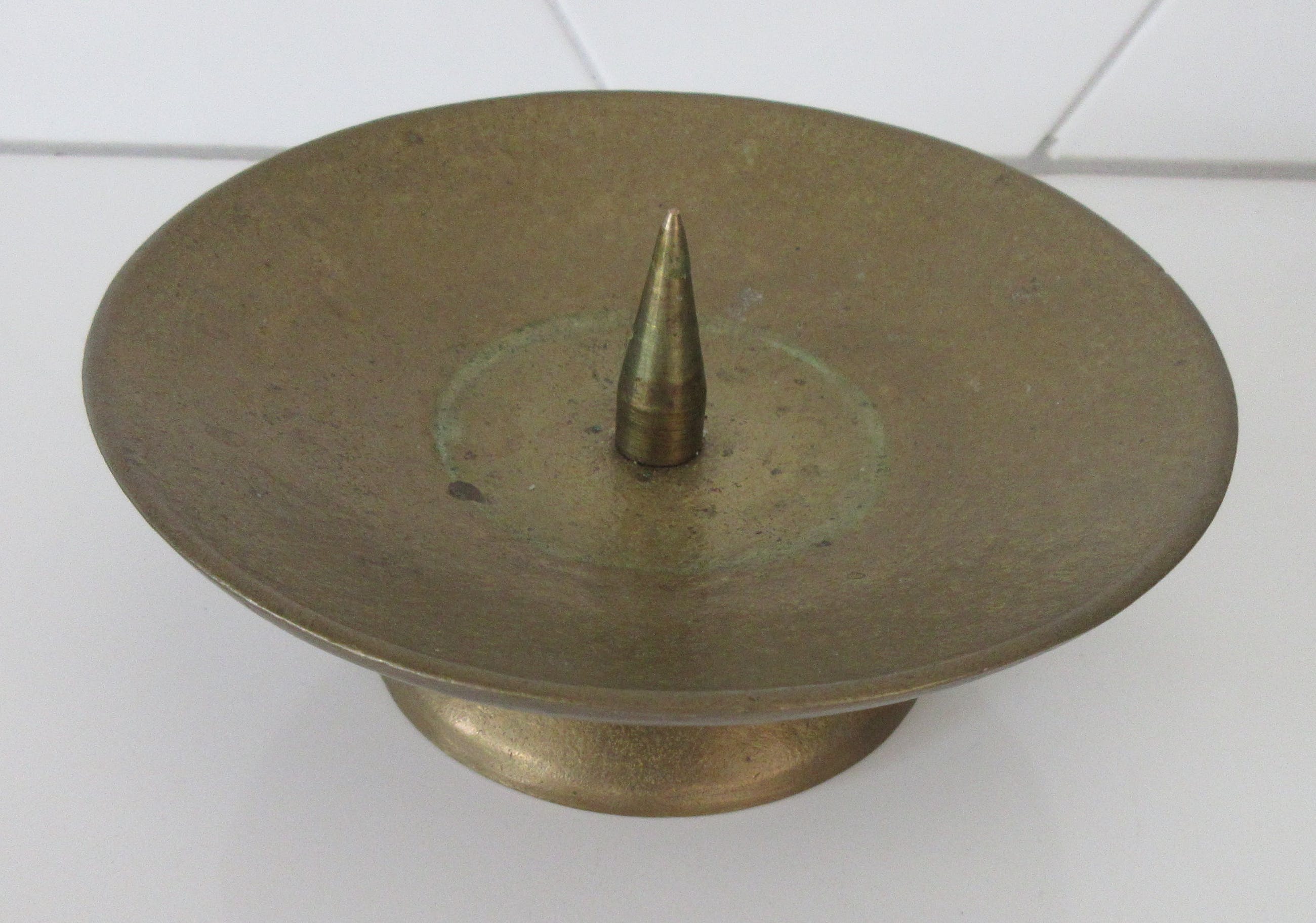 Mooi hand gemaakte massief messing punt kerk kandelaar. In prima conditie.