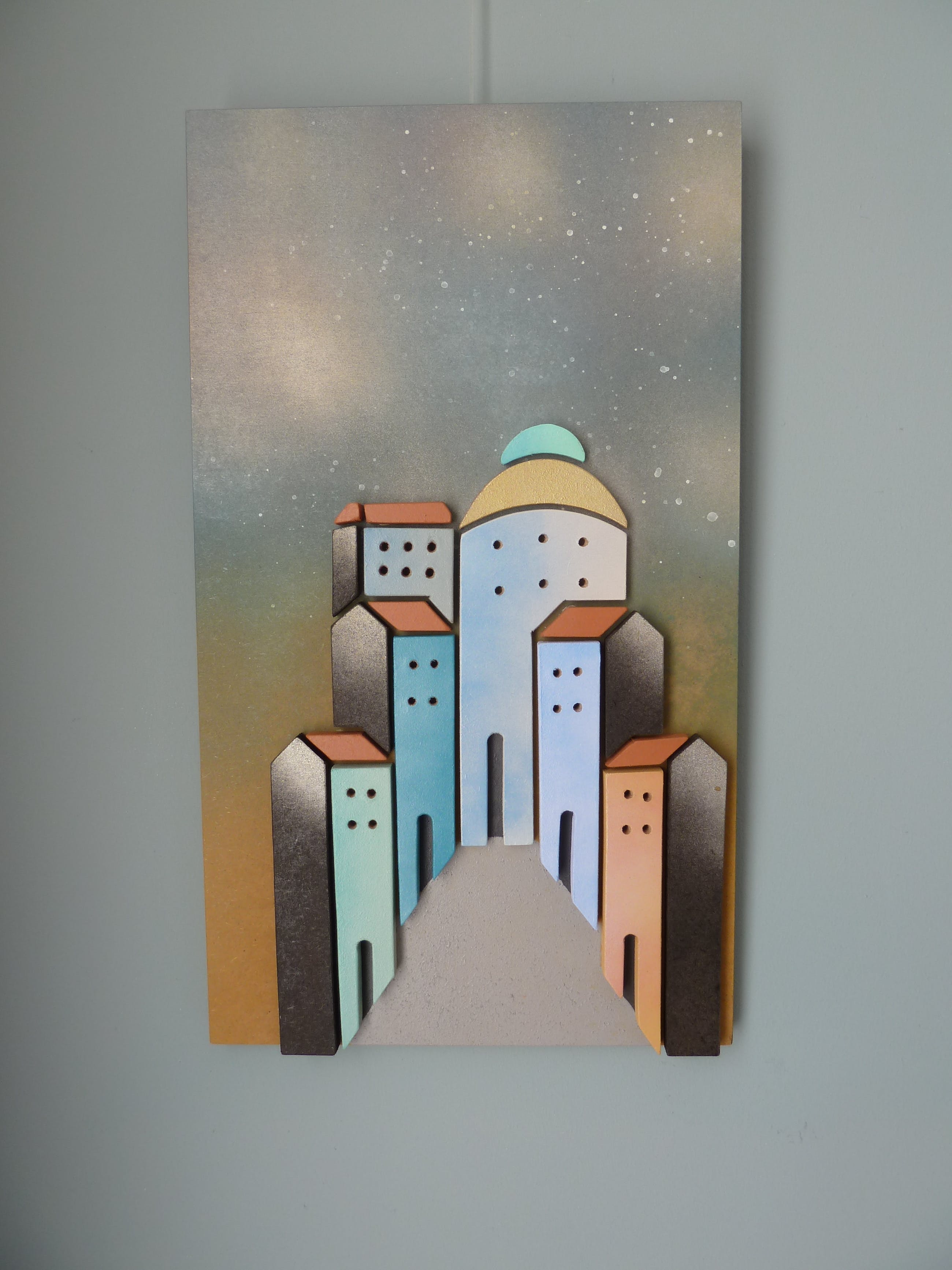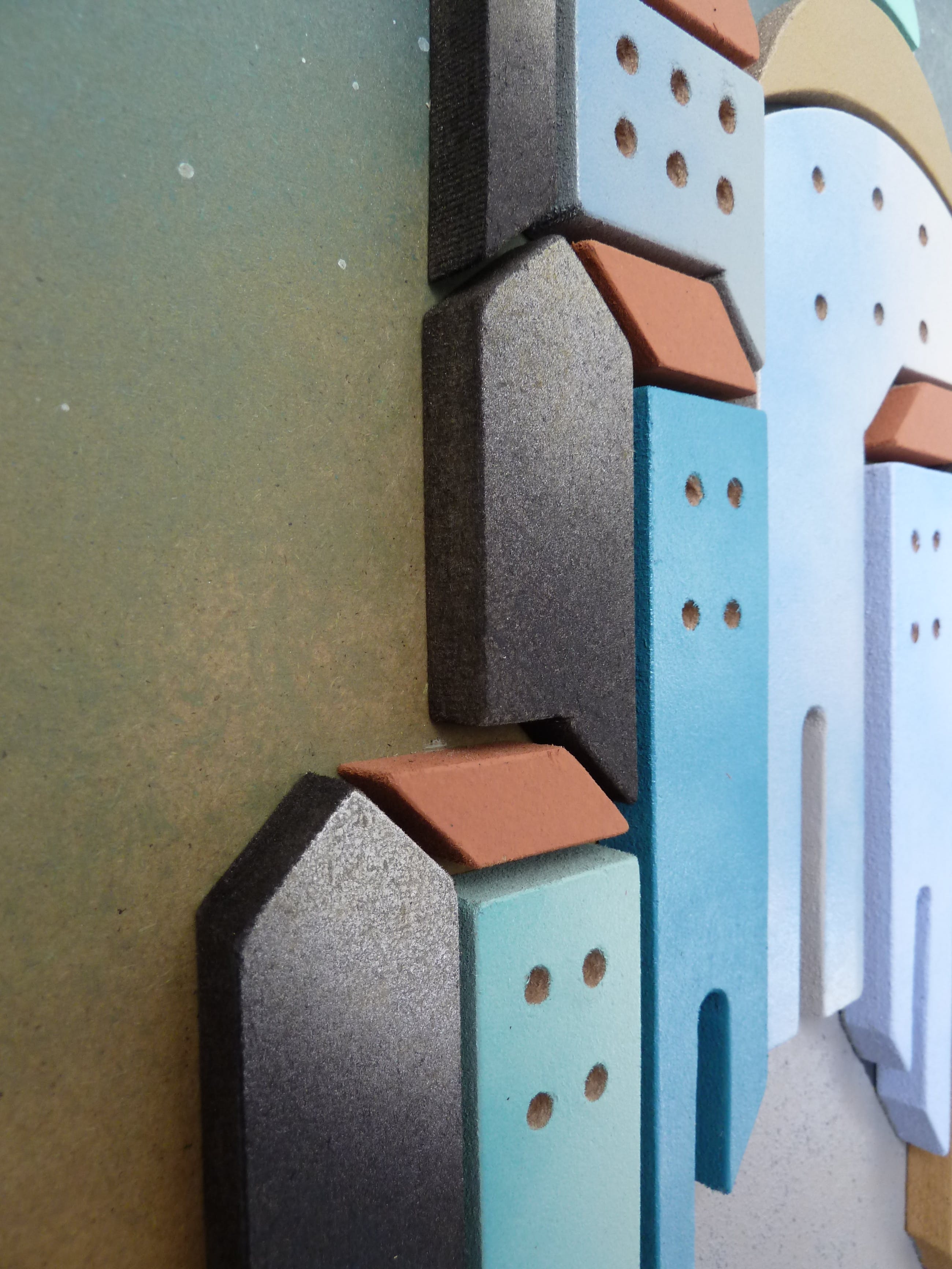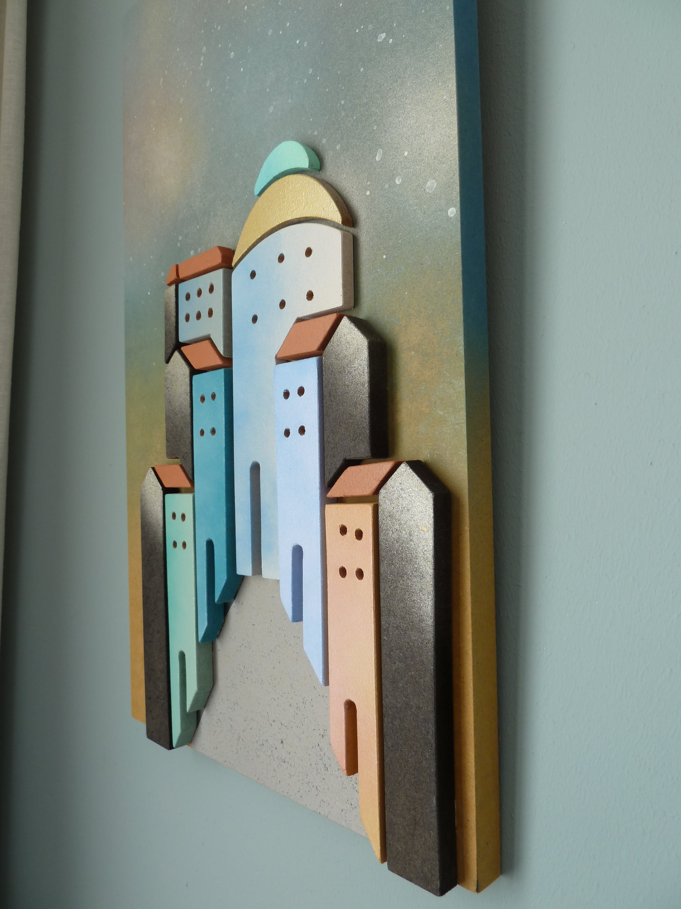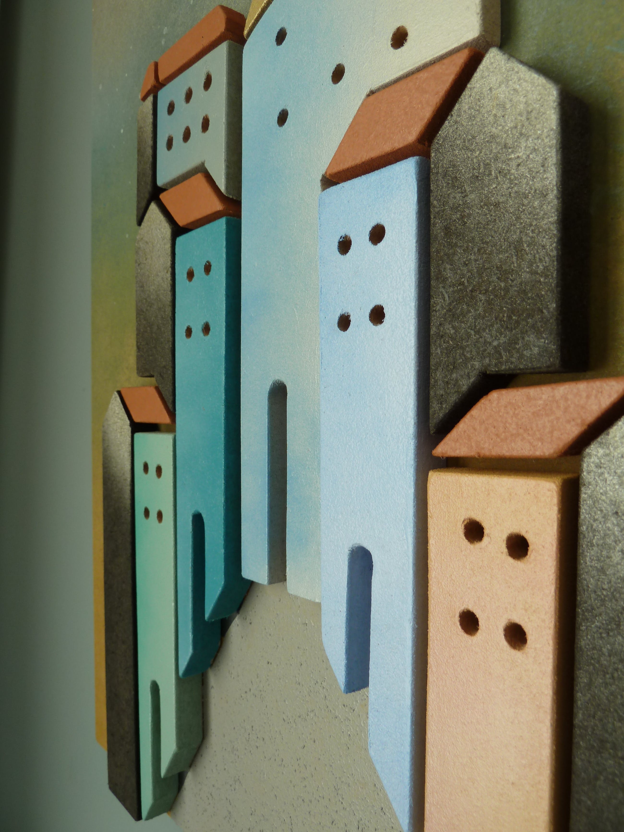 Houten wandreliëf, H53cmxH32cmxD3cm. Kunstobject is voorzien van ophangvoorziening (D-ring). Werk is unica, met de hand vervaardigd en gesigneerd.