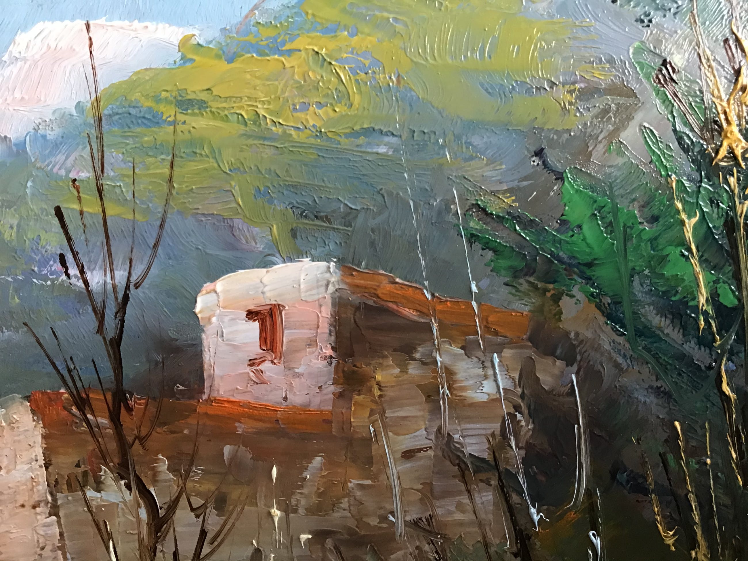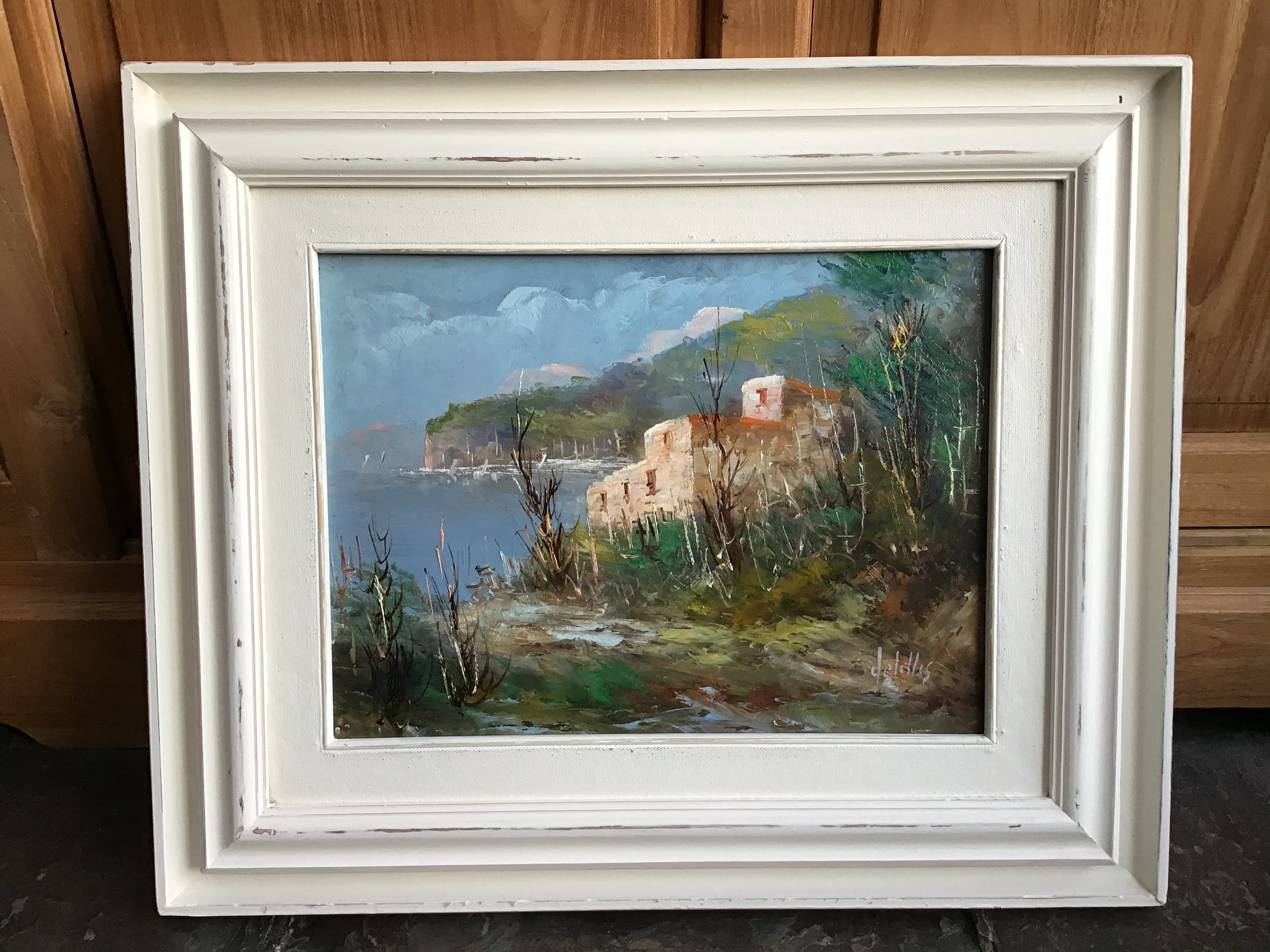 Vlot geschilderd stemmig mediterraan zeegezicht. Signering kan ik niet ontcijferen. Lijst is netjes eigentijds gepimpt.