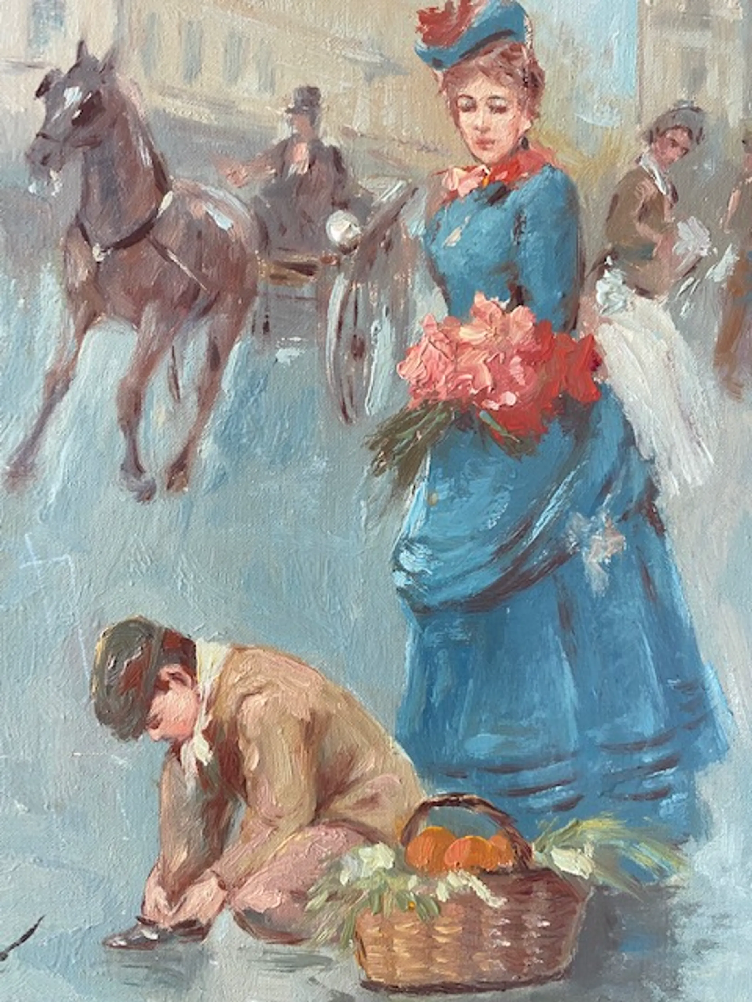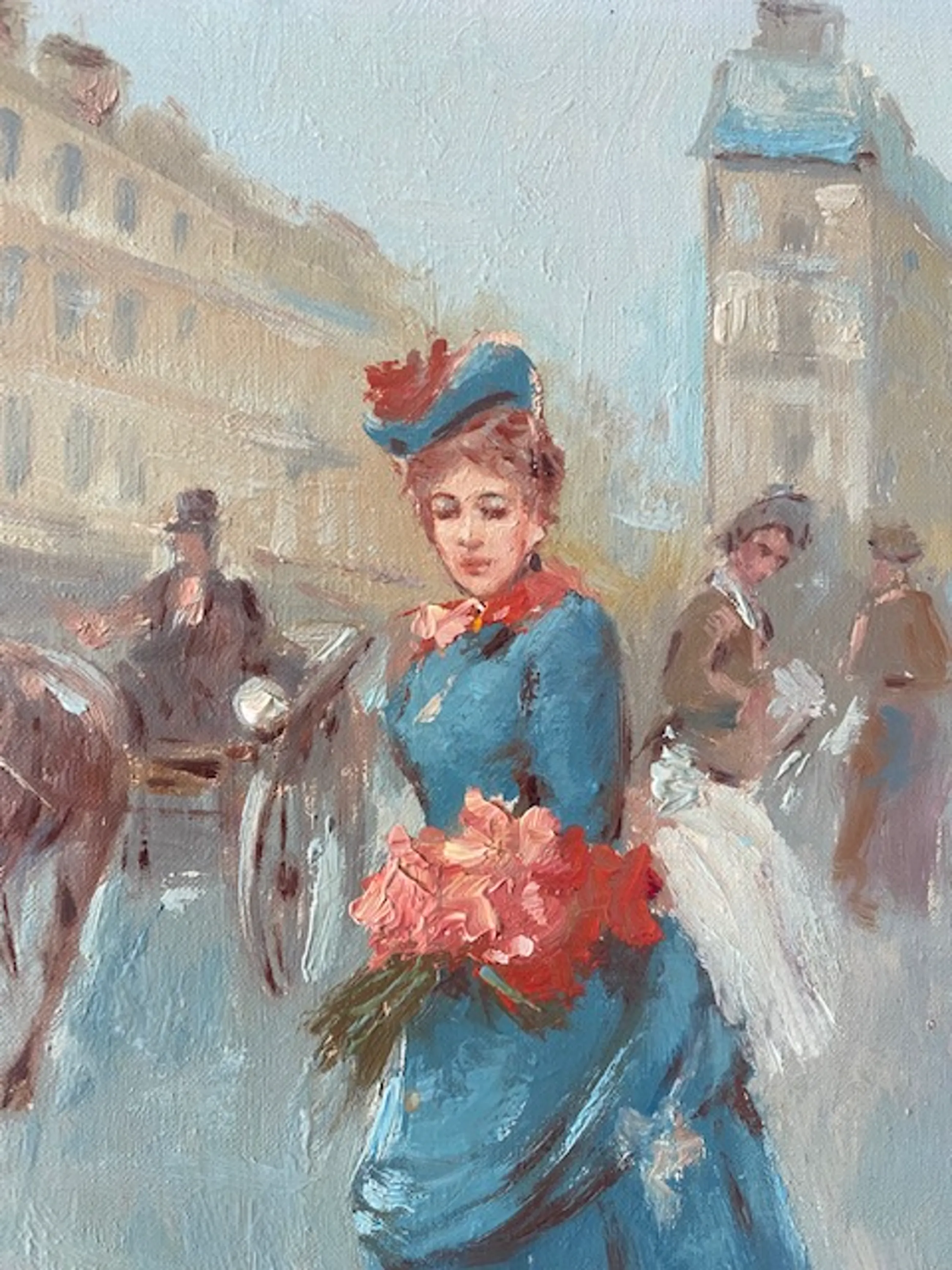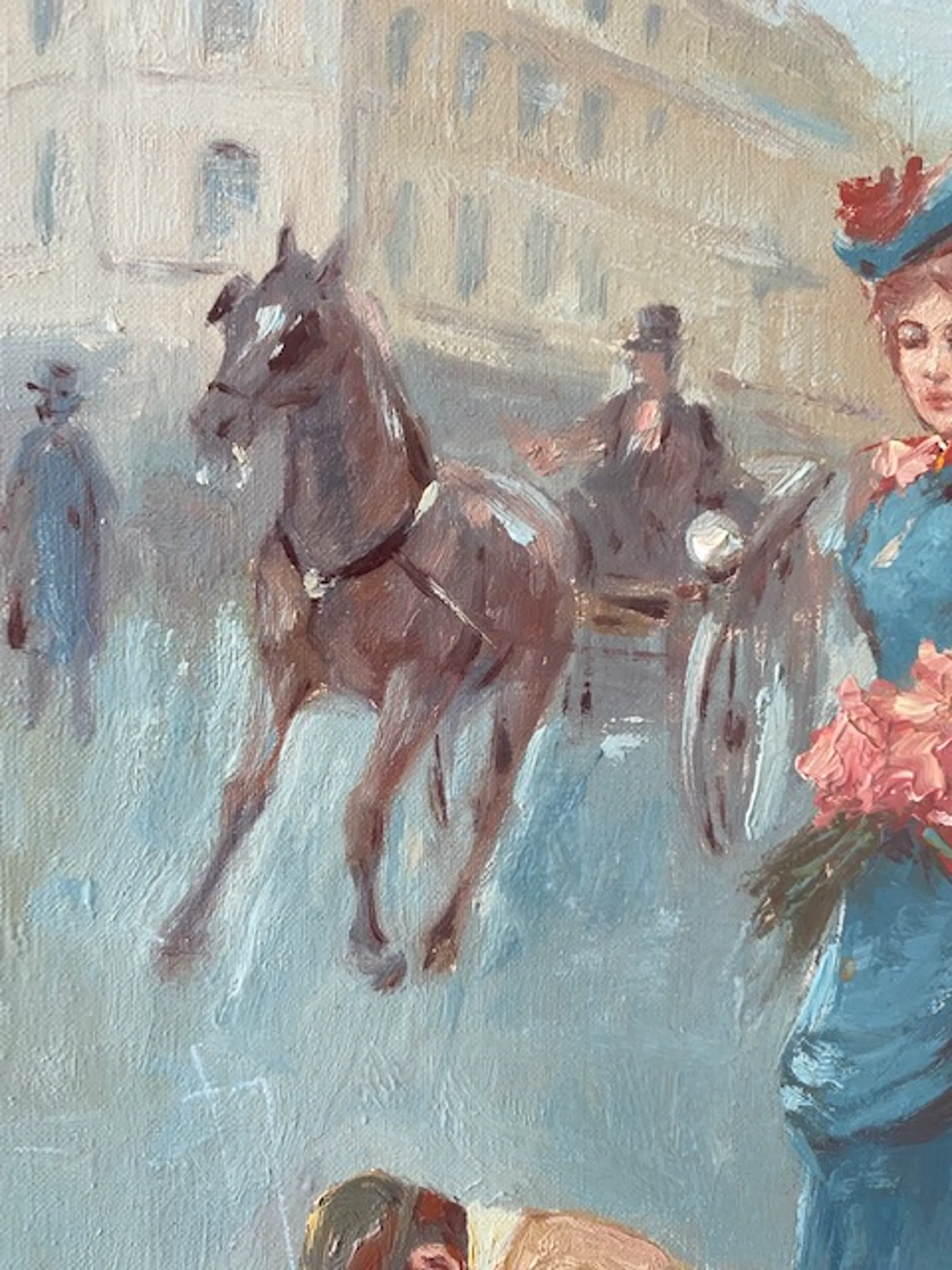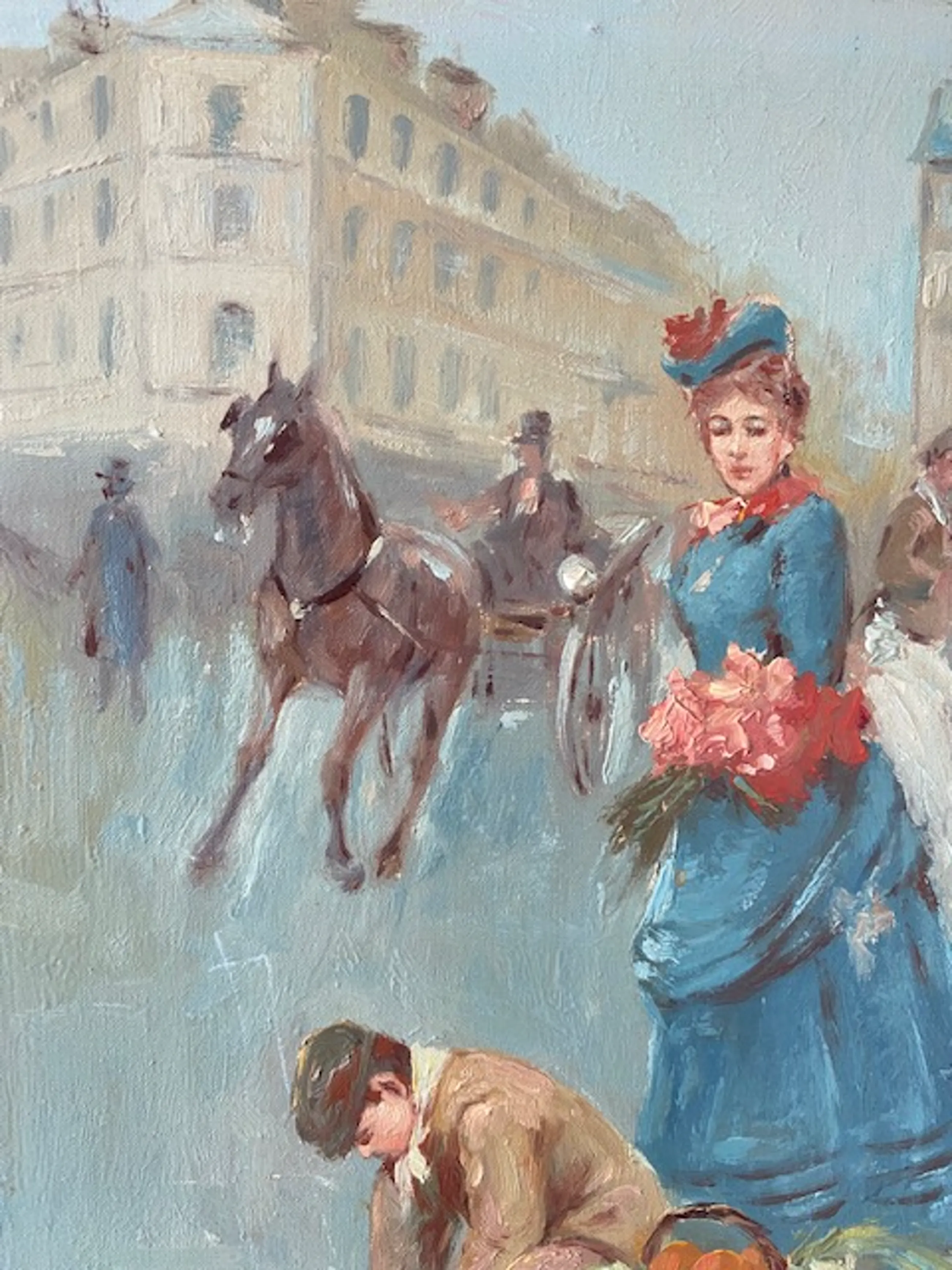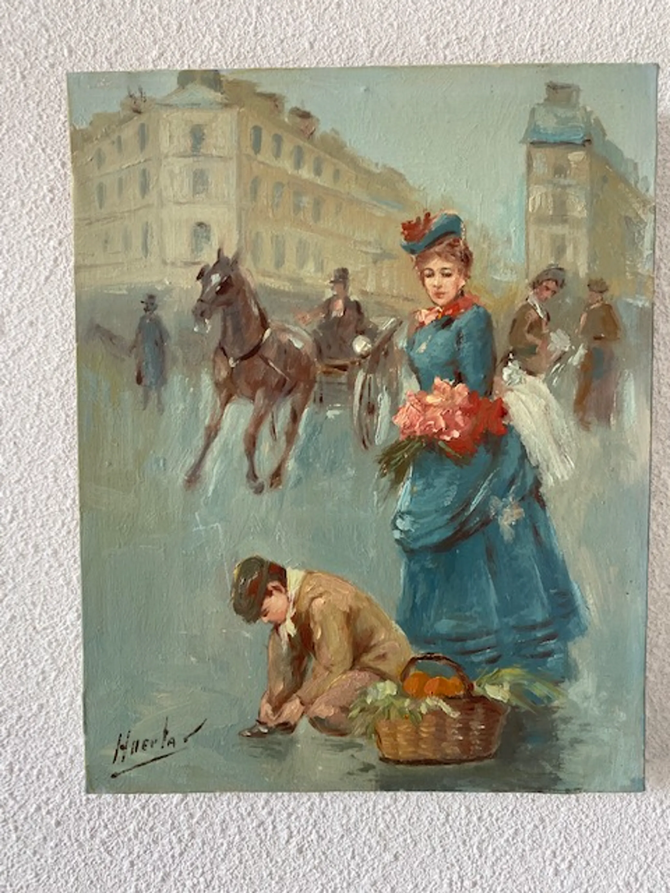 Het impressionistisch geschilderde Parijse straatscene-tafereel is gesigneerd Huerta, Huerta s of Huerta r