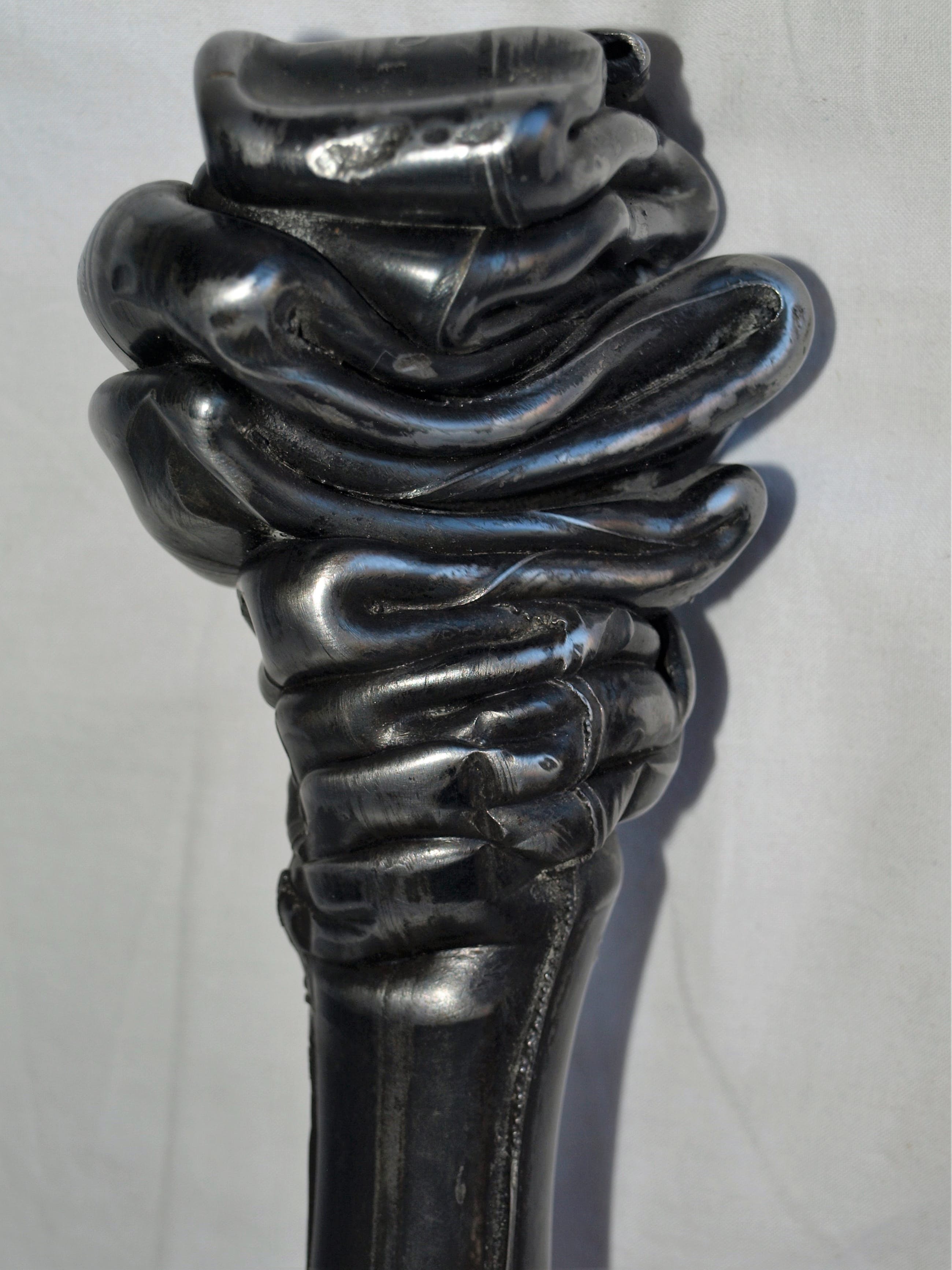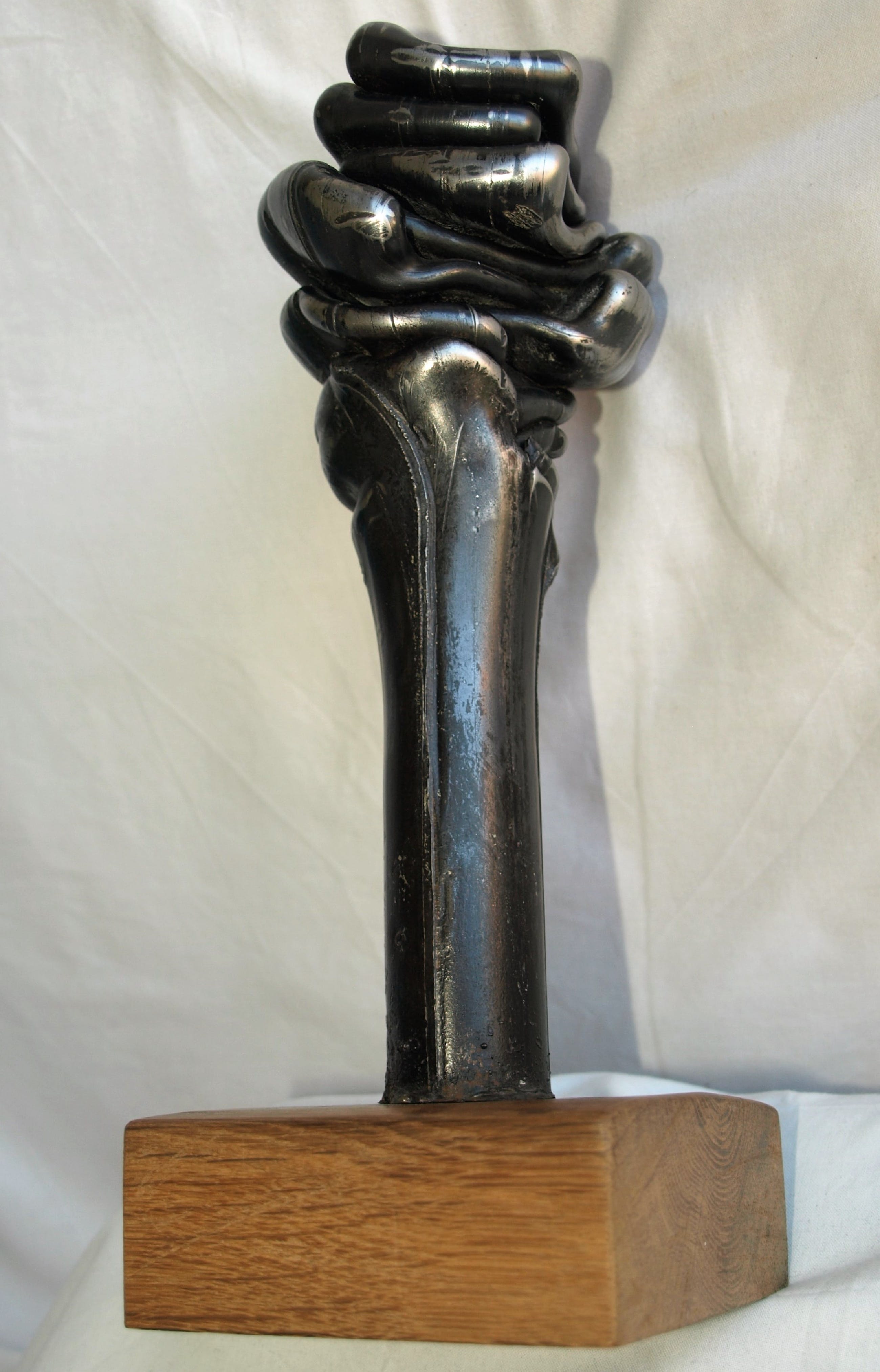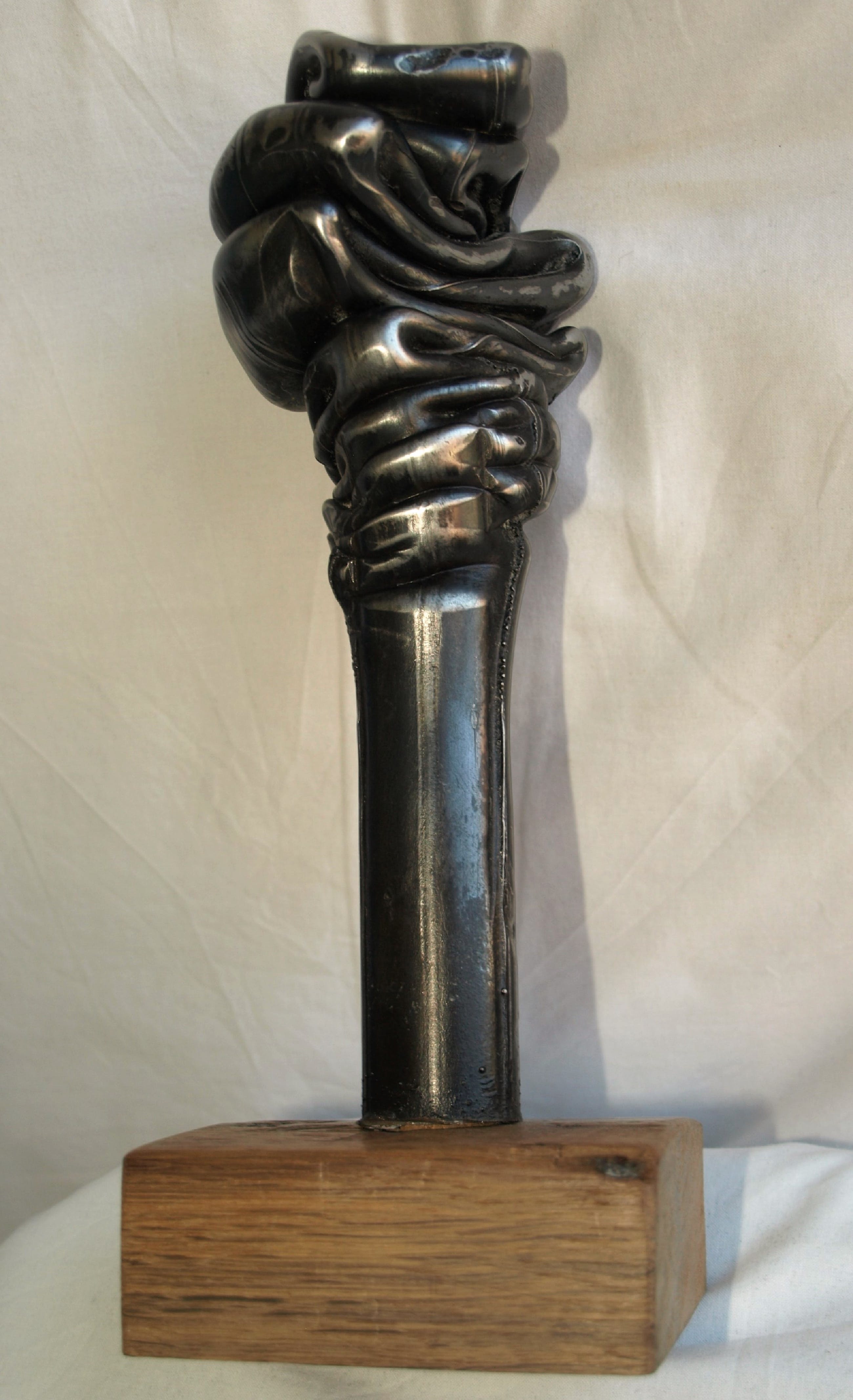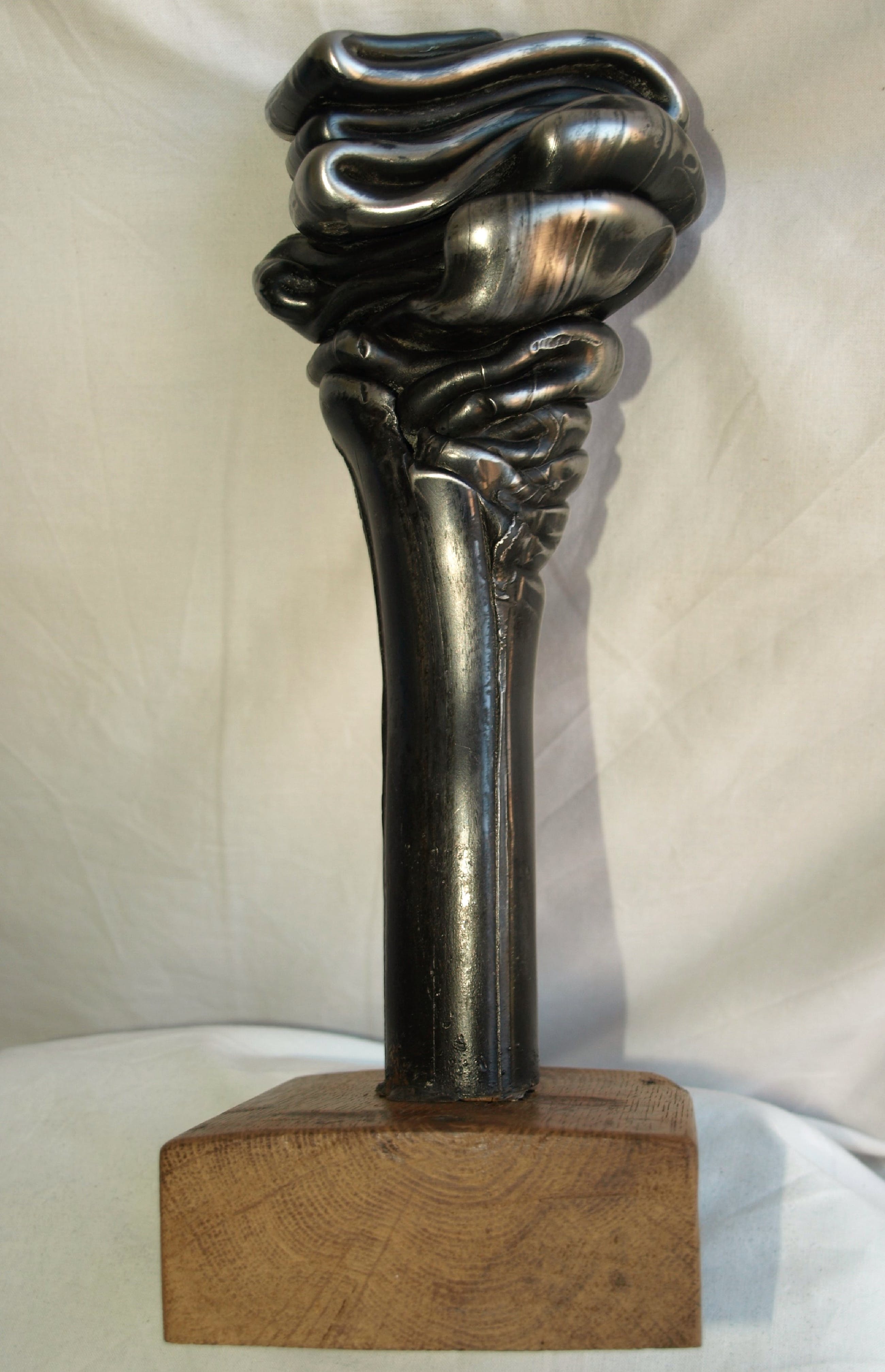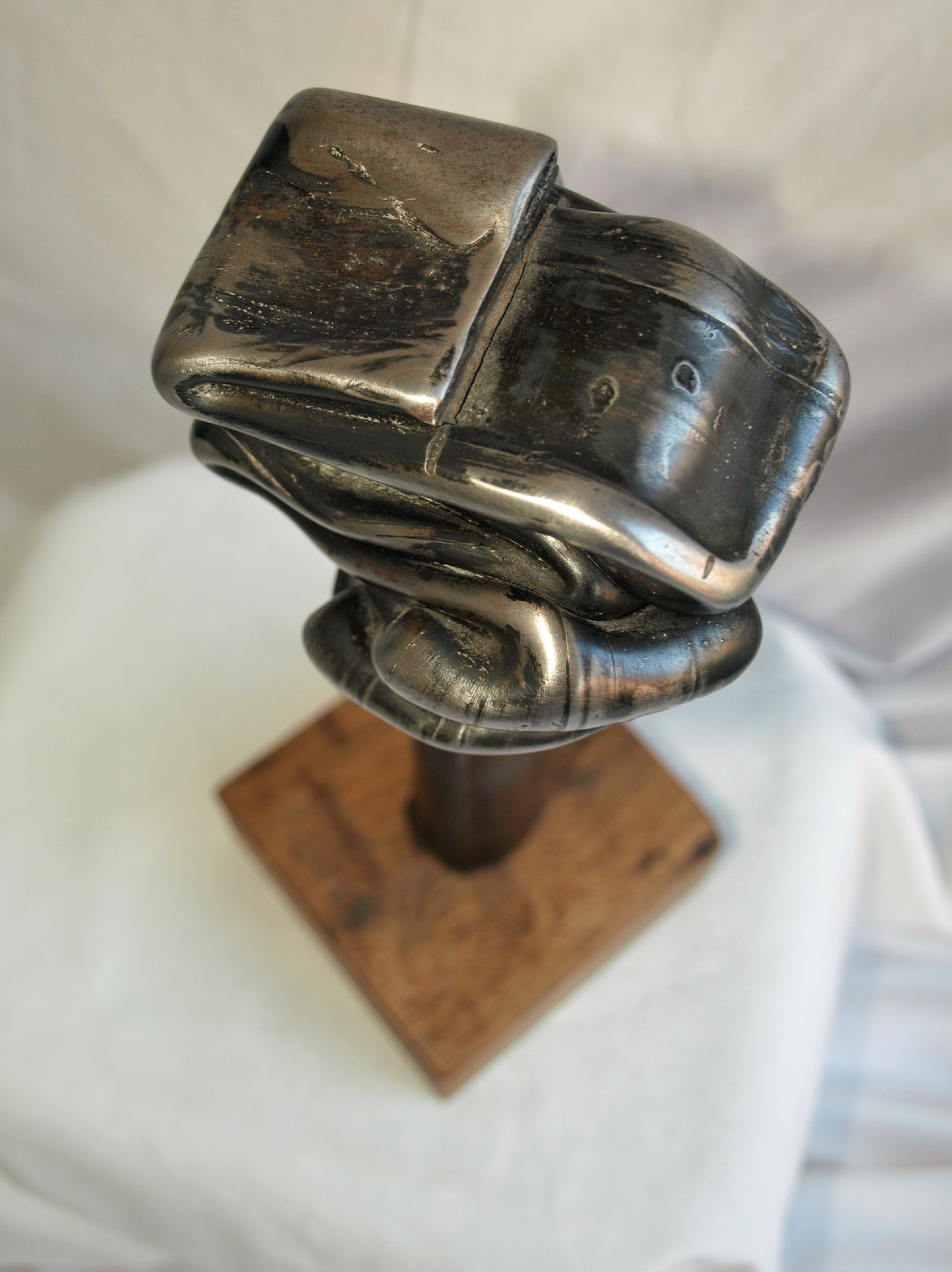 Een beeld van een ons onbekende kunstenaar, op een houten voet.