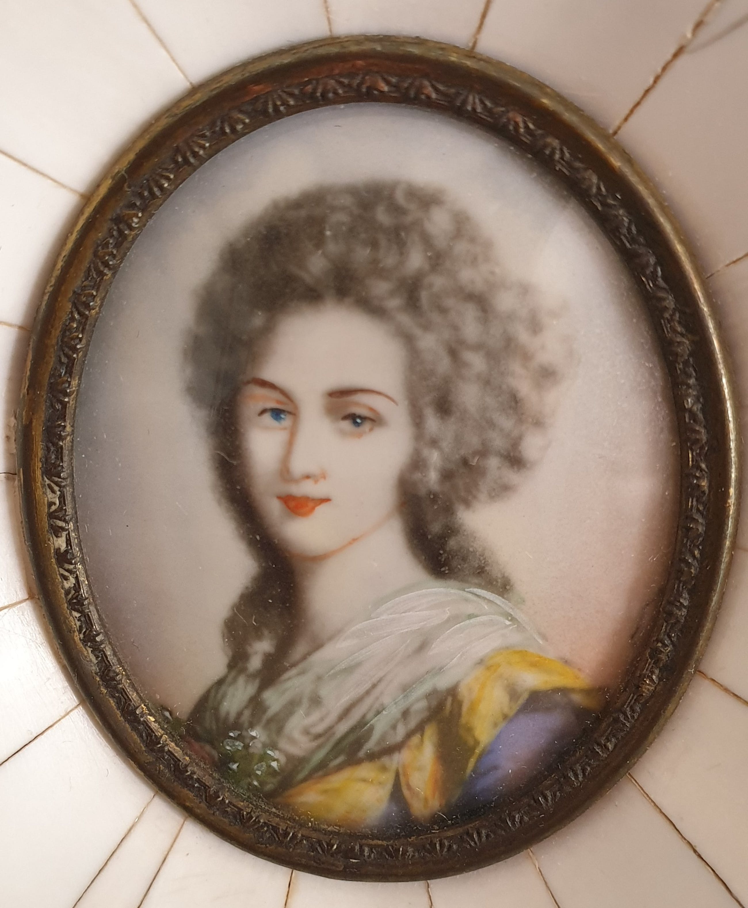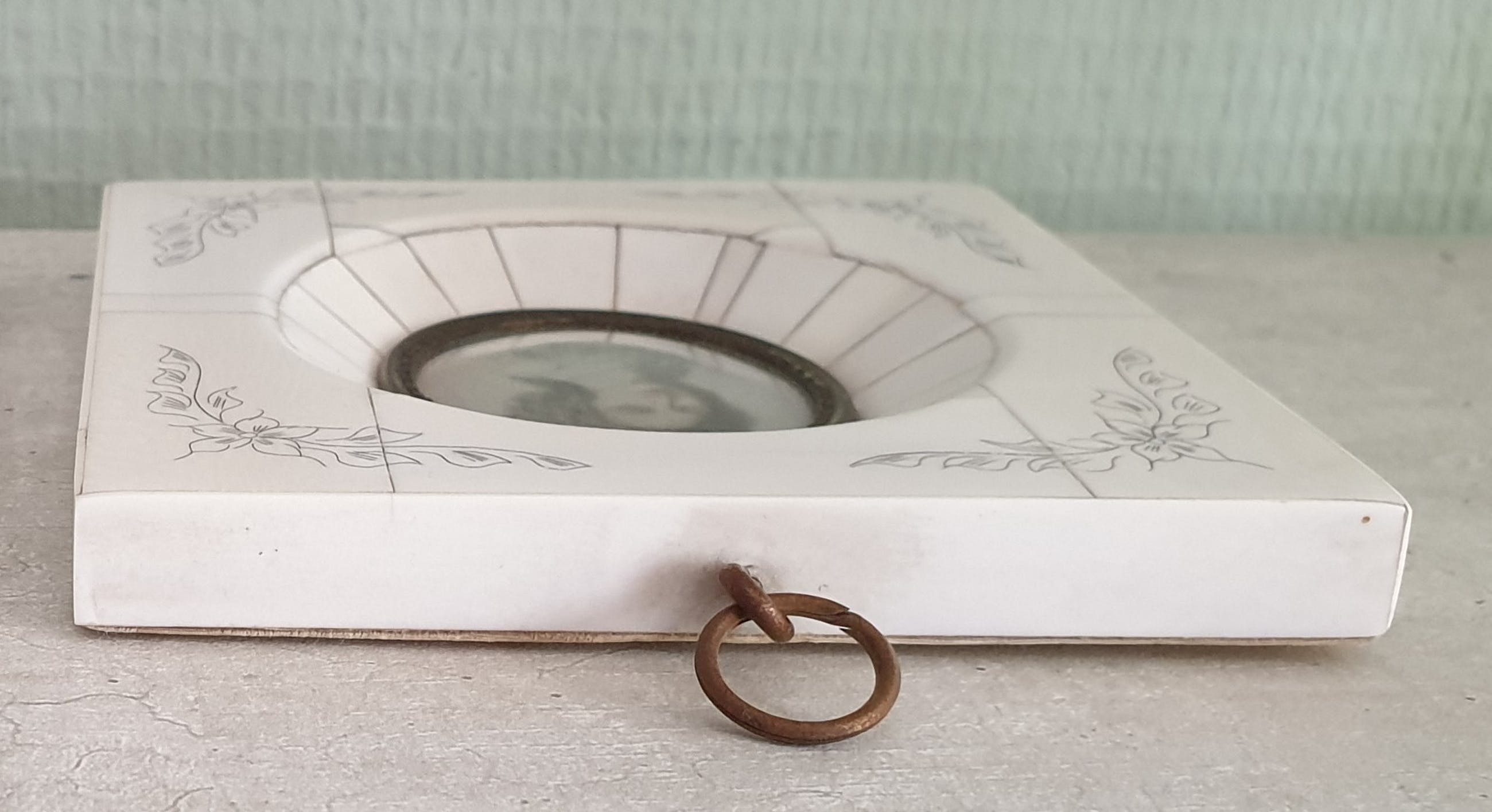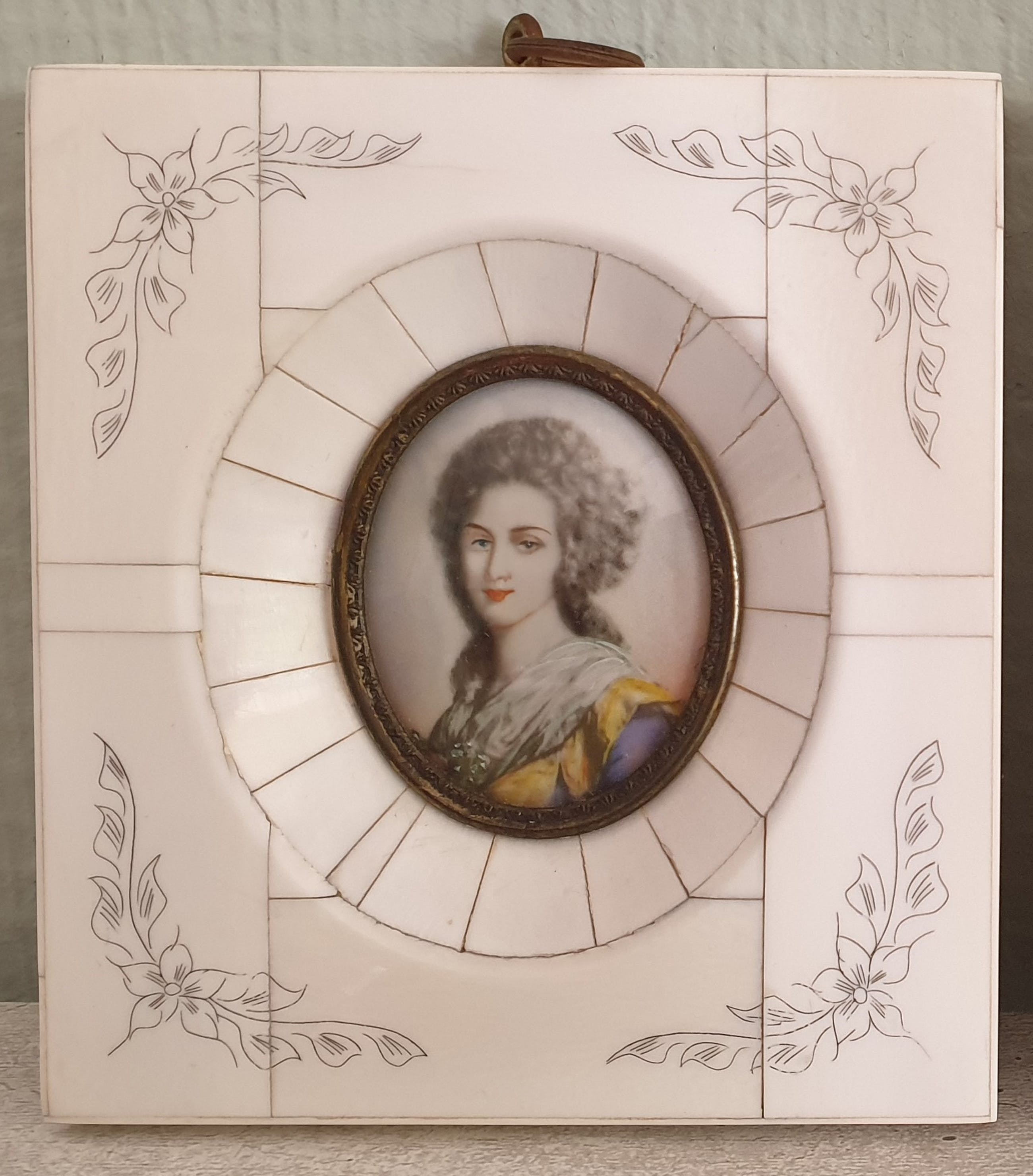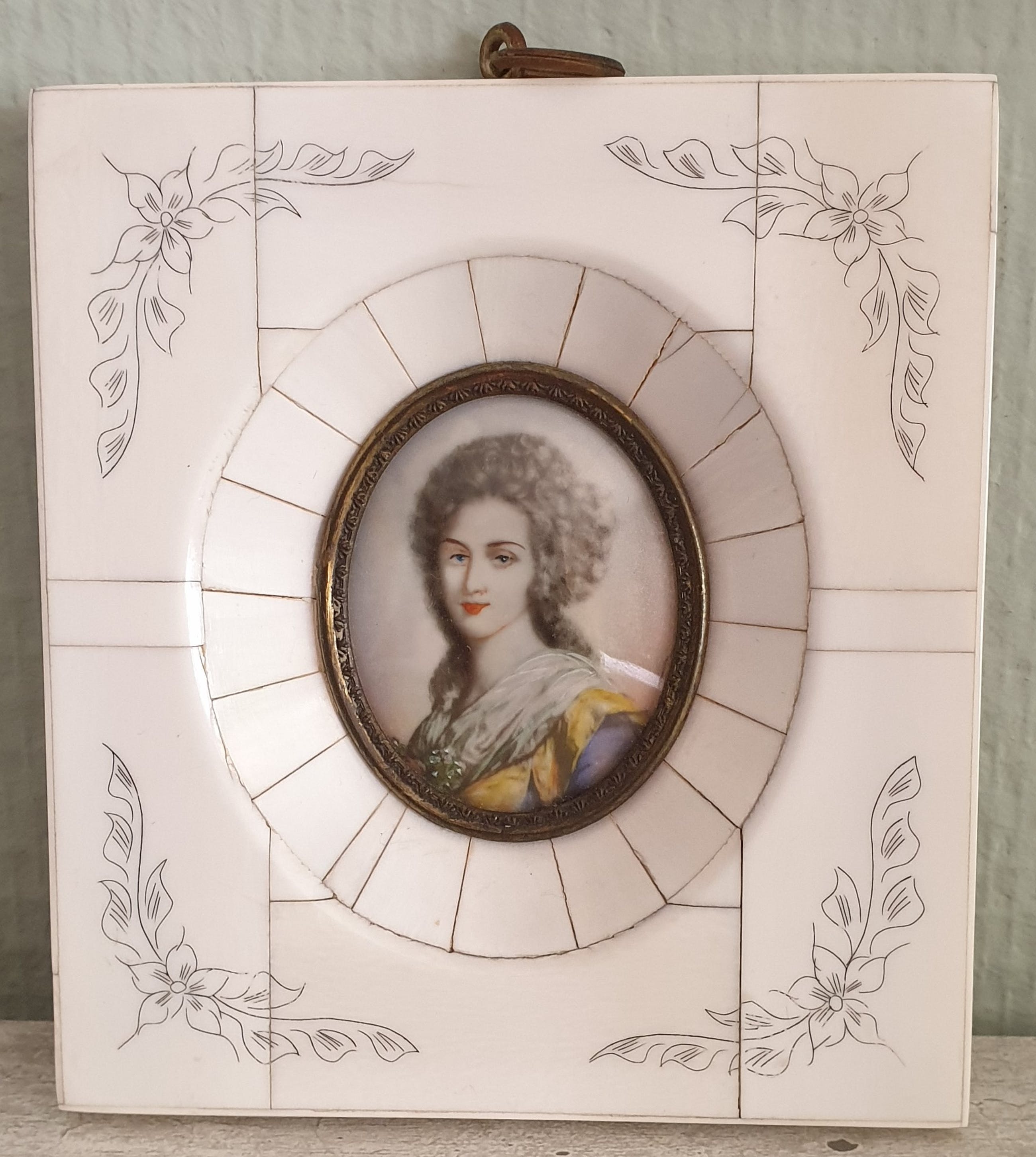 Miniatuur schilderijtje / portretje met ivoren lijstje van voor 1947